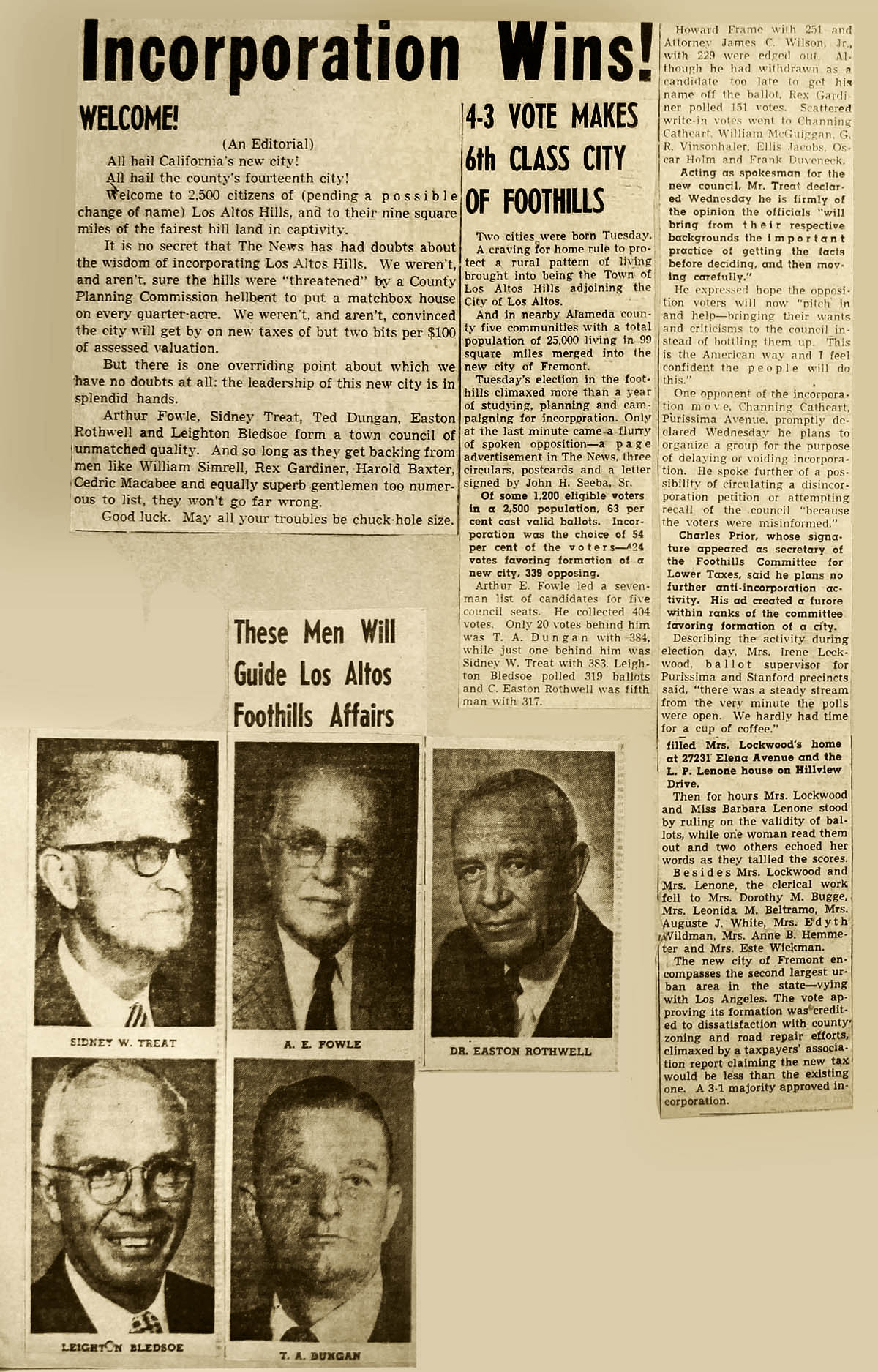 Following are a number of clippings that were published in the aftermath of the successful ballot to incorporate as a town. |