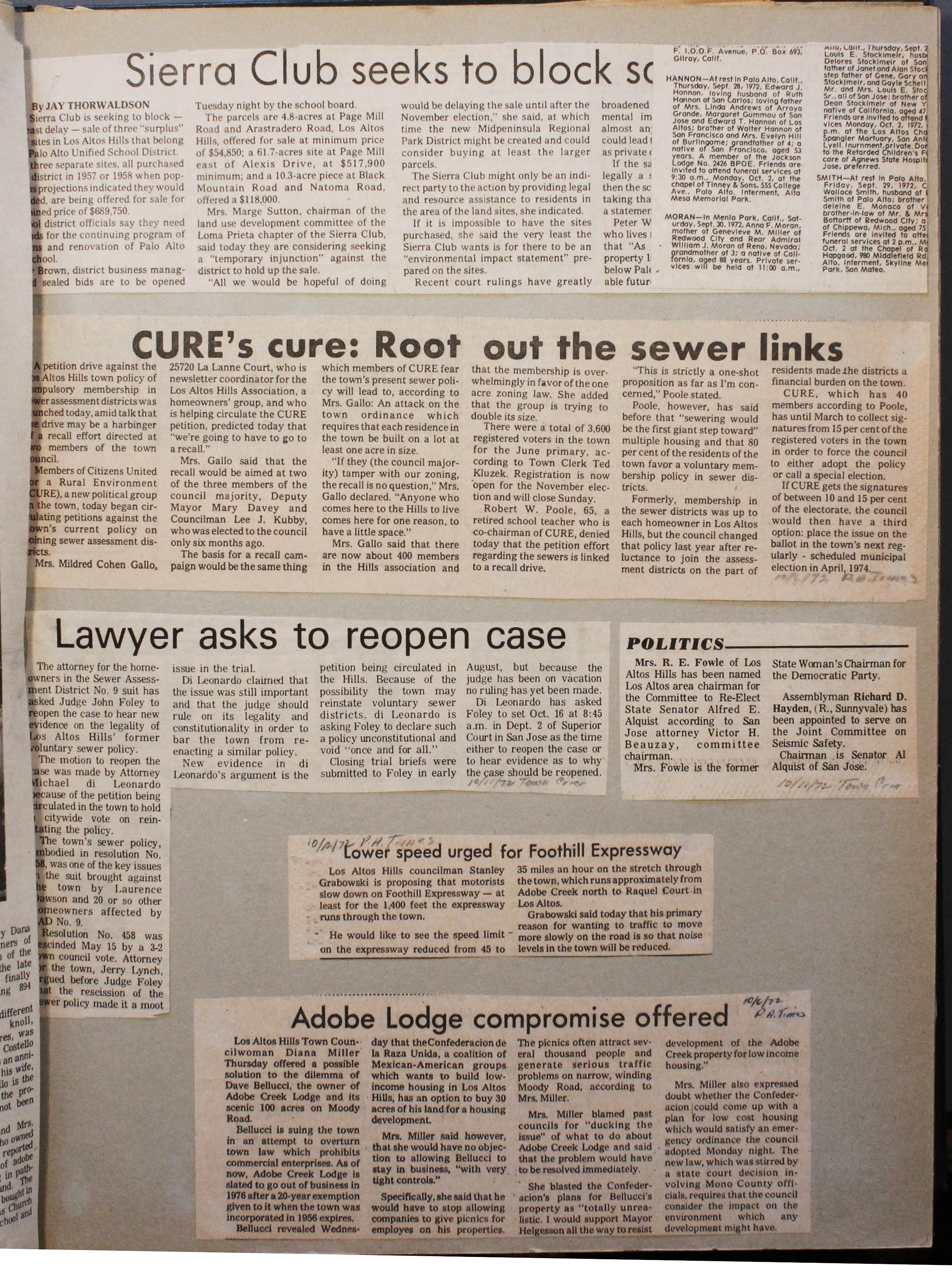 sewer policy - Lower speed urged for Foothill Expressway - Adobe lodge