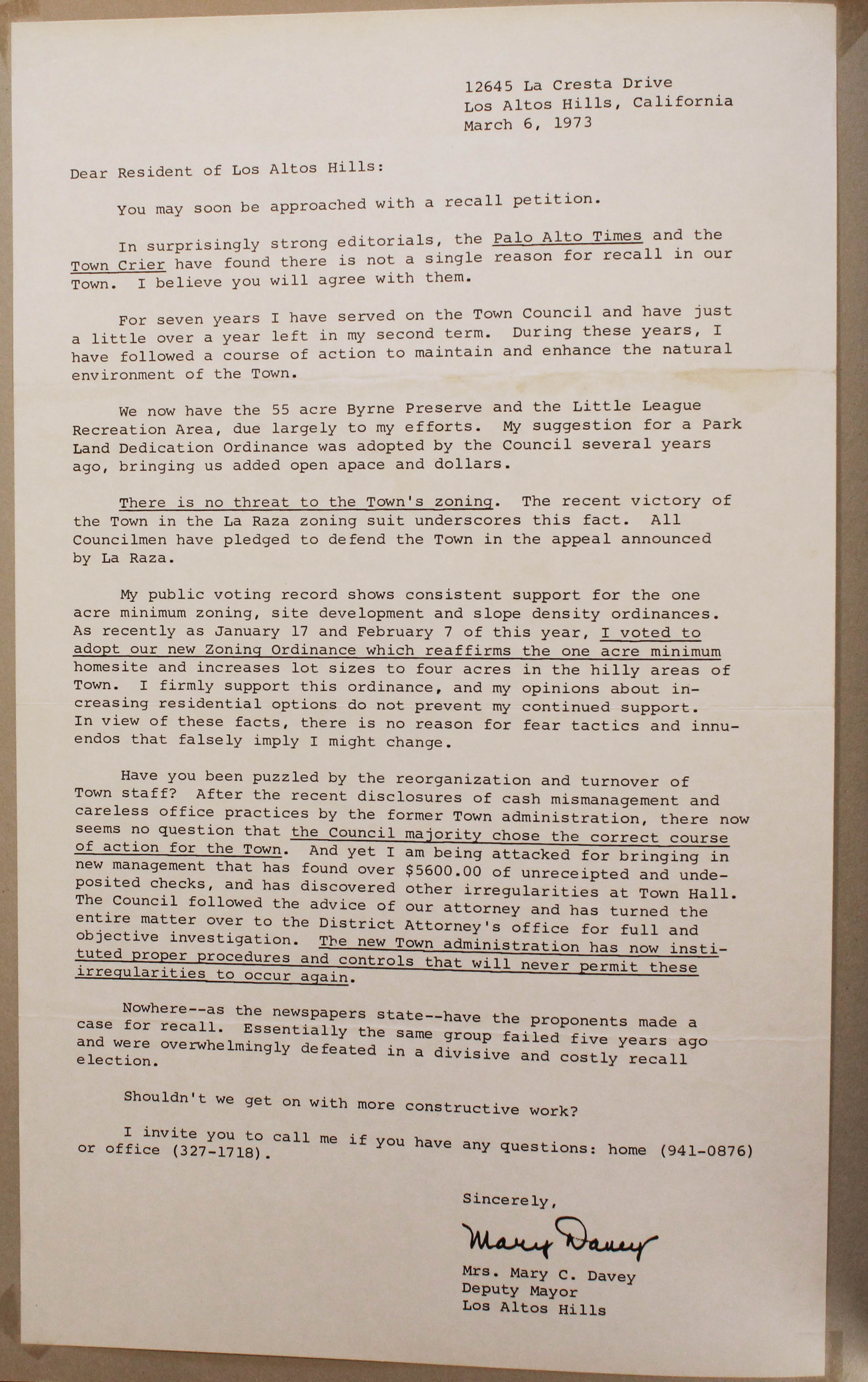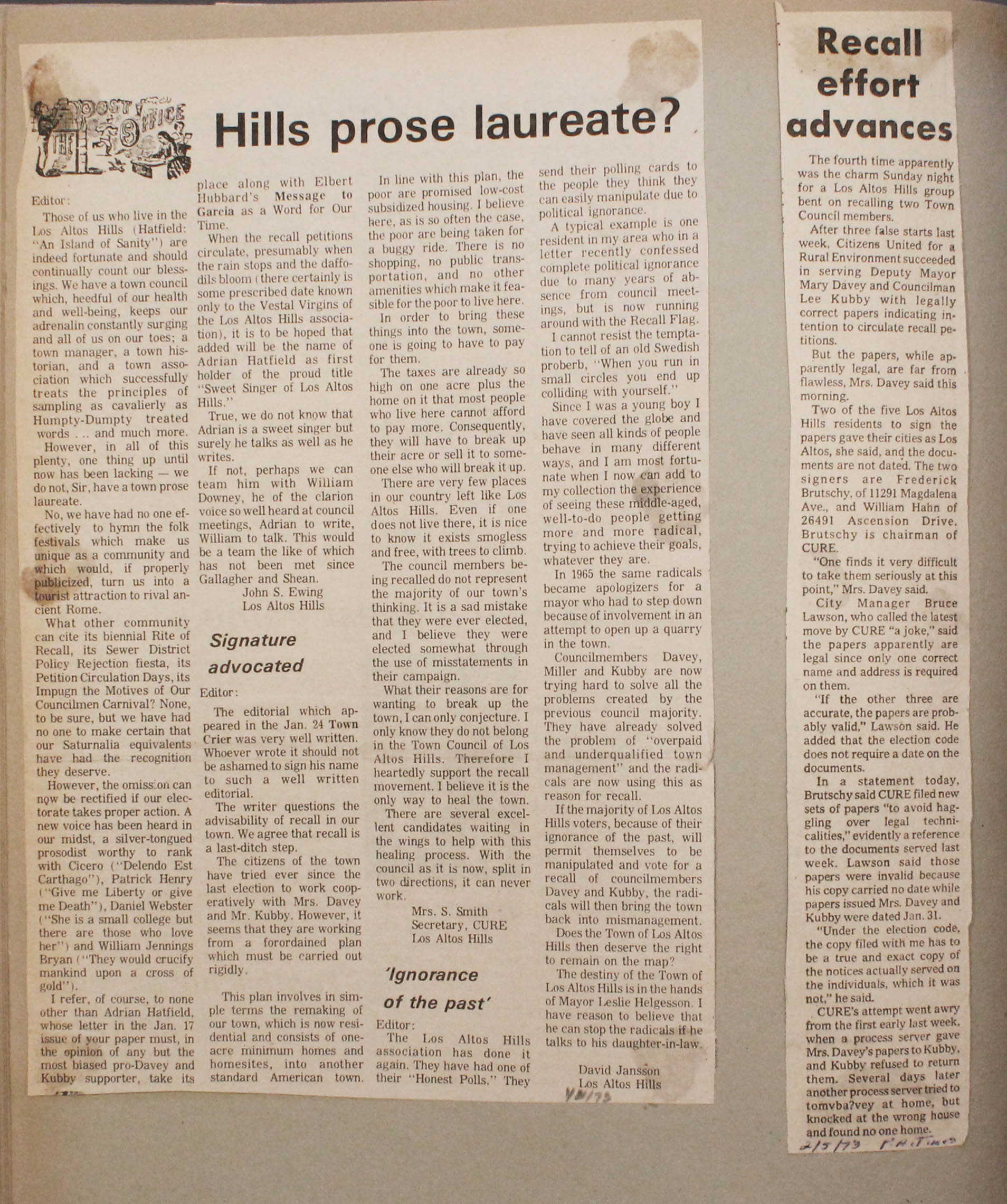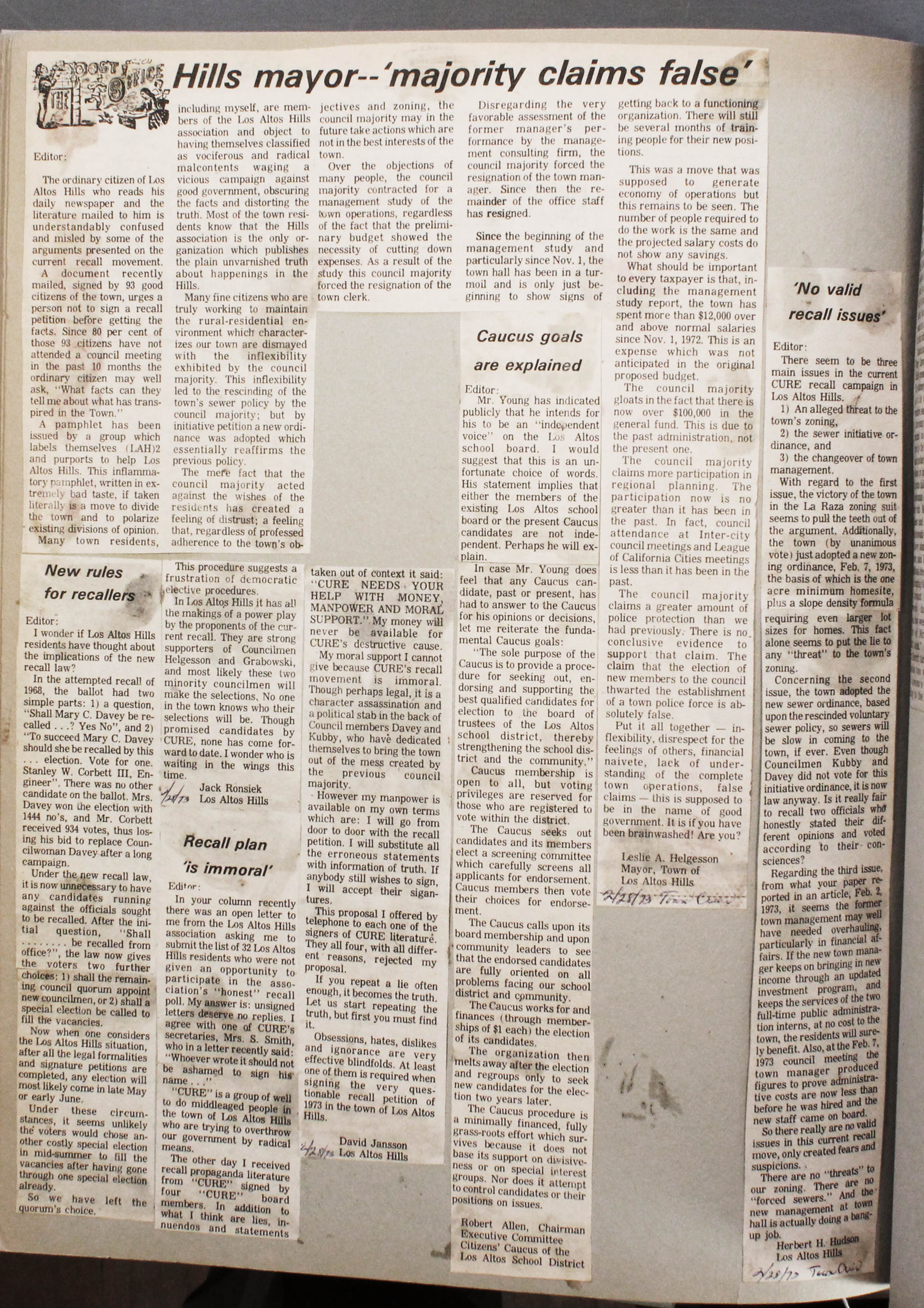 Davey - Letters to editor on tapes used in recall evidence - Council approves