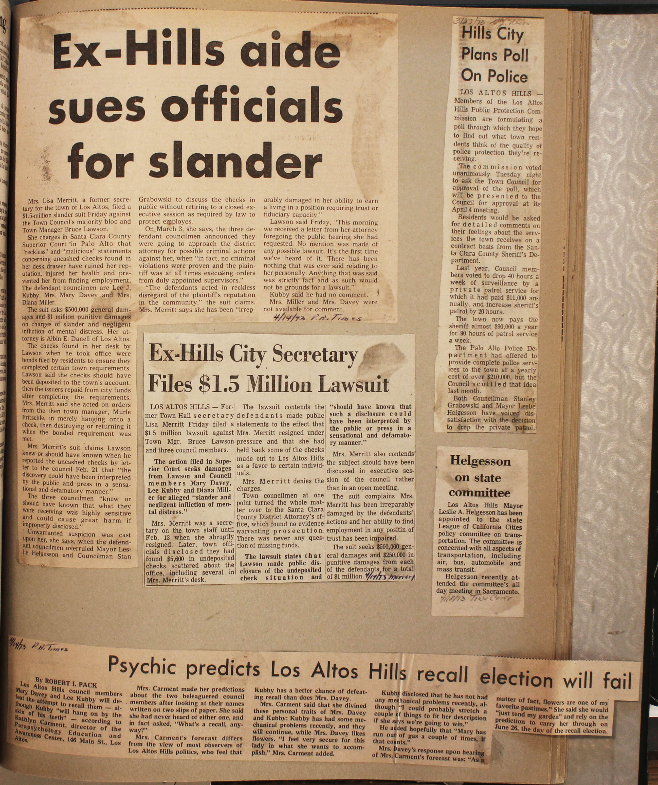 - Letter to editor, Merritt suing individuals not LAH - David Packard to host