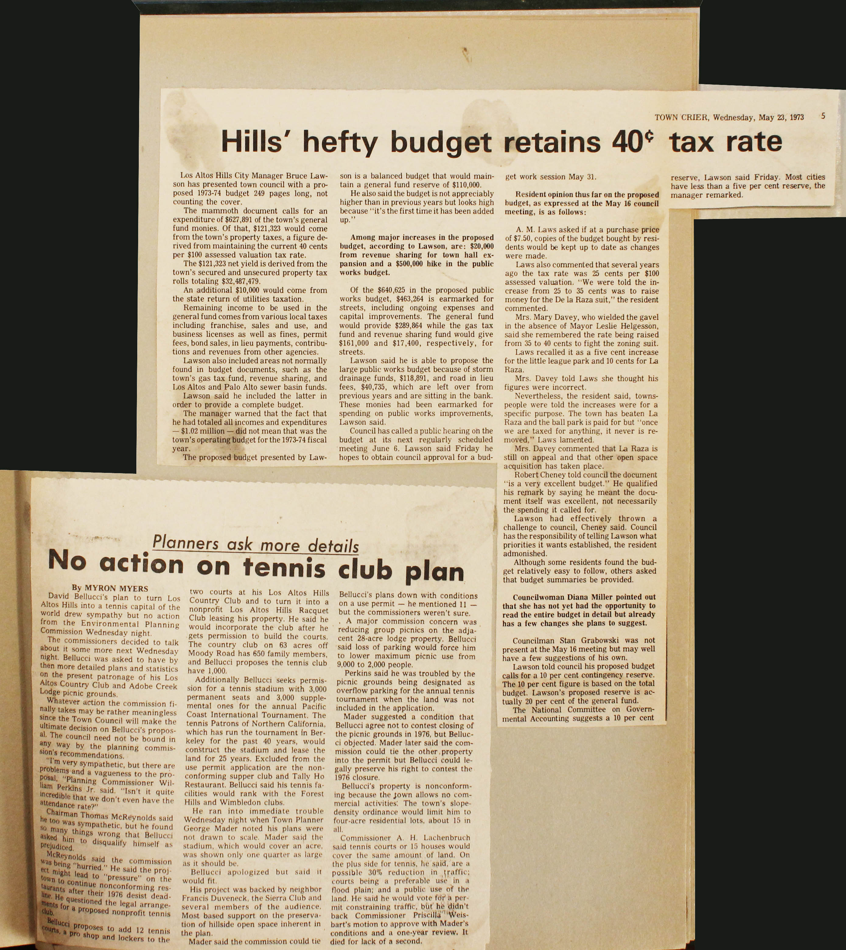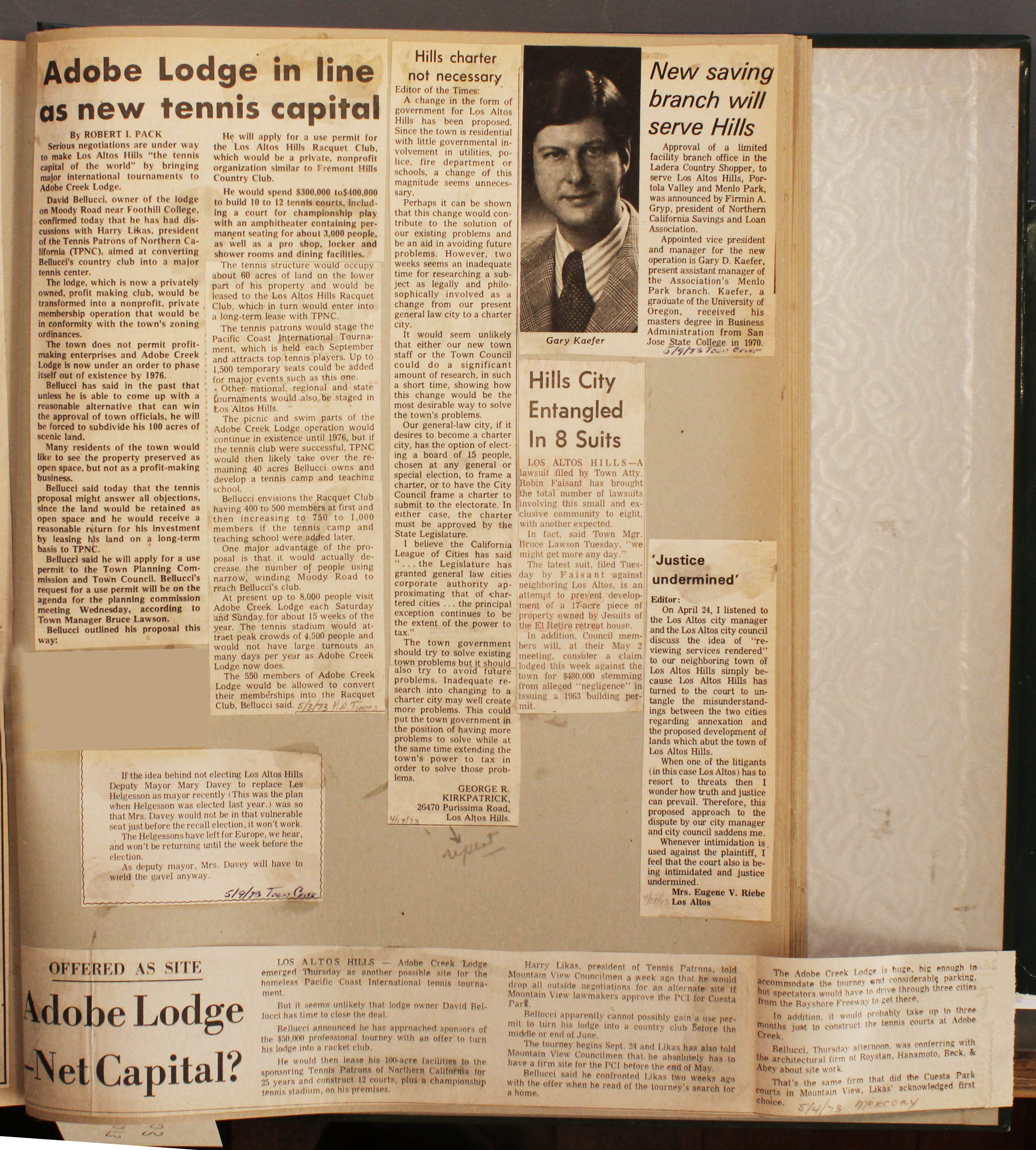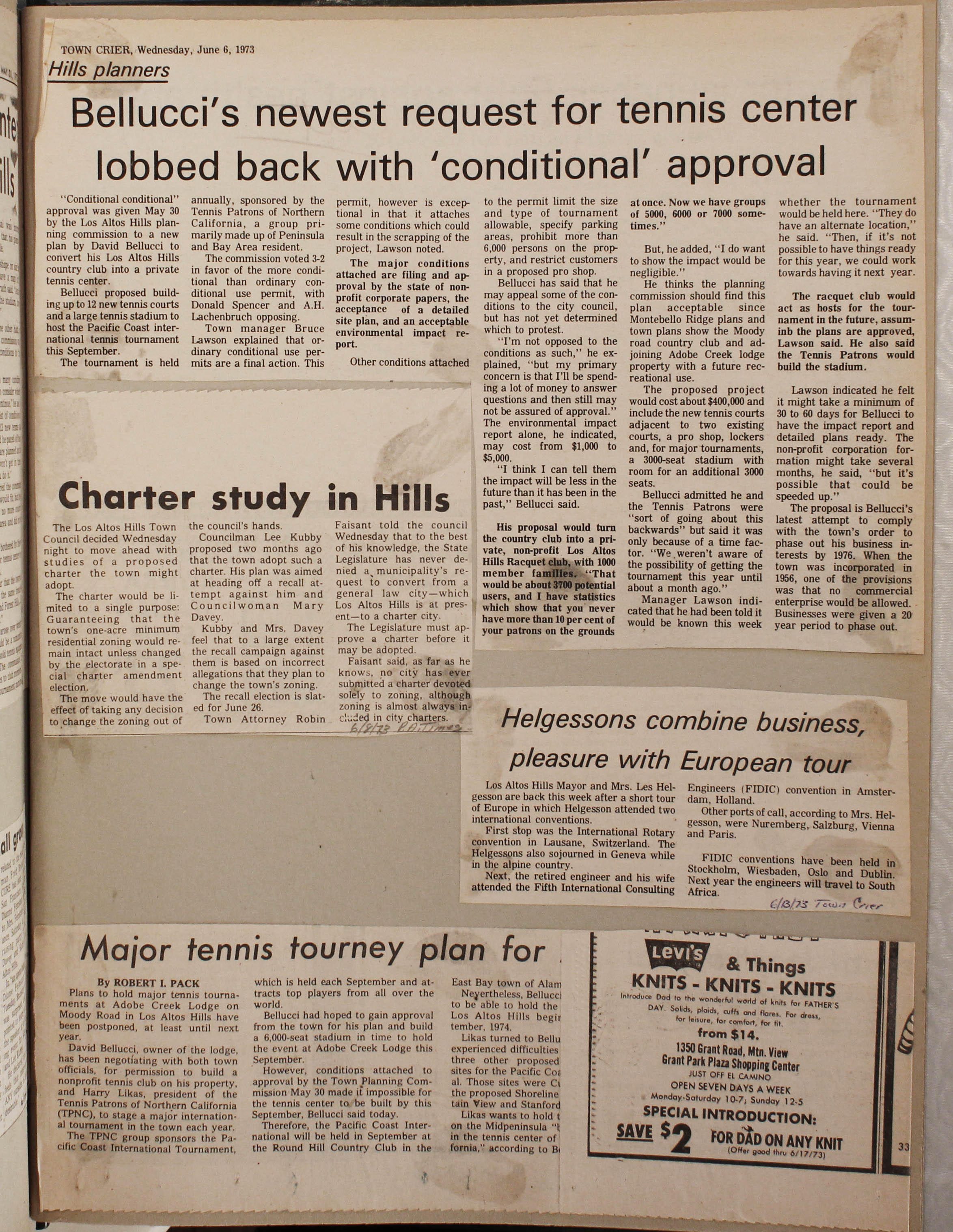 tennis center - Nor. Cal. S & L opens branch to serve LAH - Letter to Editor, charter not needed -