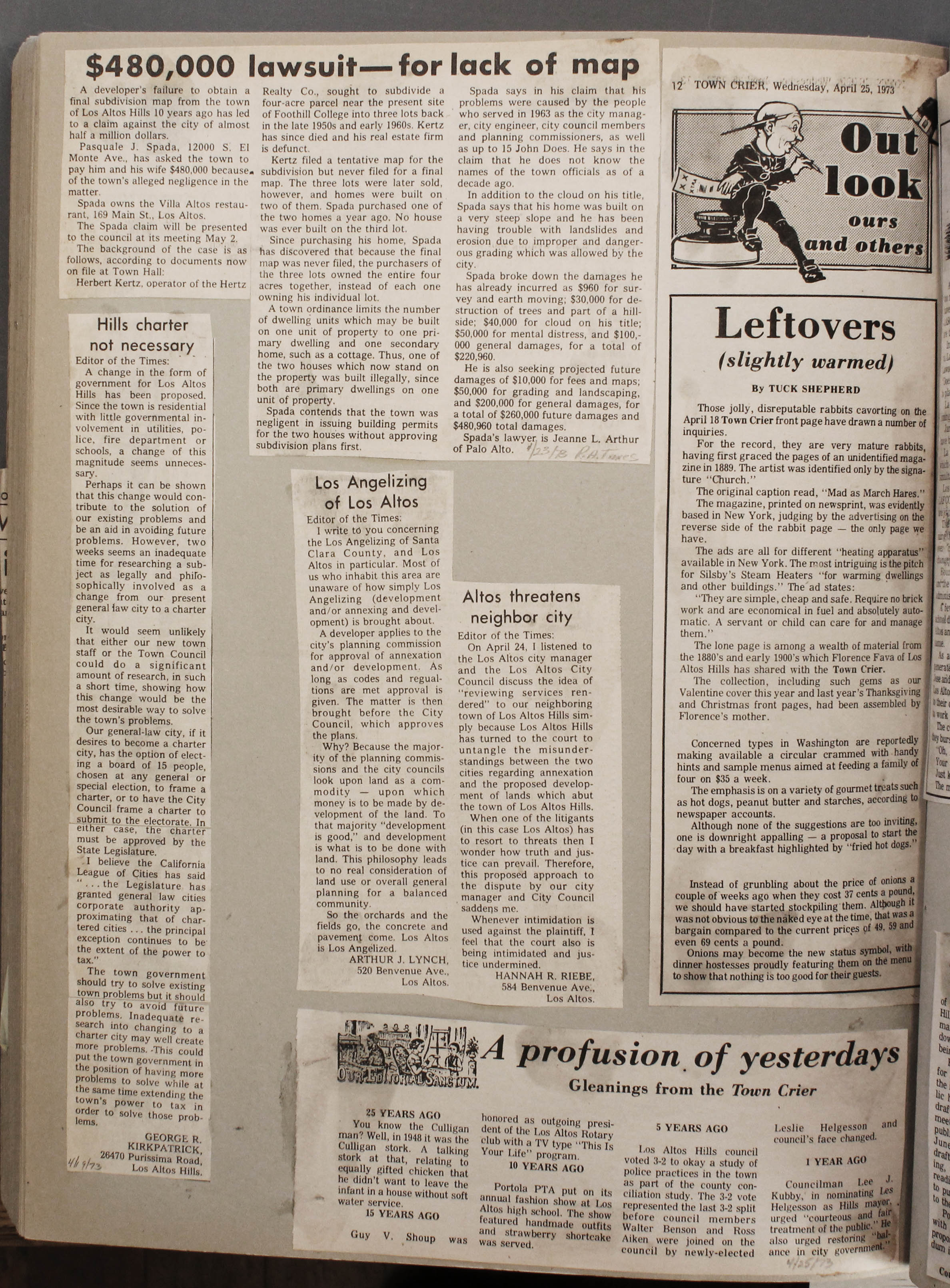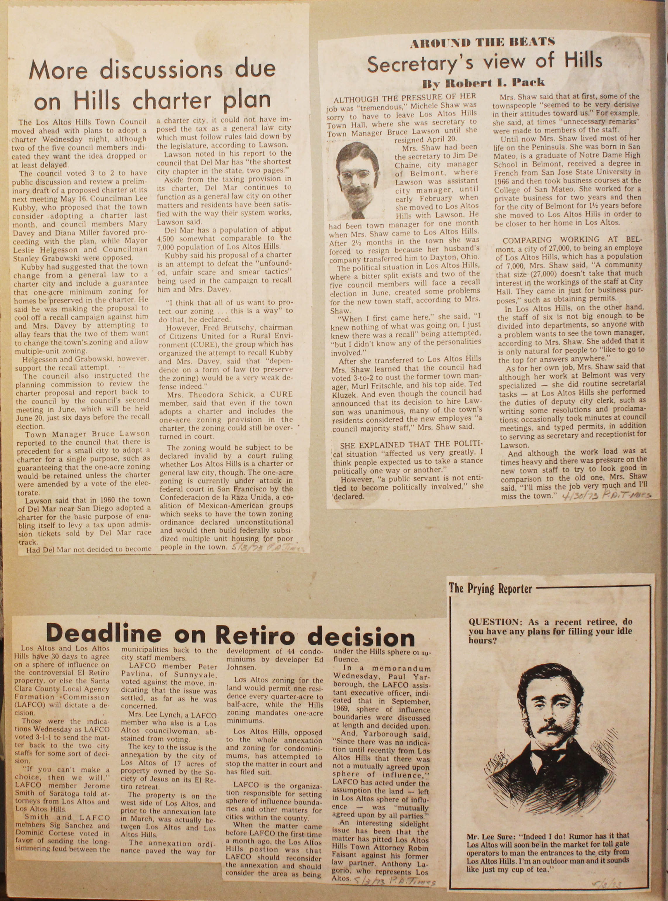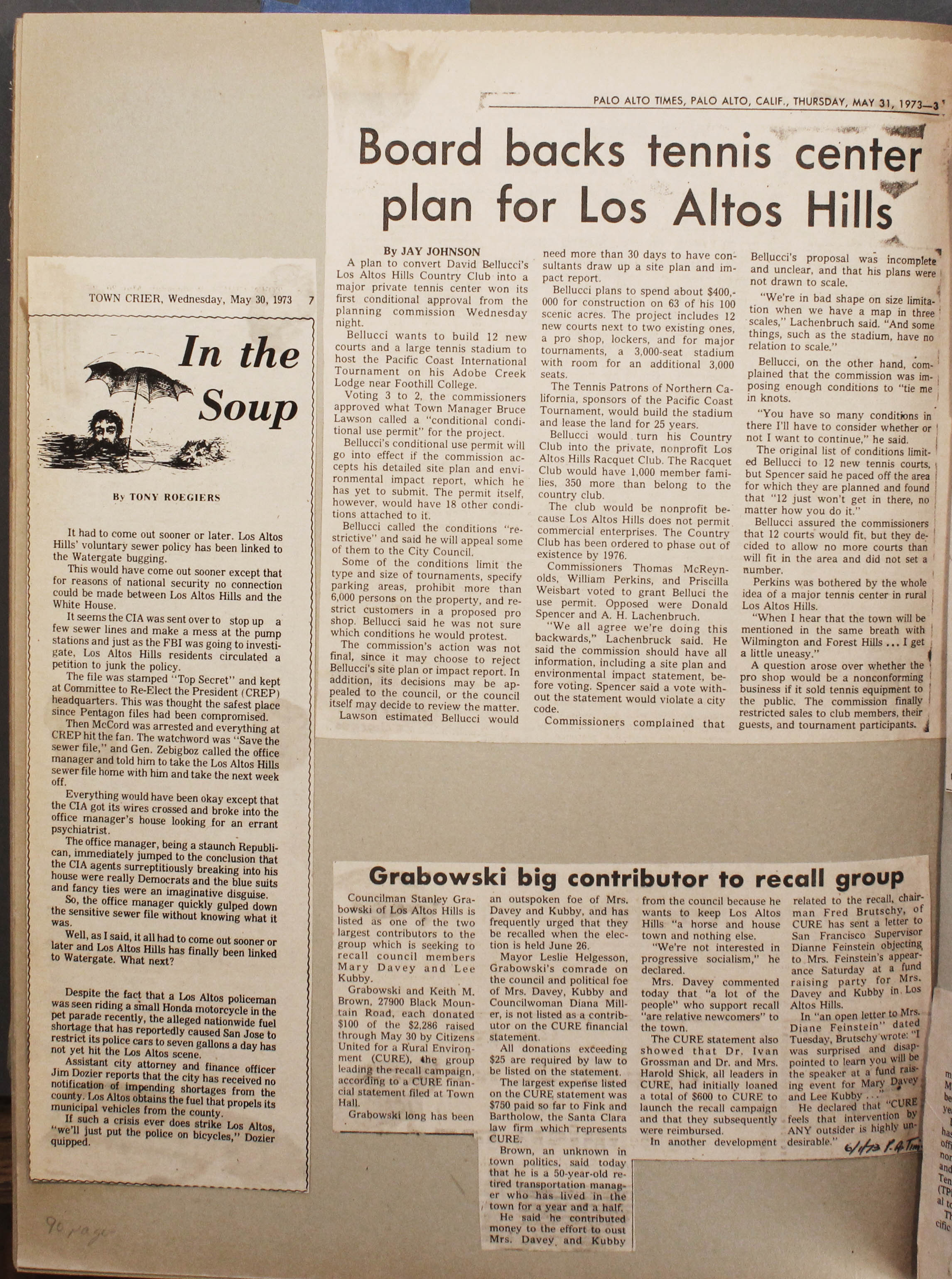 tennis center - Nor. Cal. S & L opens branch to serve LAH - Letter to Editor, charter not needed -