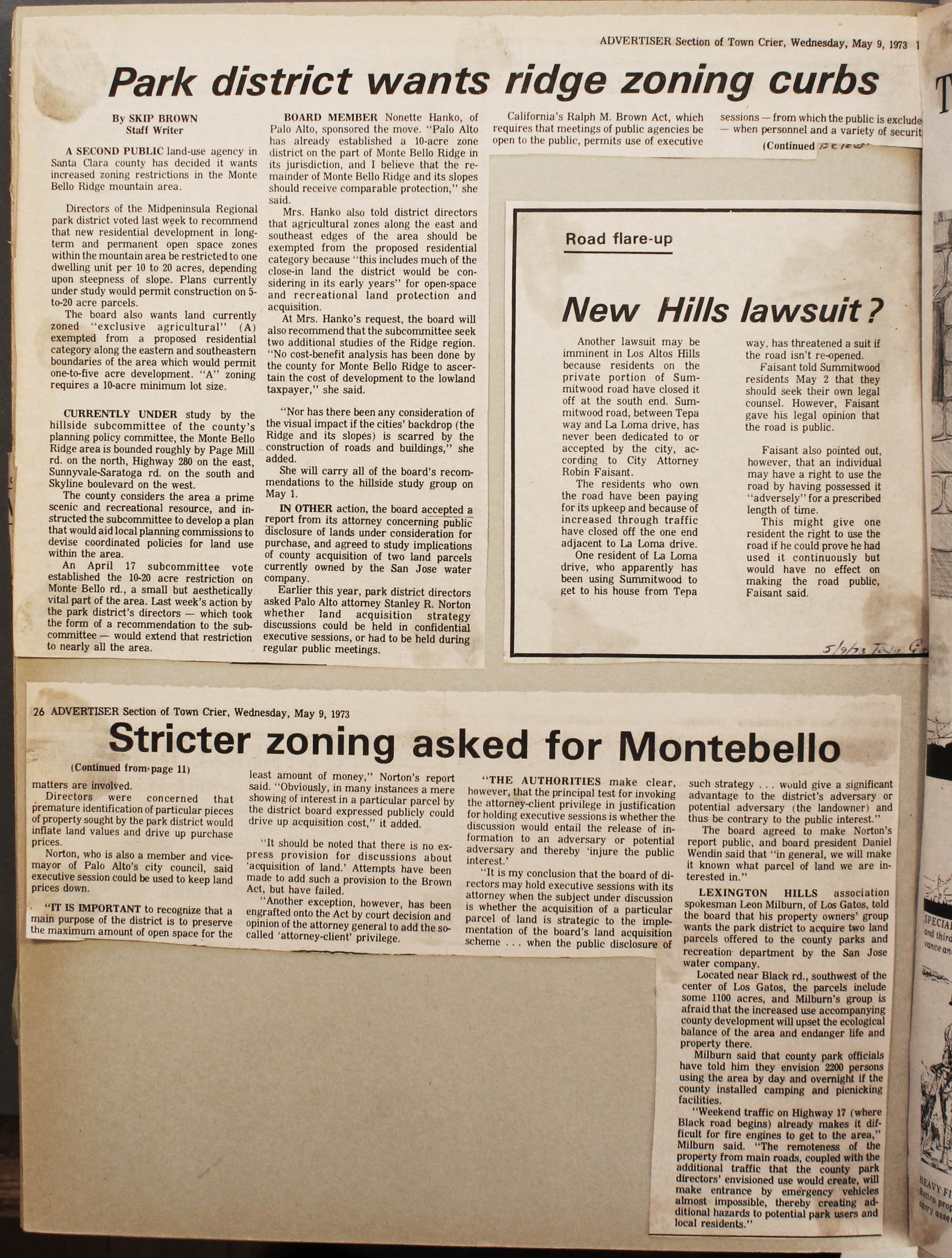 changes for meetings in LAH - Campaign to create Mid-Peninsula Regional Open