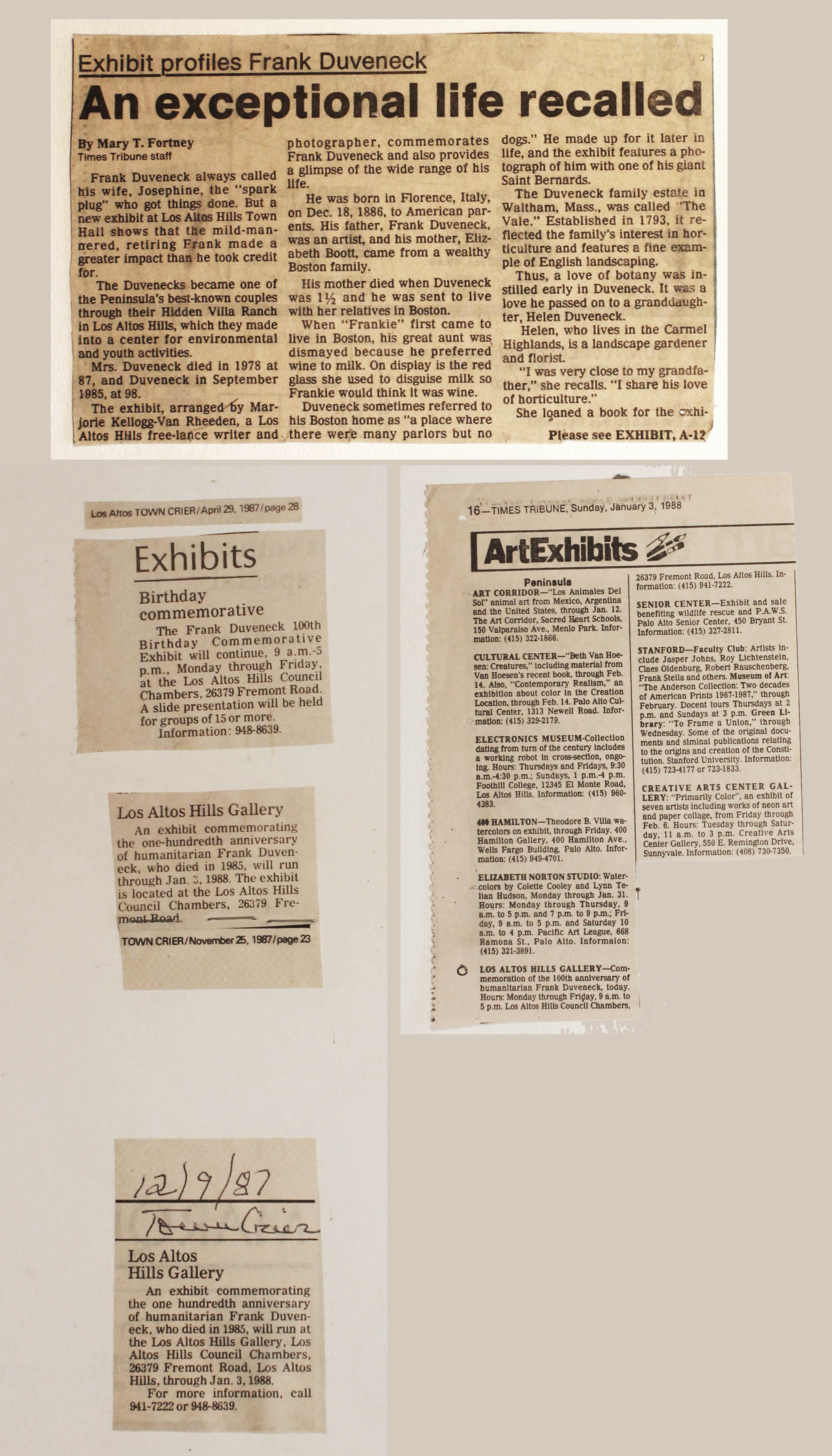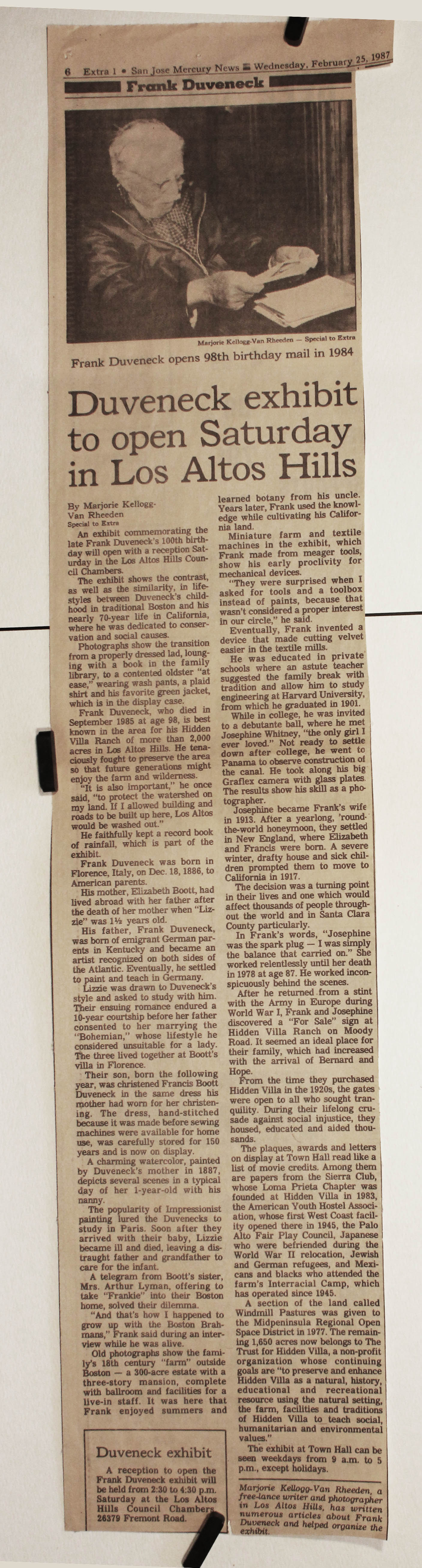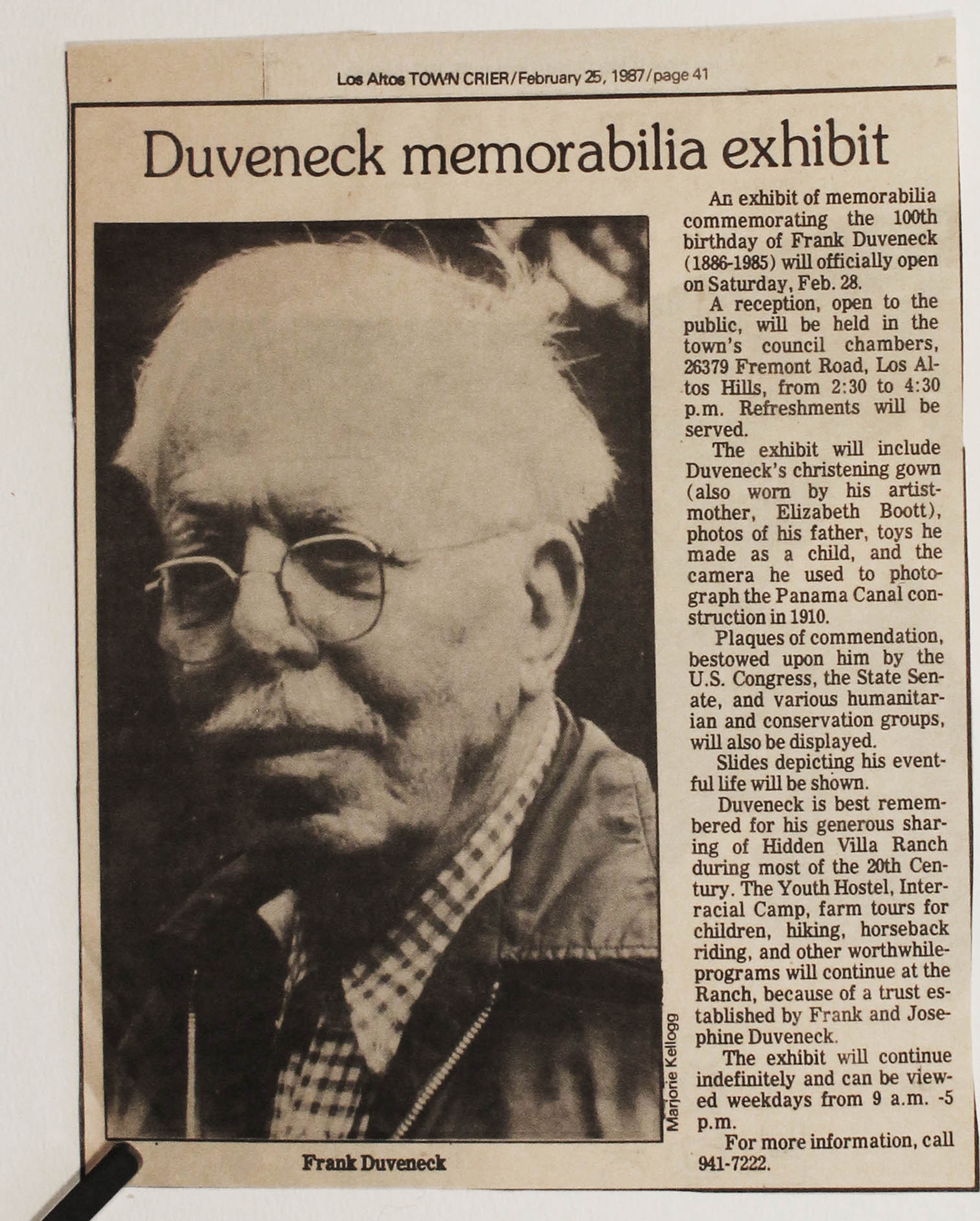 Hidden Villa - Exhibit at LAH Town Hall honors Frank Duveneck |