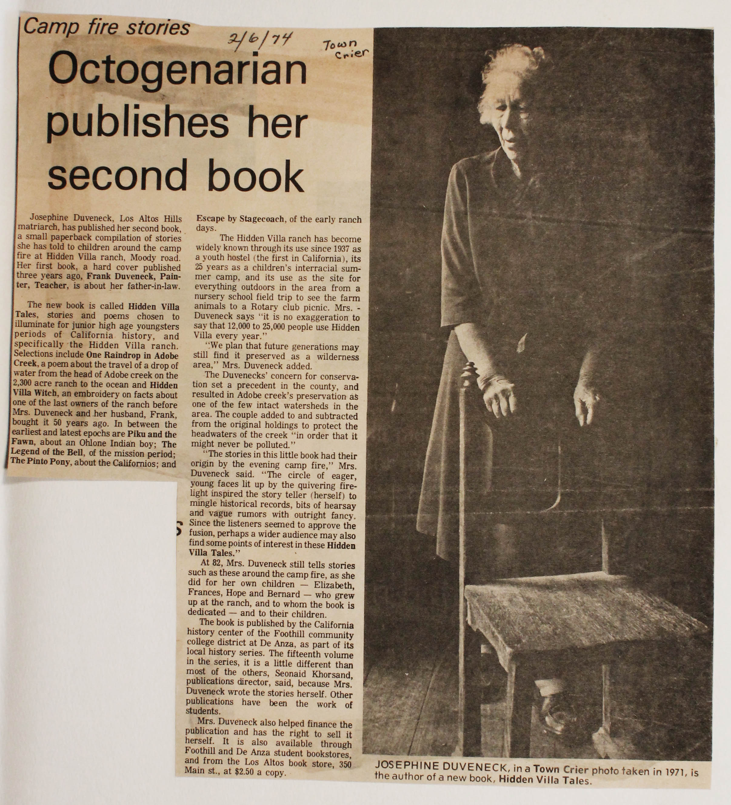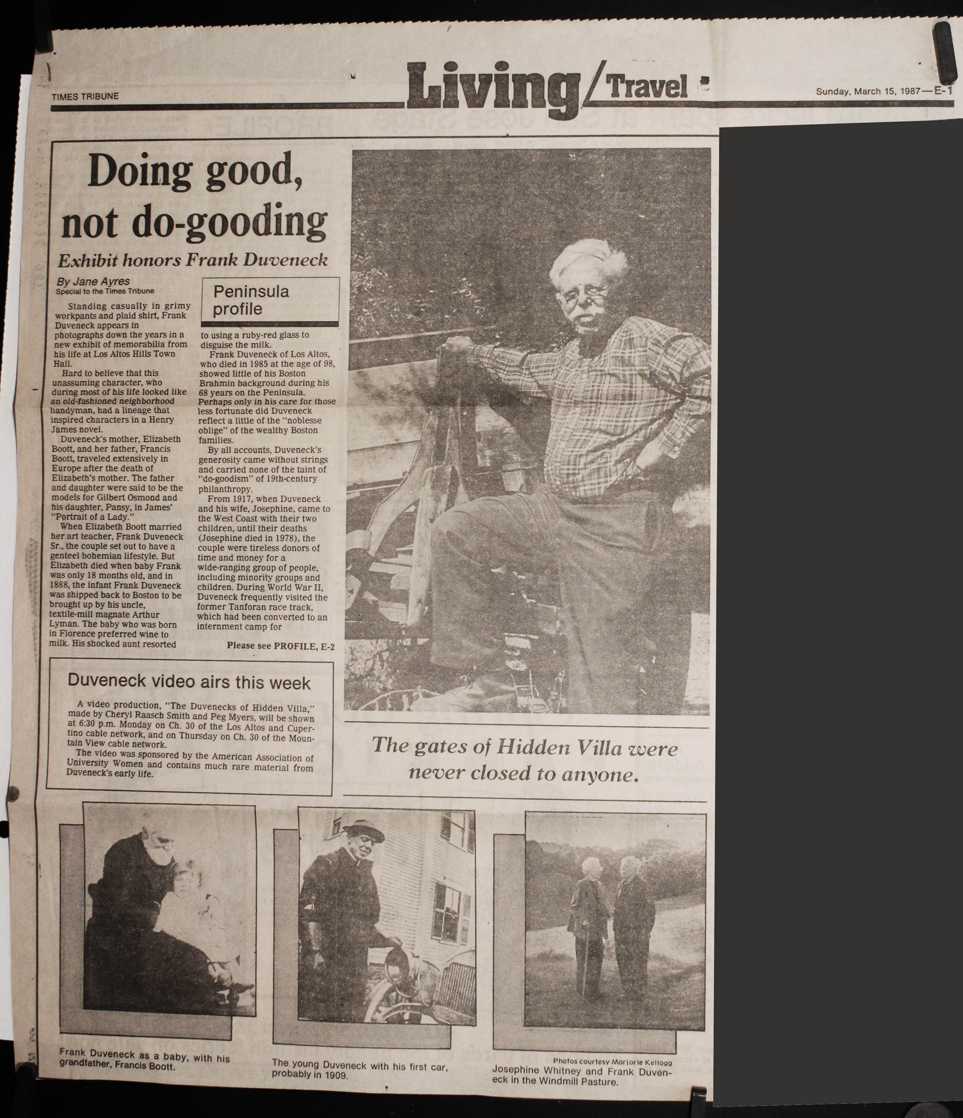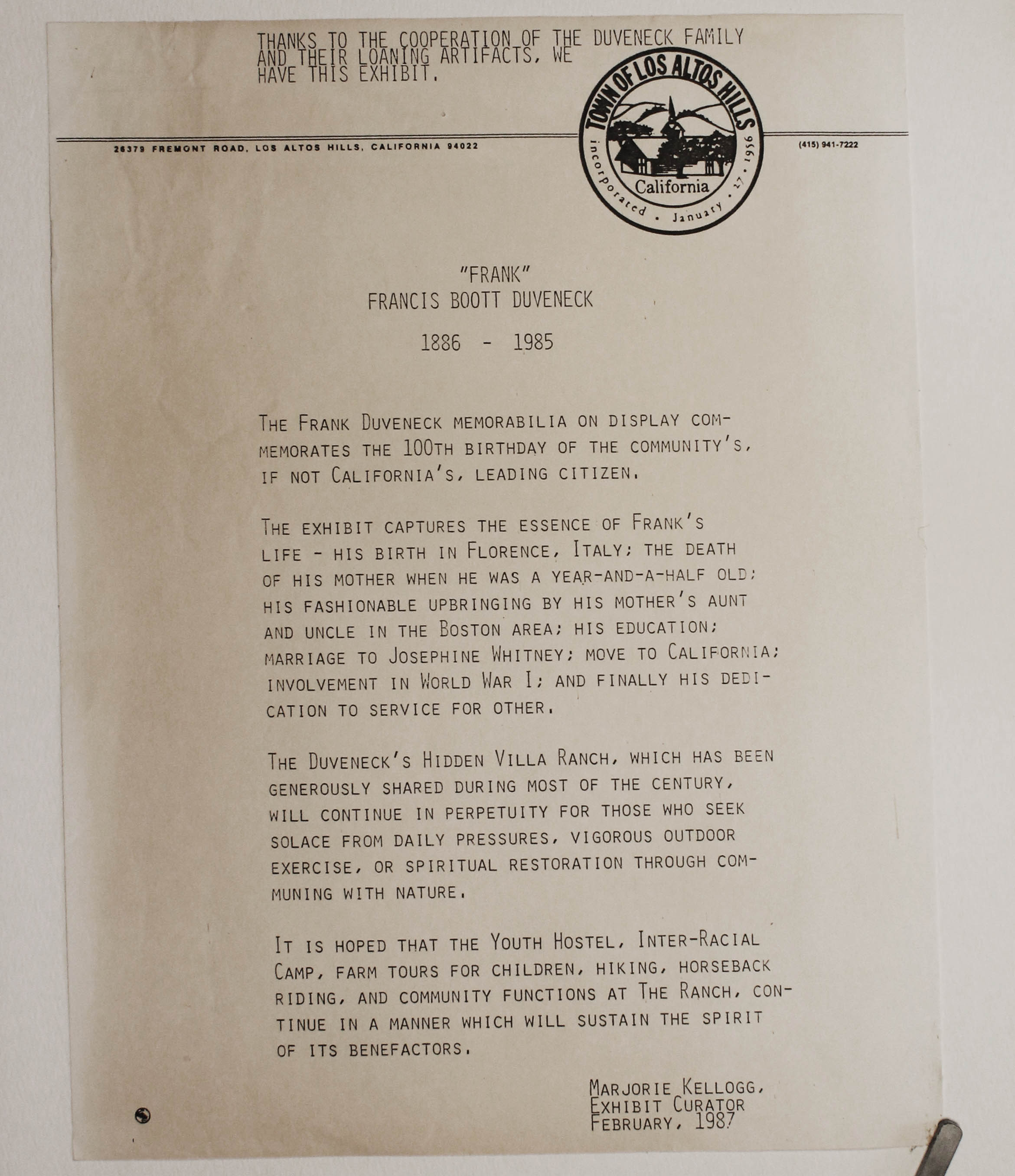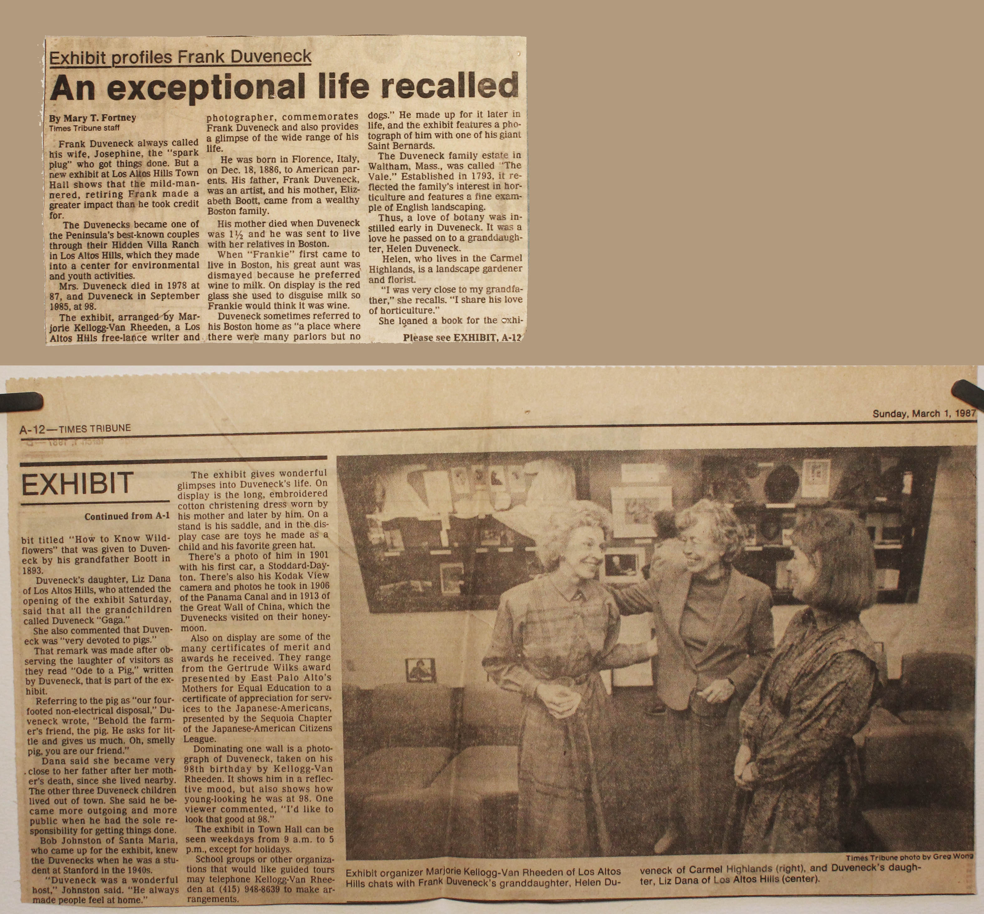 Hidden Villa - Exhibit at LAH Town Hall honors Frank Duveneck |