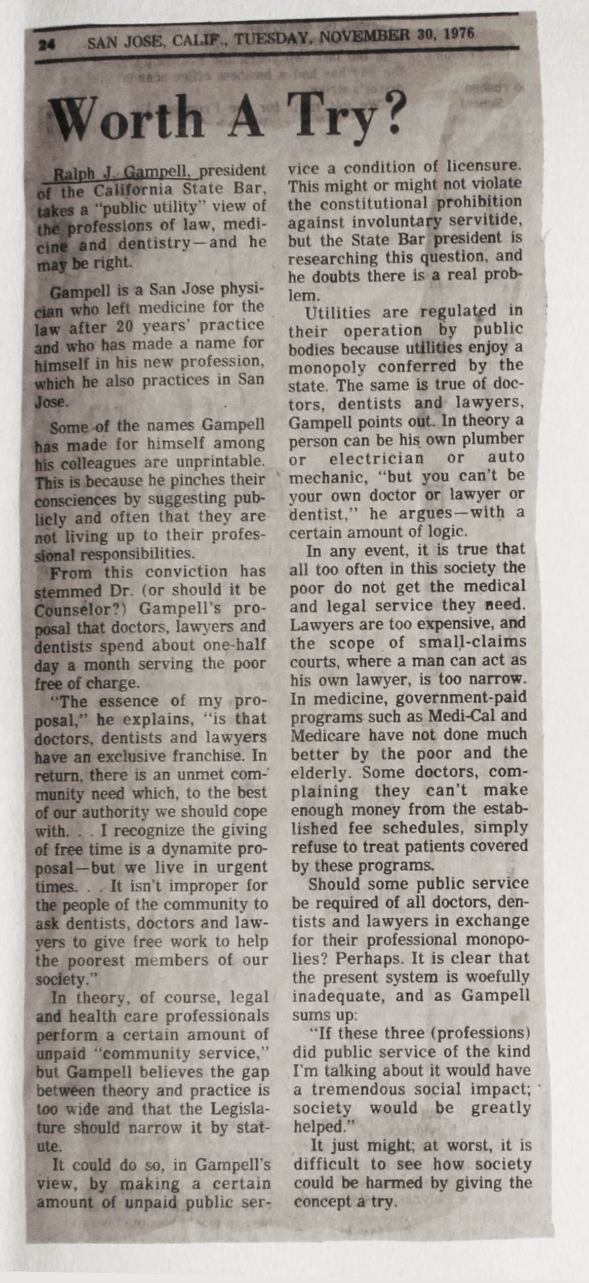 State Bar - Gampell has bold plan for state's Doctors, Lawyers, Dentists to