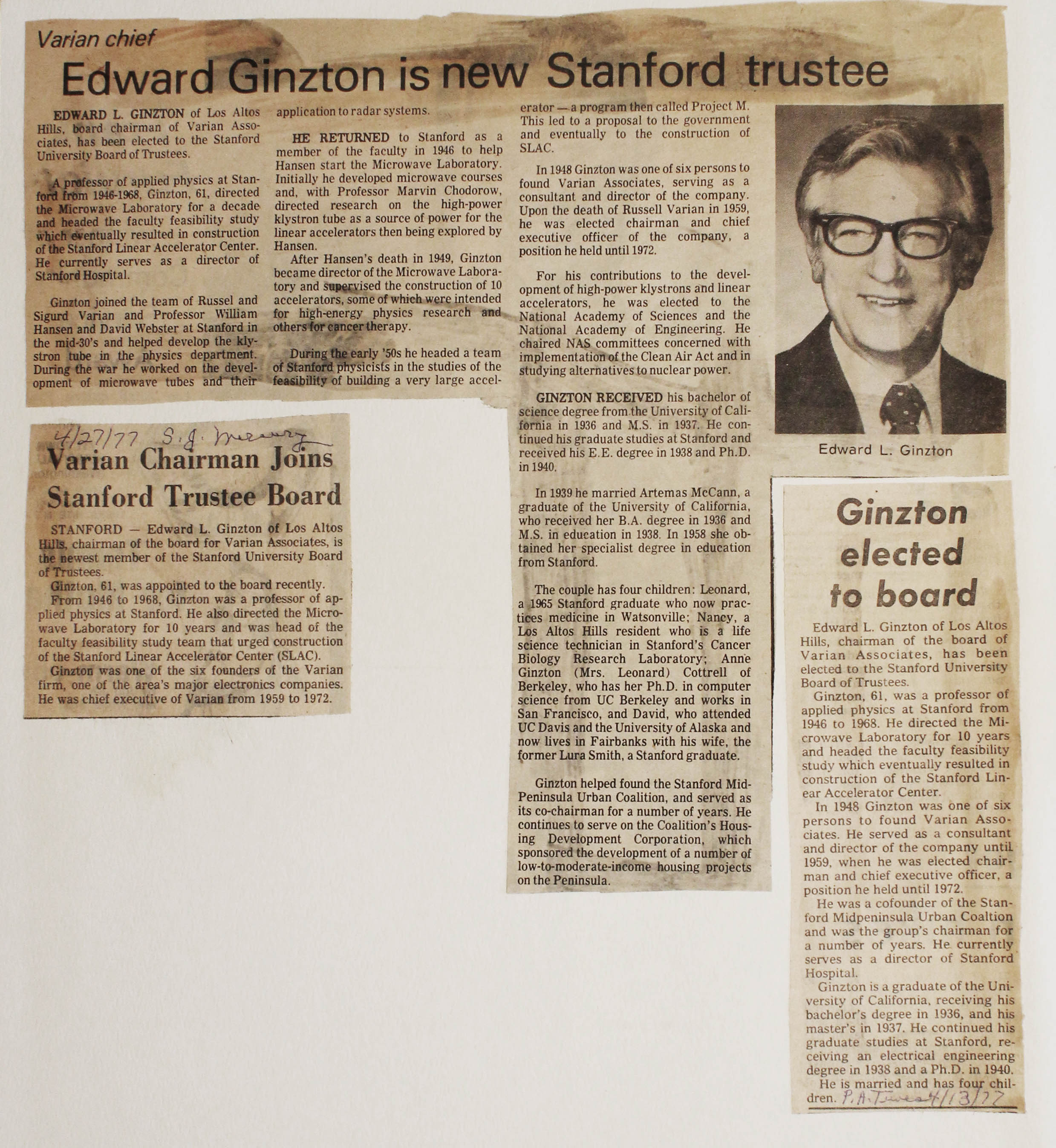 Chairman of Varian Associates is elected to Stanford Board of Trustees