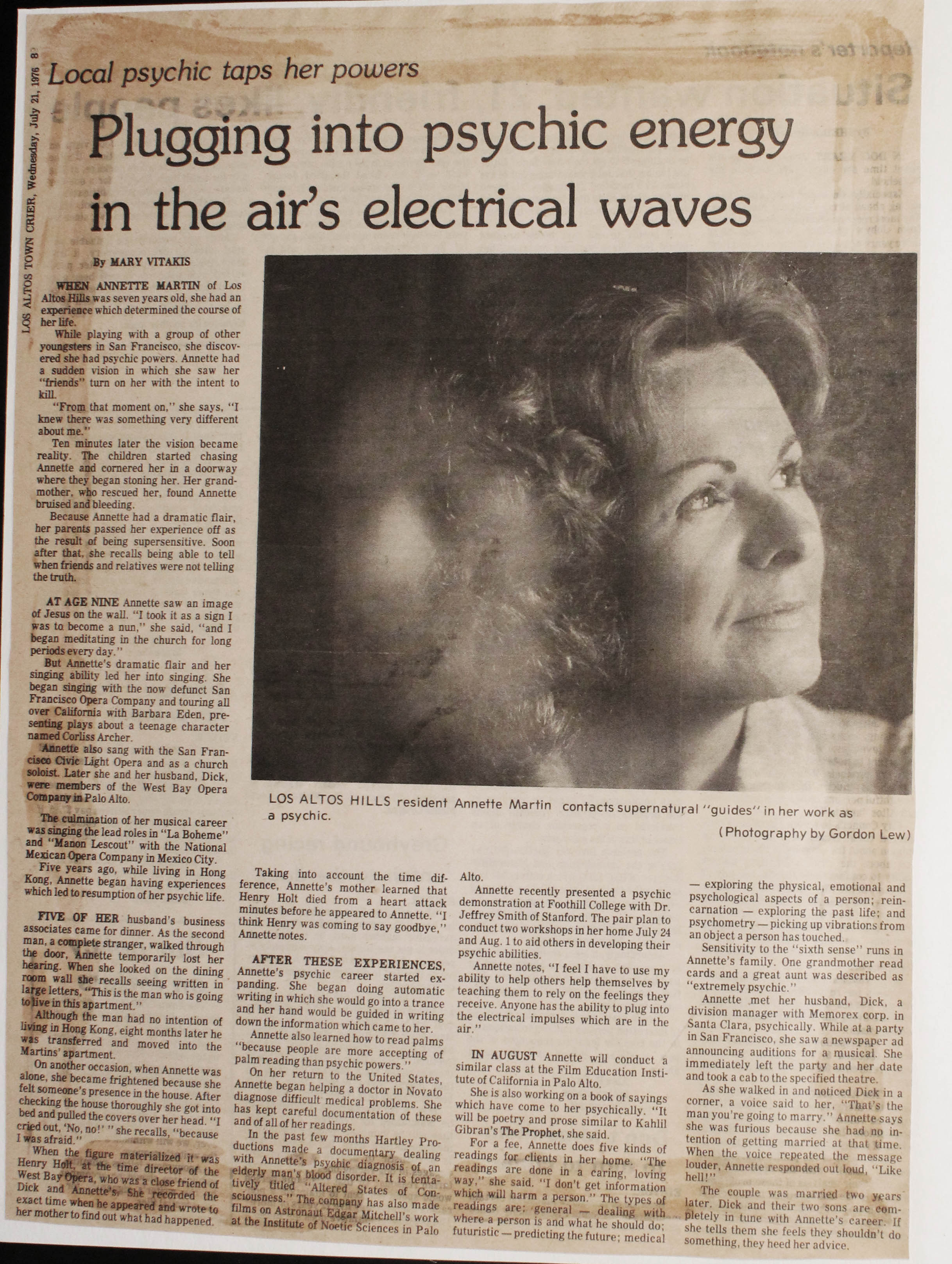 contacts supernatural guides in her work as a psychic, plugs into psychic
