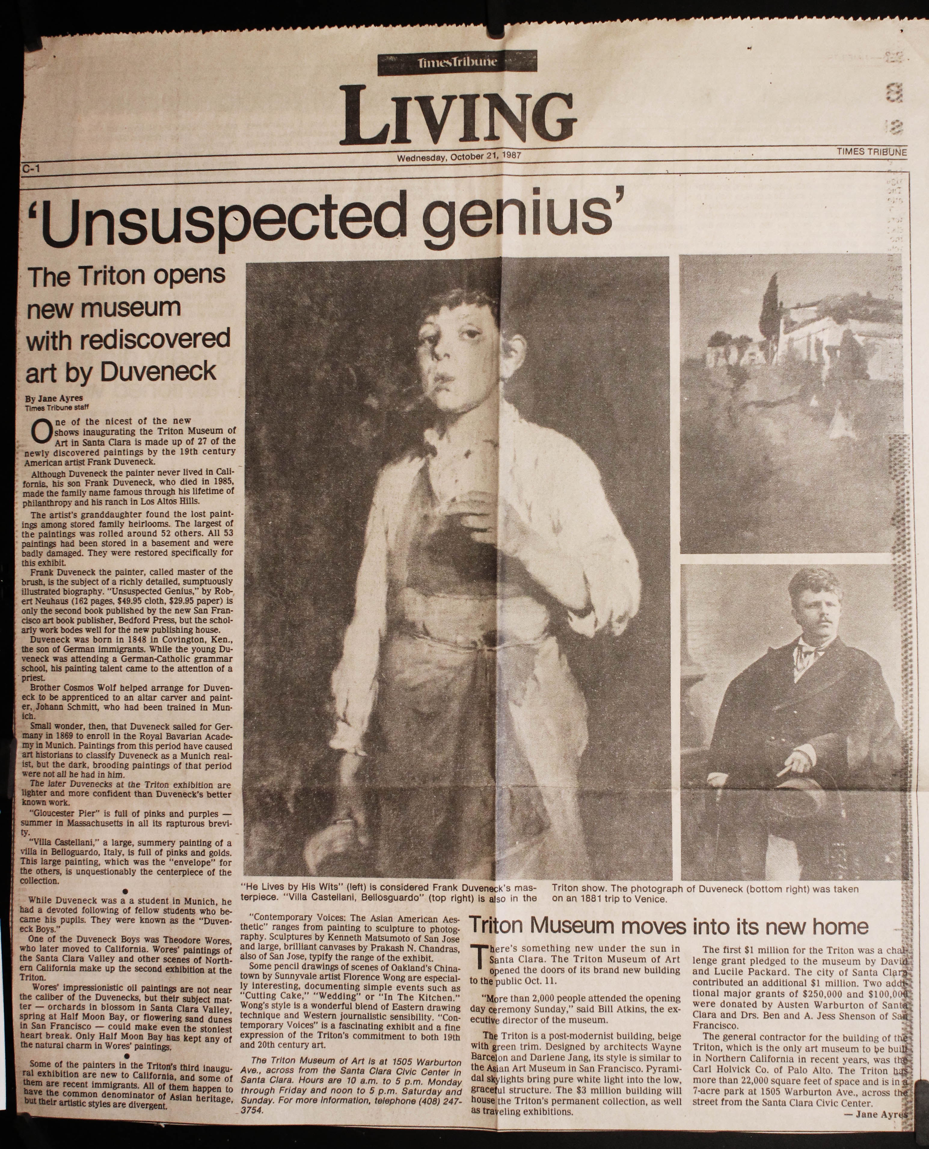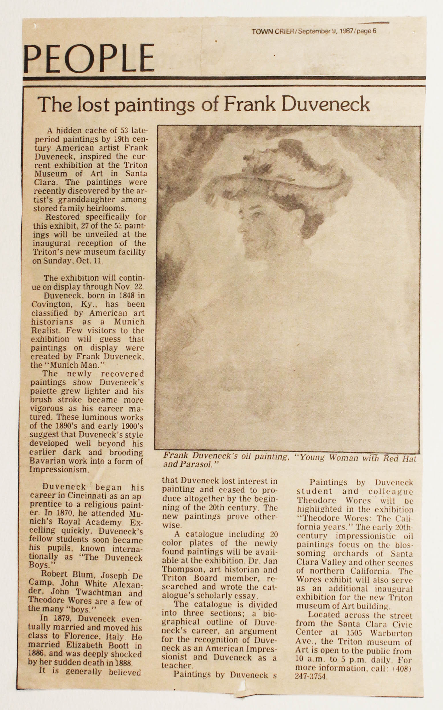resdiscovered art by 19th century artist Frank Duveneck, father of Hidden Villa Frank Duveneck |