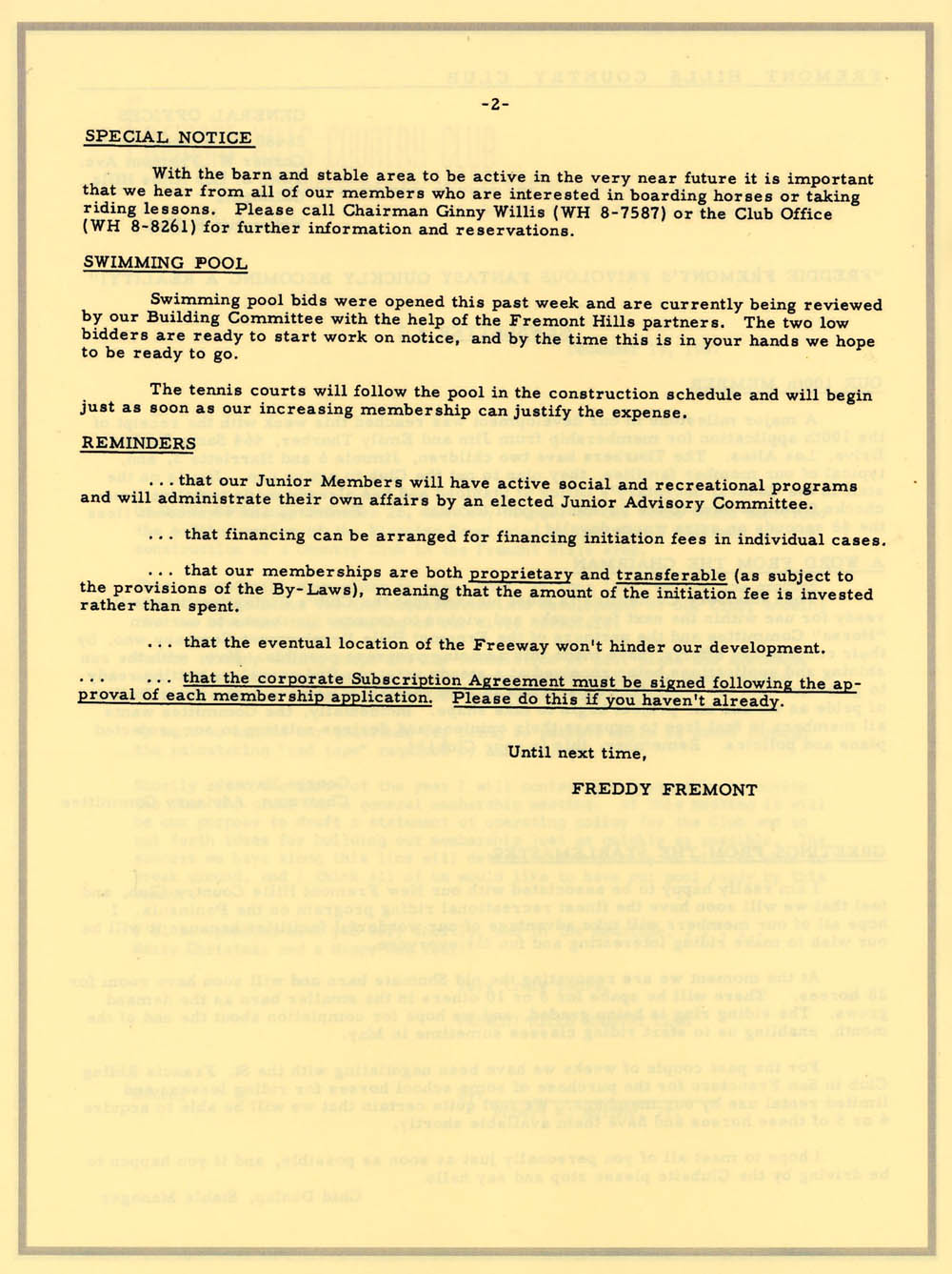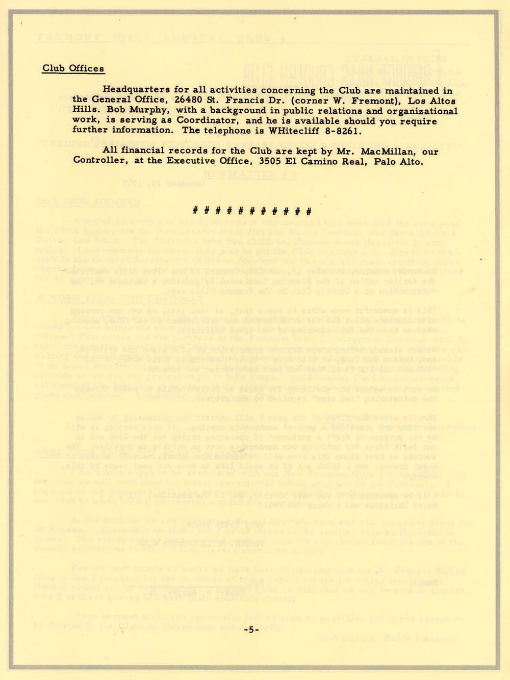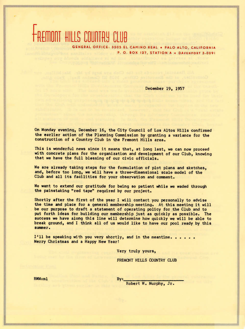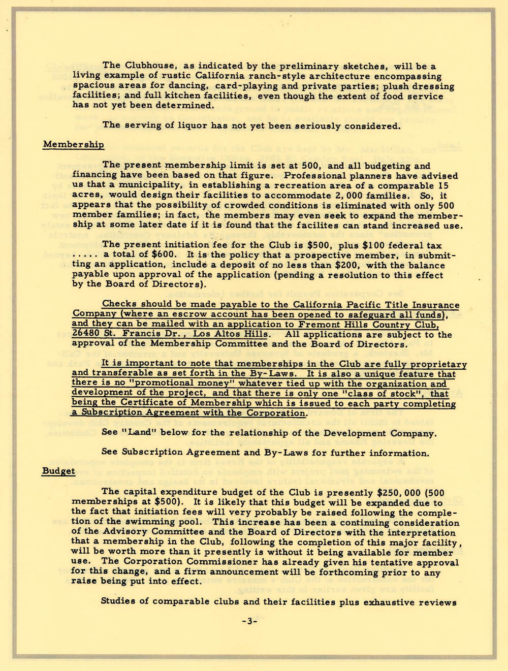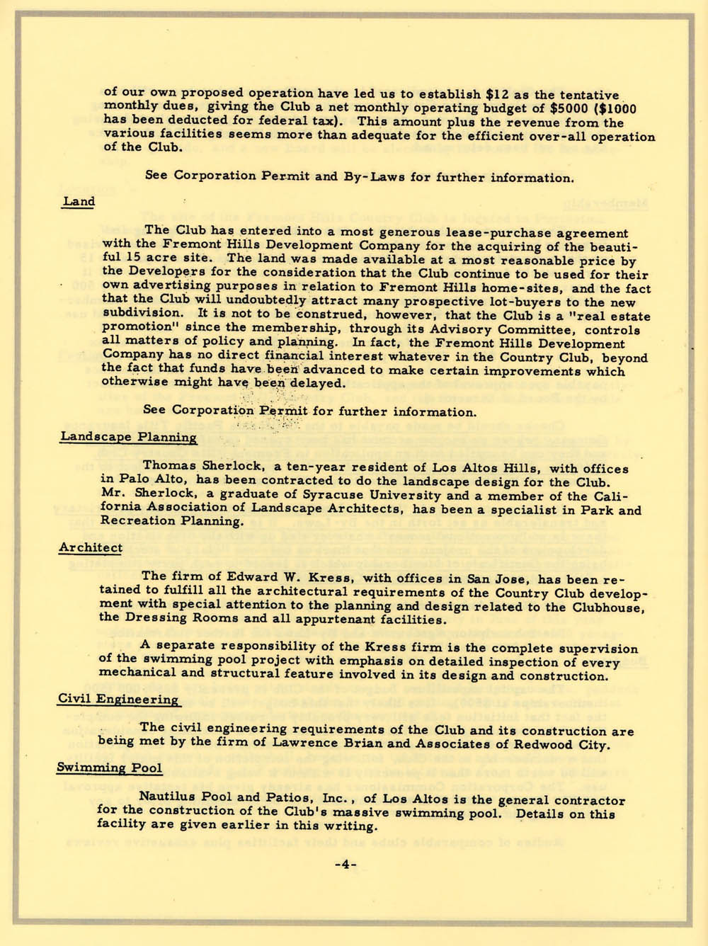 The Fremont Hills Country Club was set up and came into operation soon after the incorporation of the Town of Los Altos Hills.