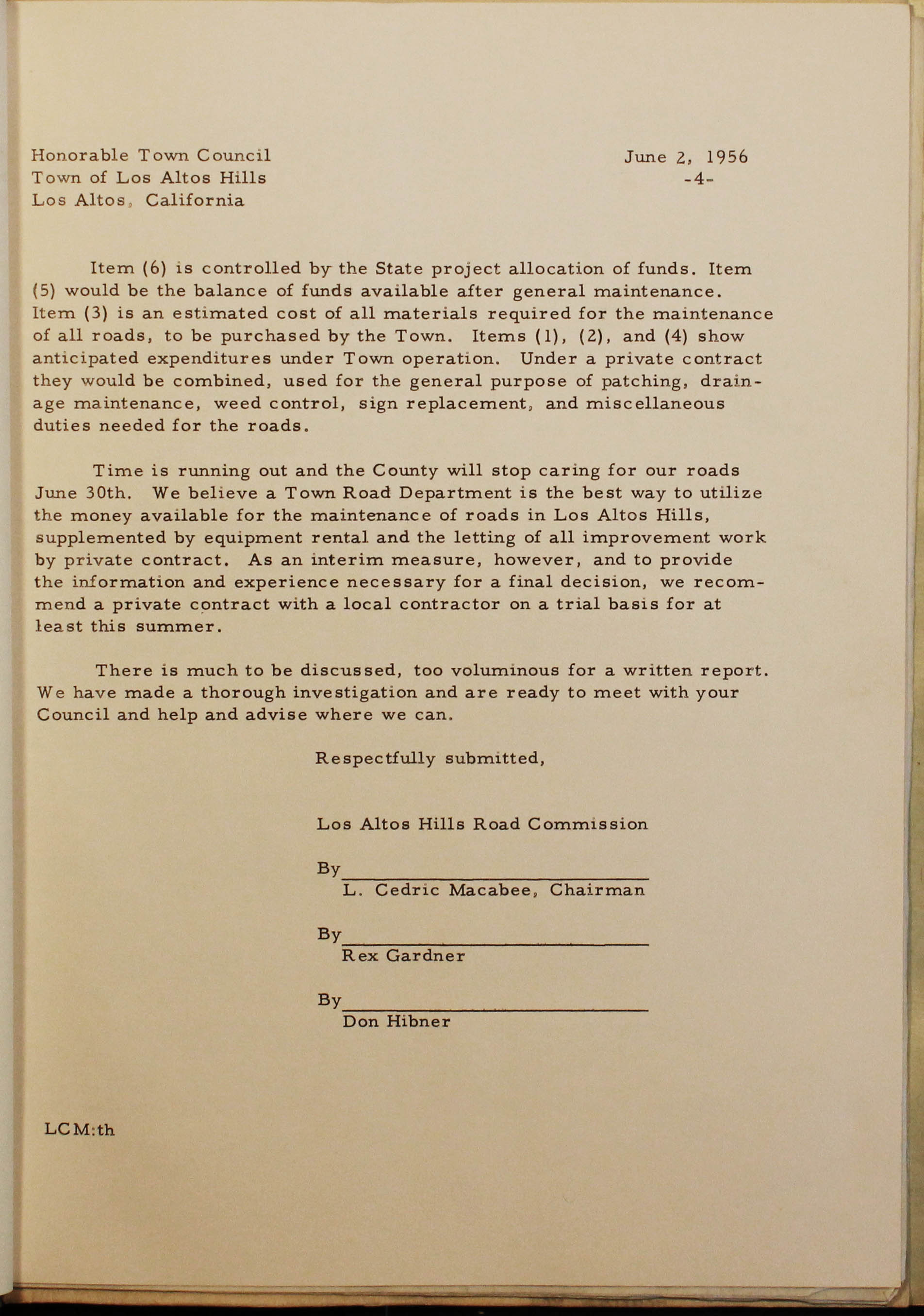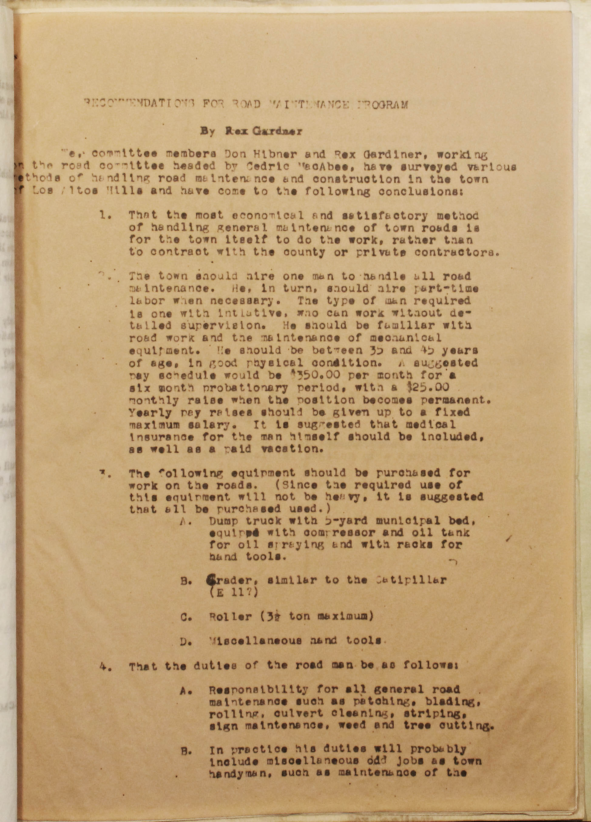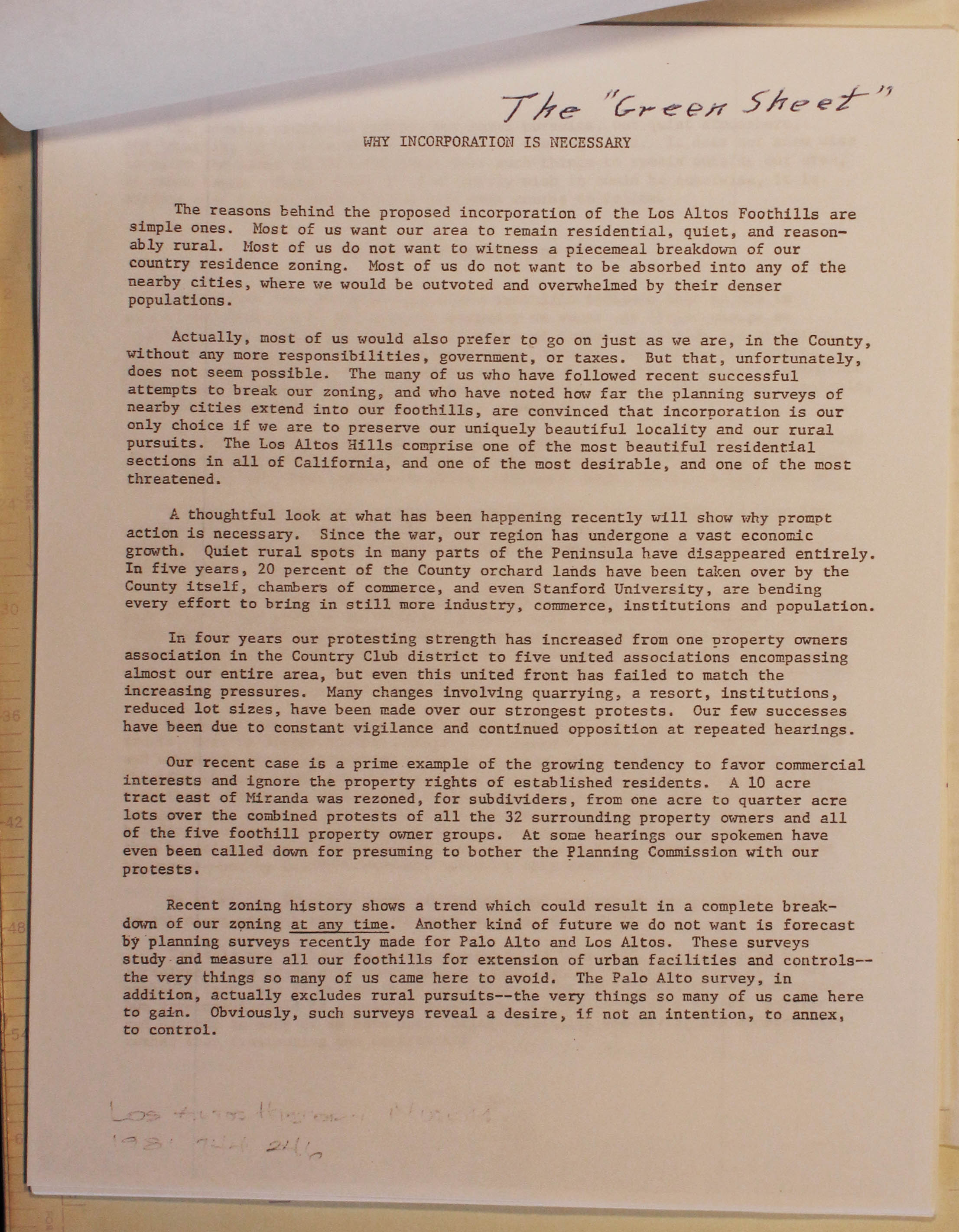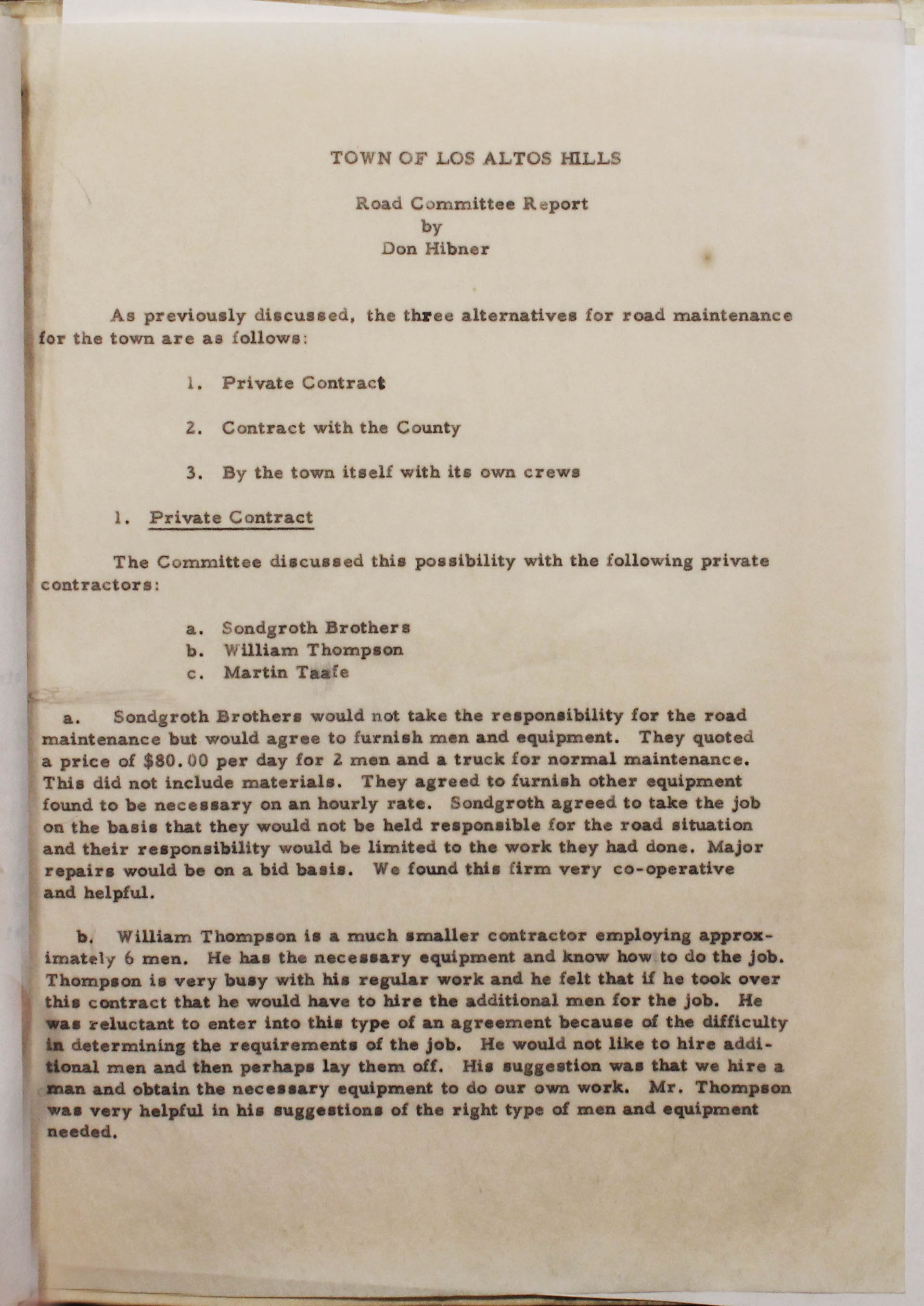Town of Los Altos Hills authorizing transfer of historic papers to Los Altos