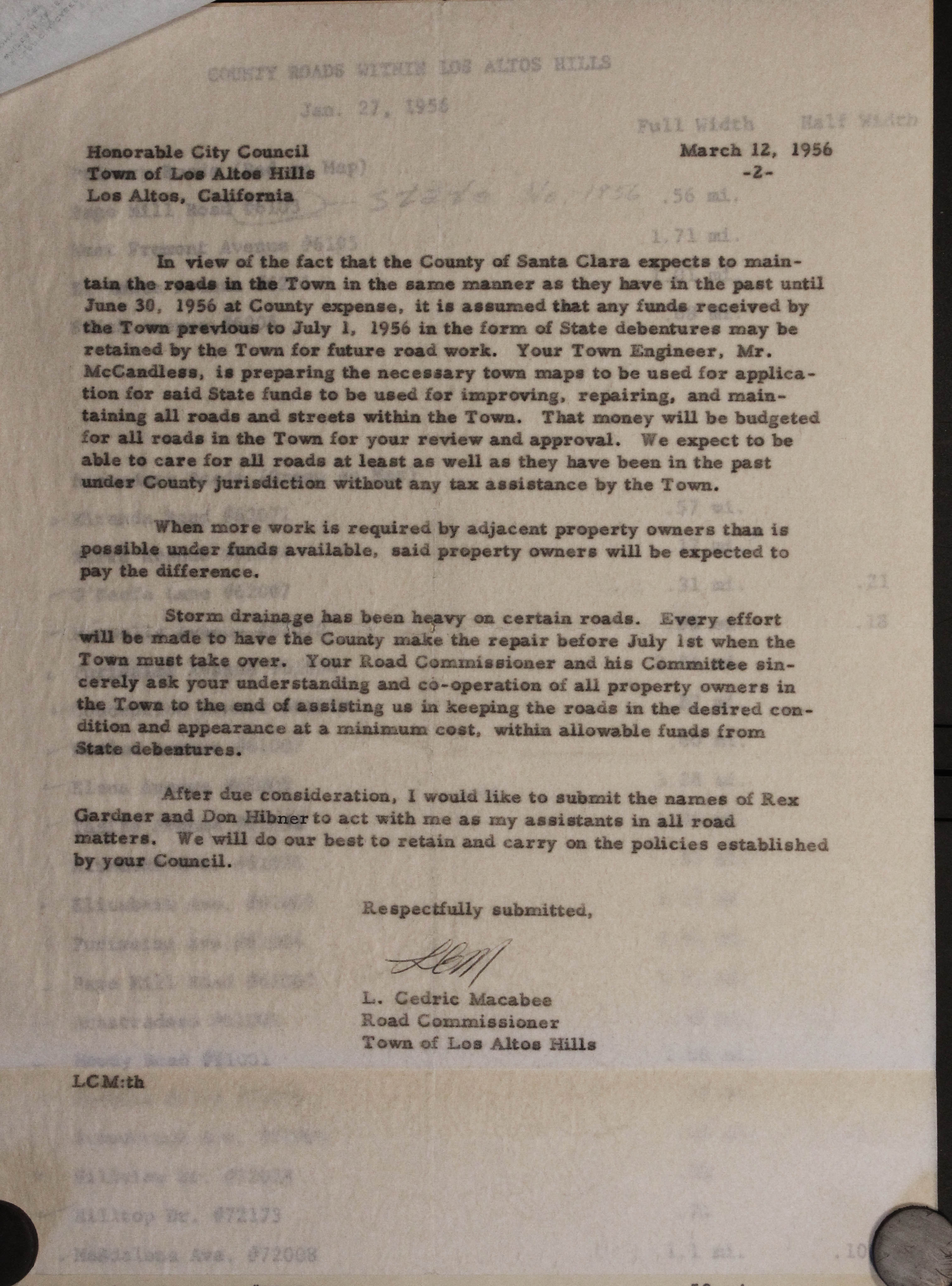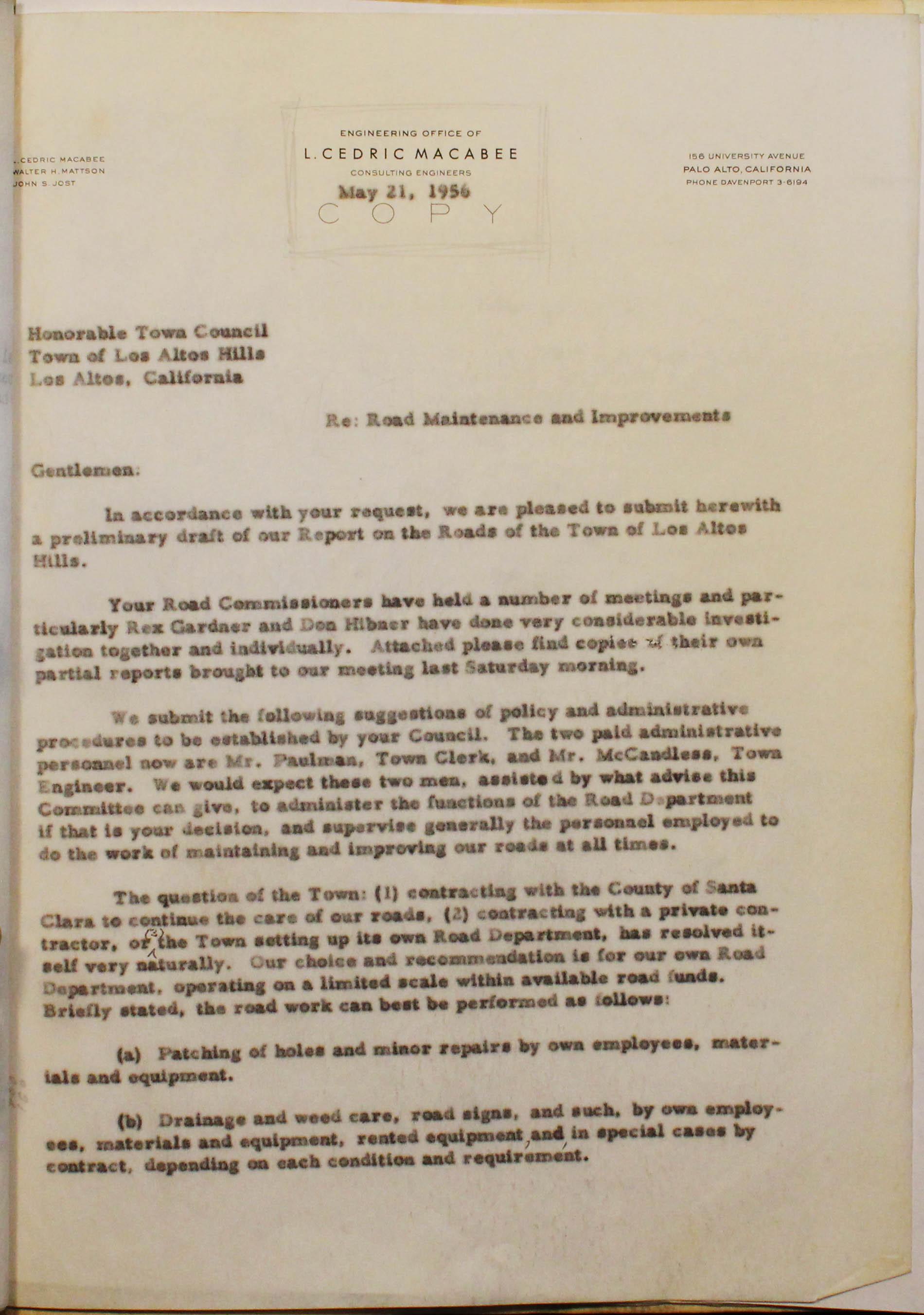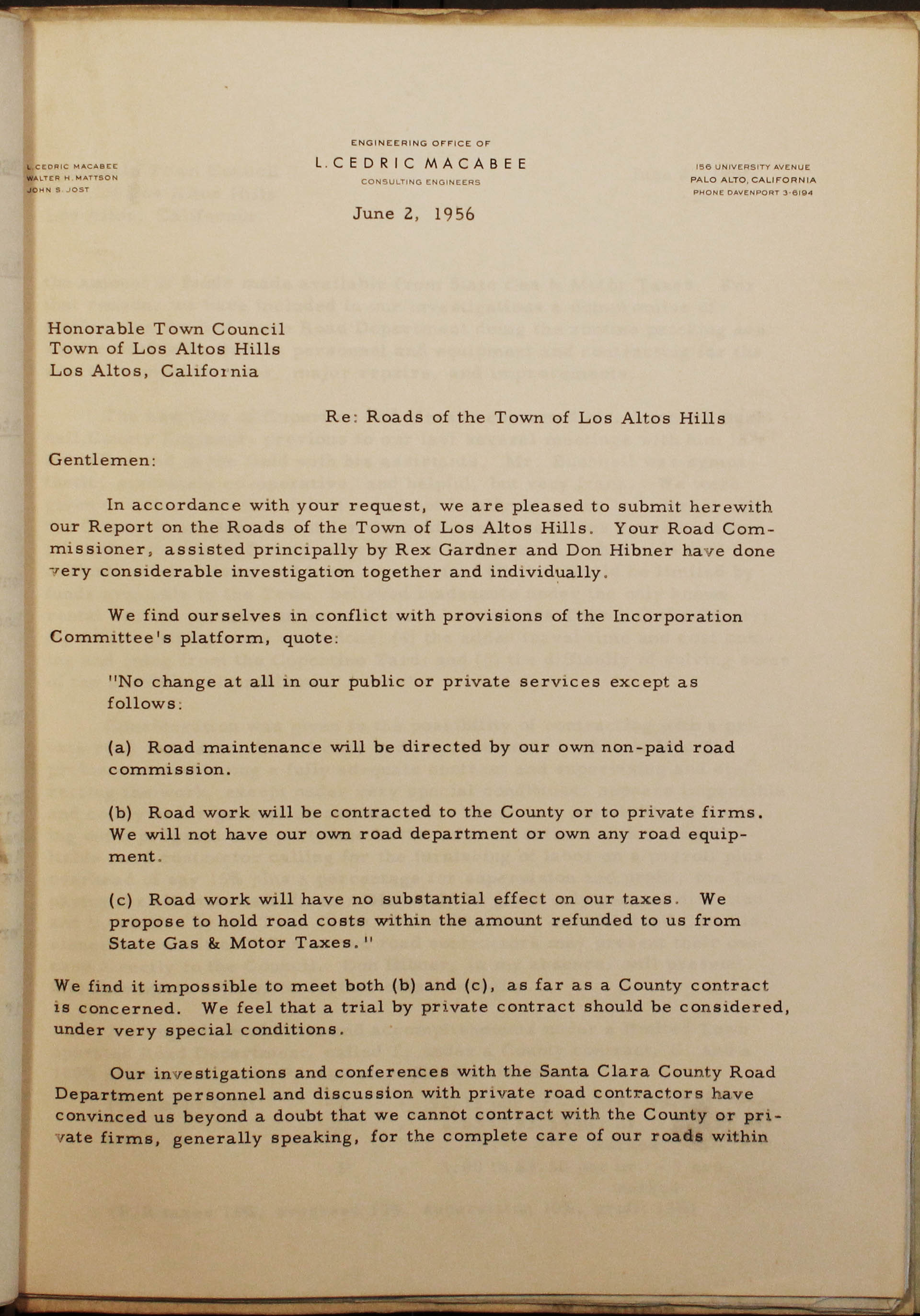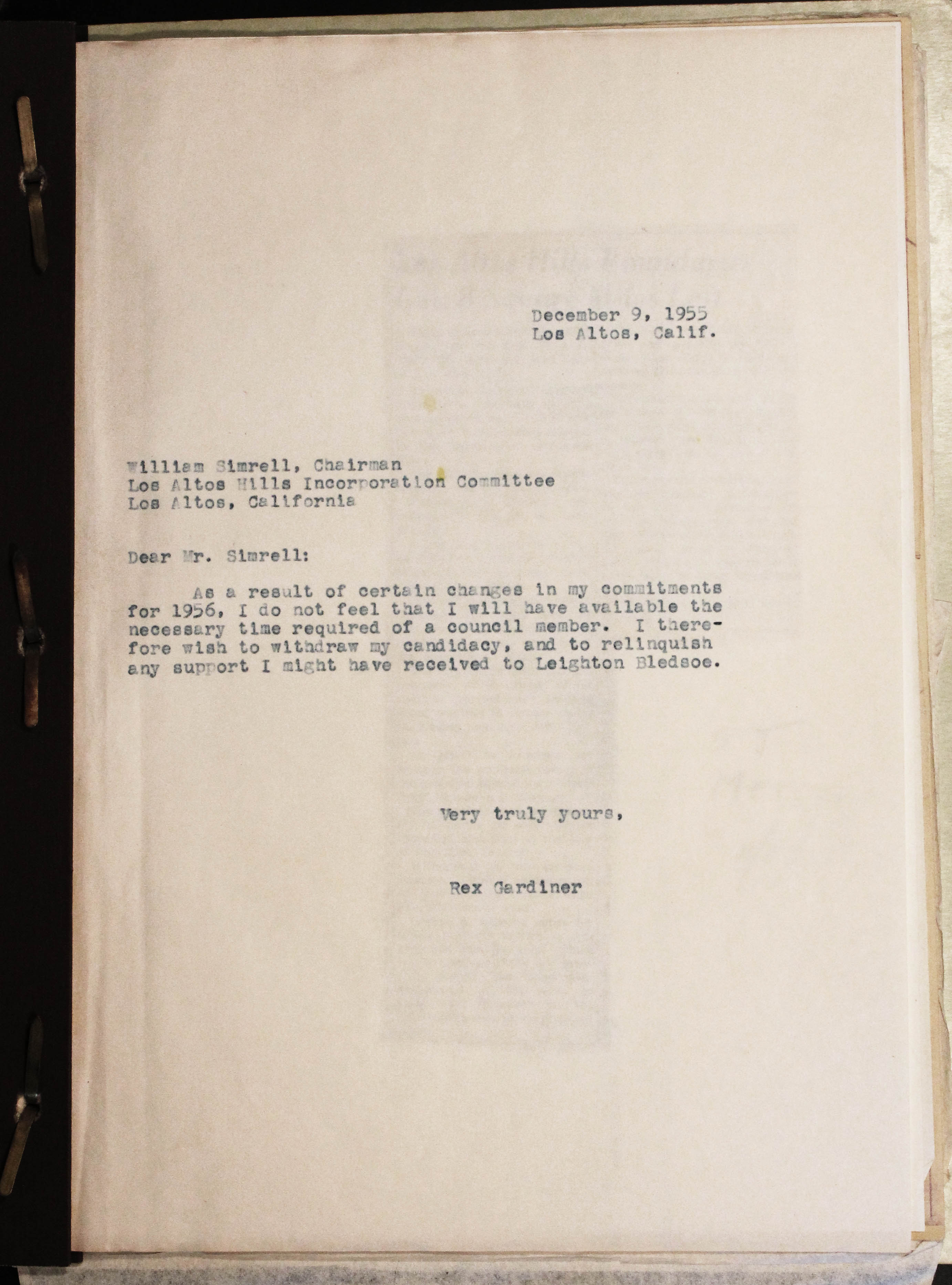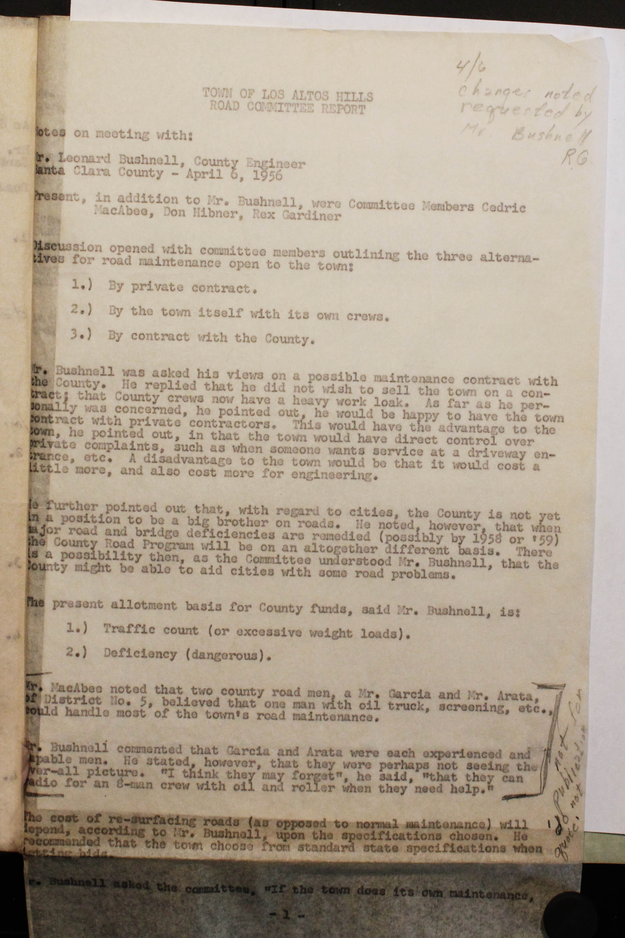 Town of Los Altos Hills authorizing transfer of historic papers to Los Altos