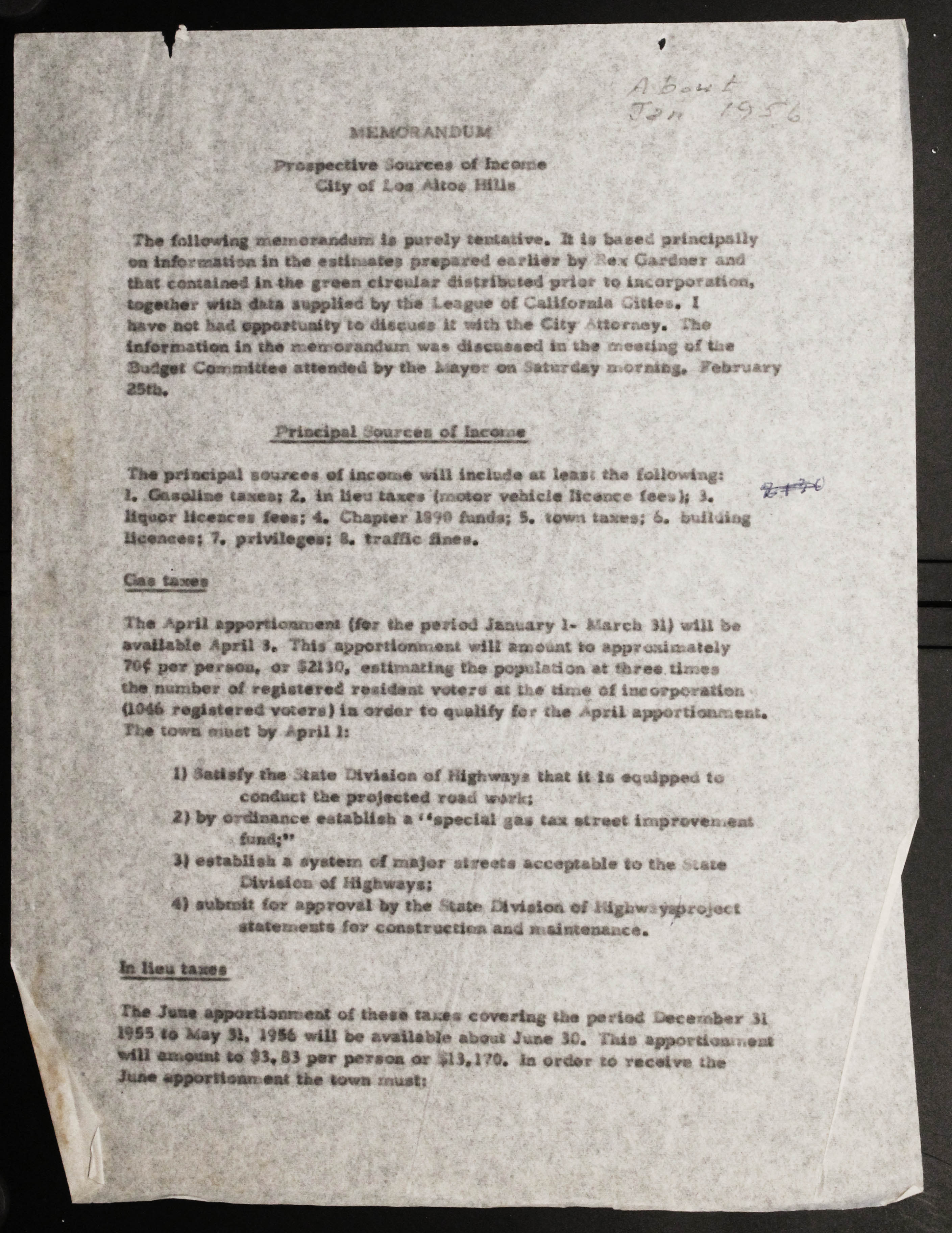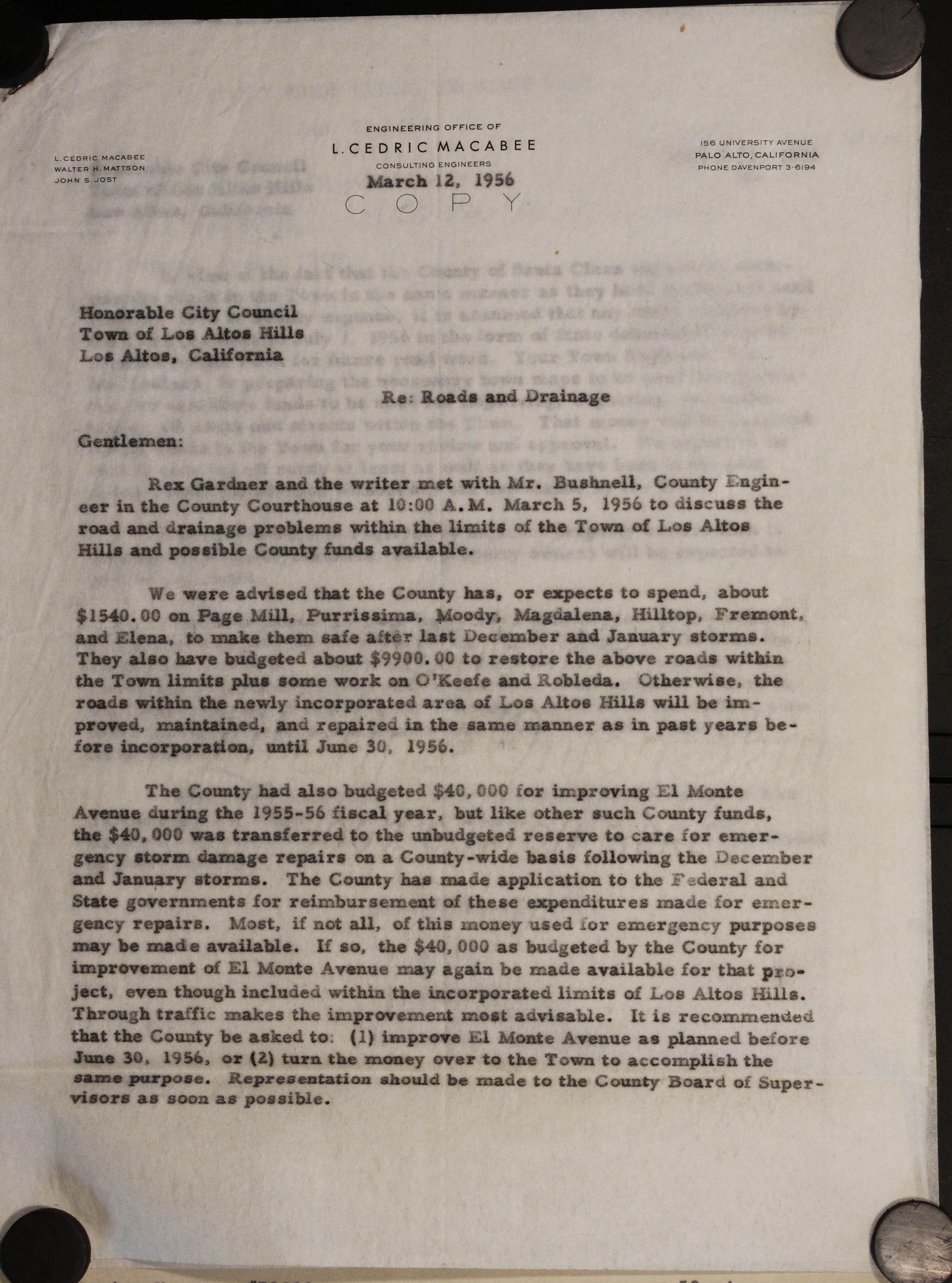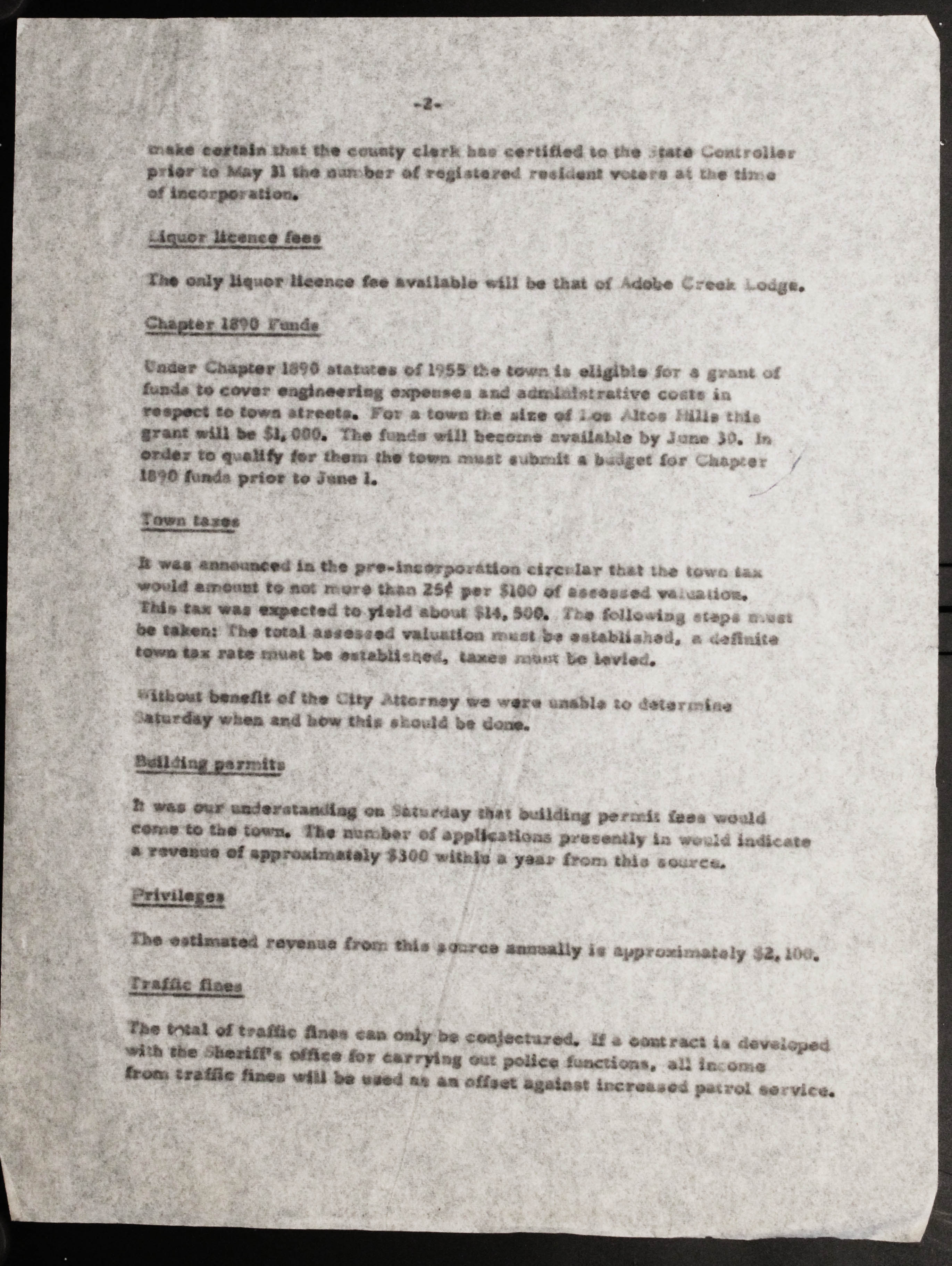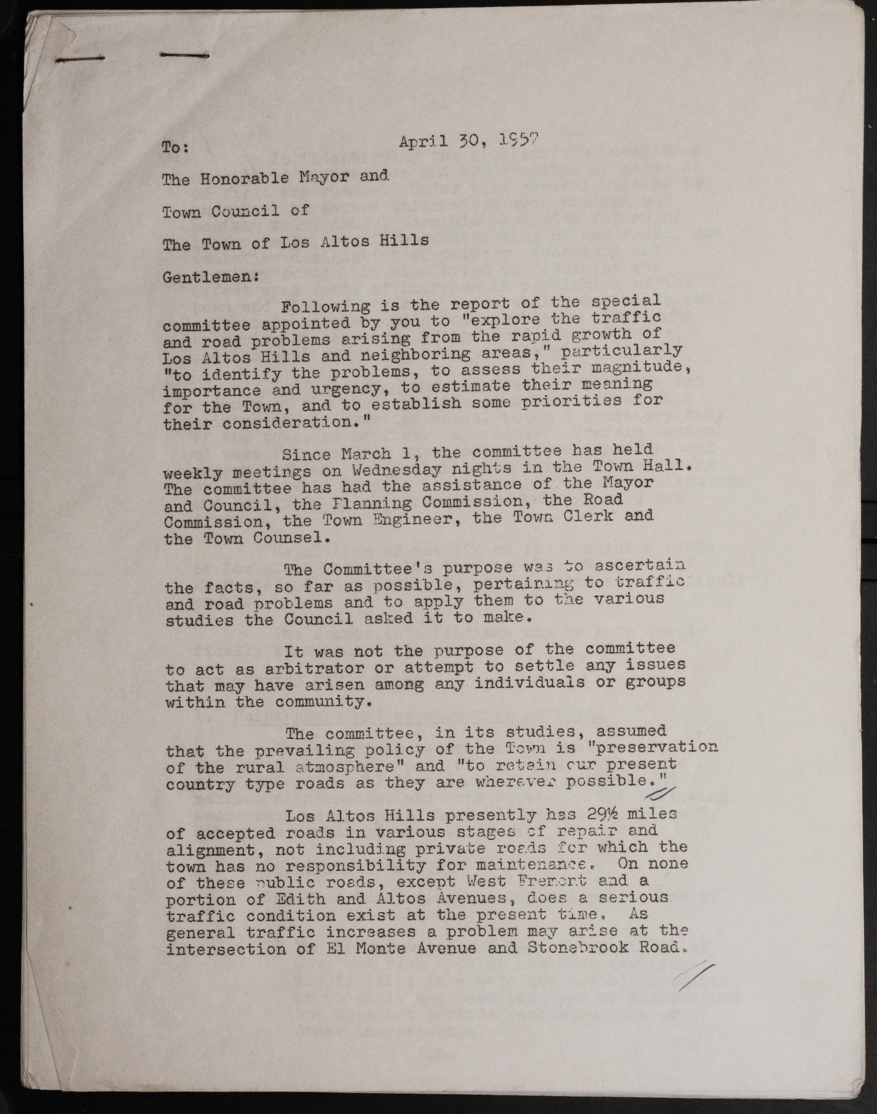Town of Los Altos Hills authorizing transfer of historic papers to Los Altos