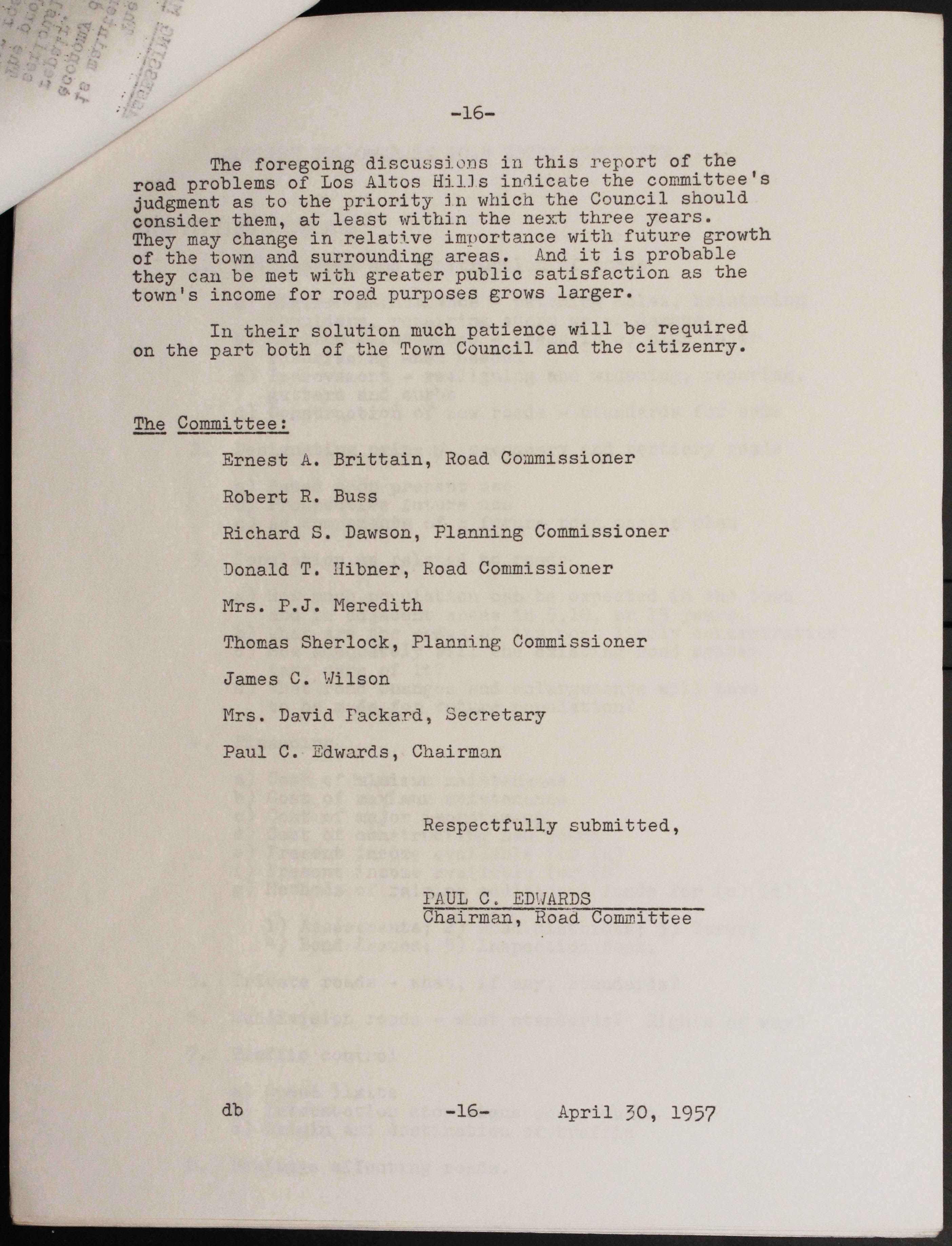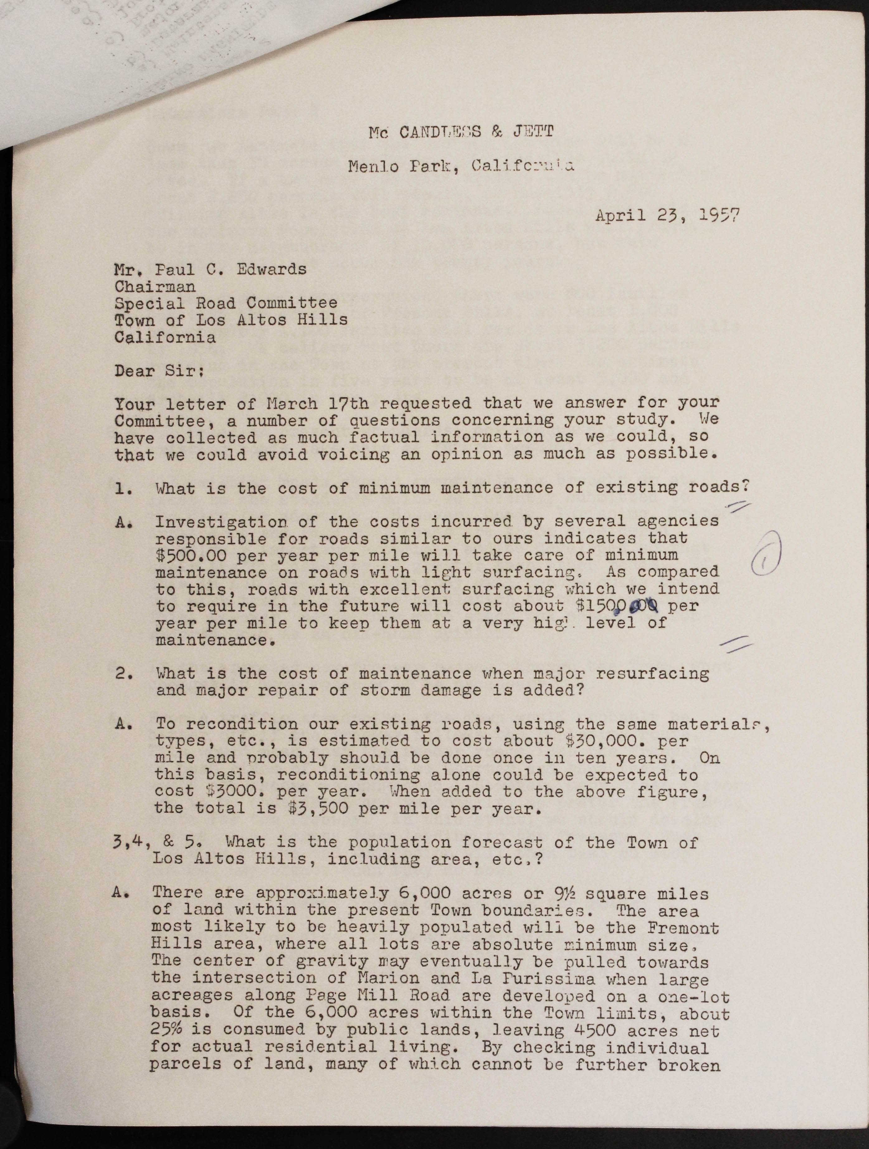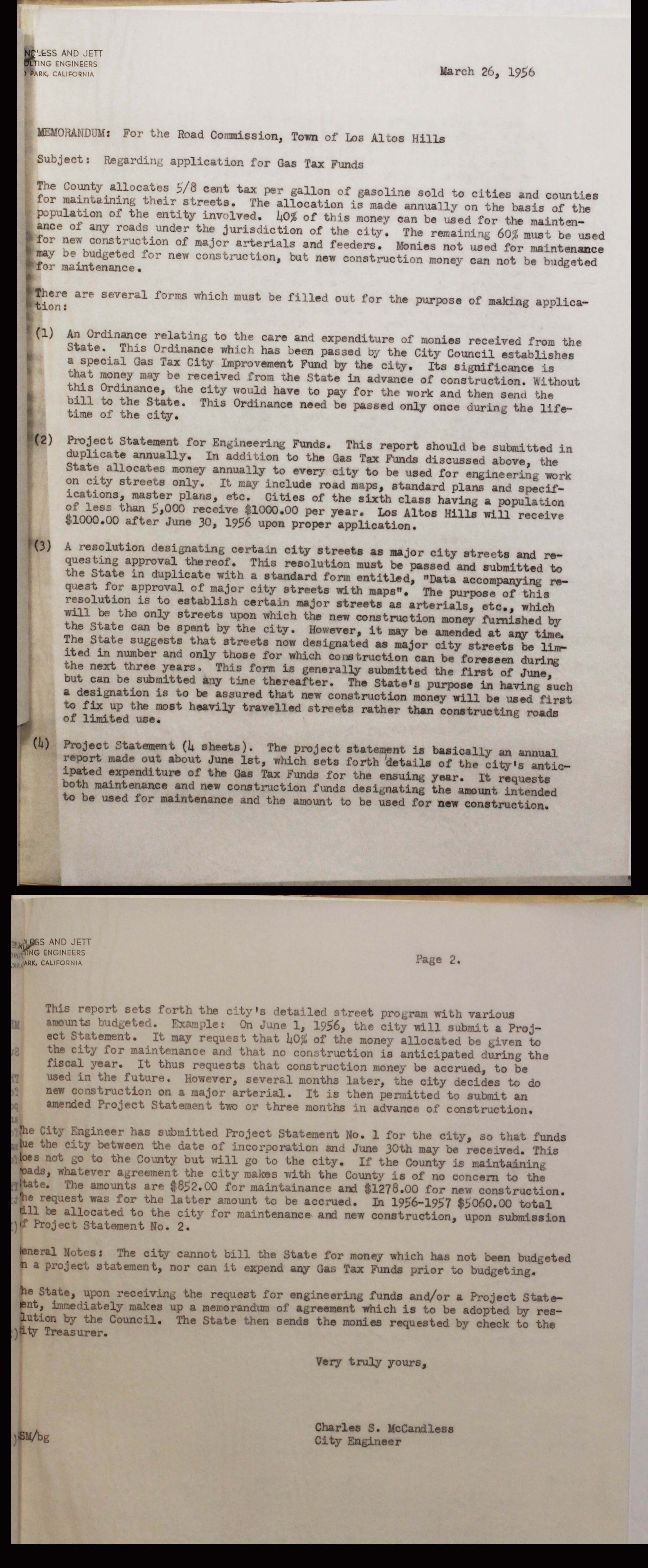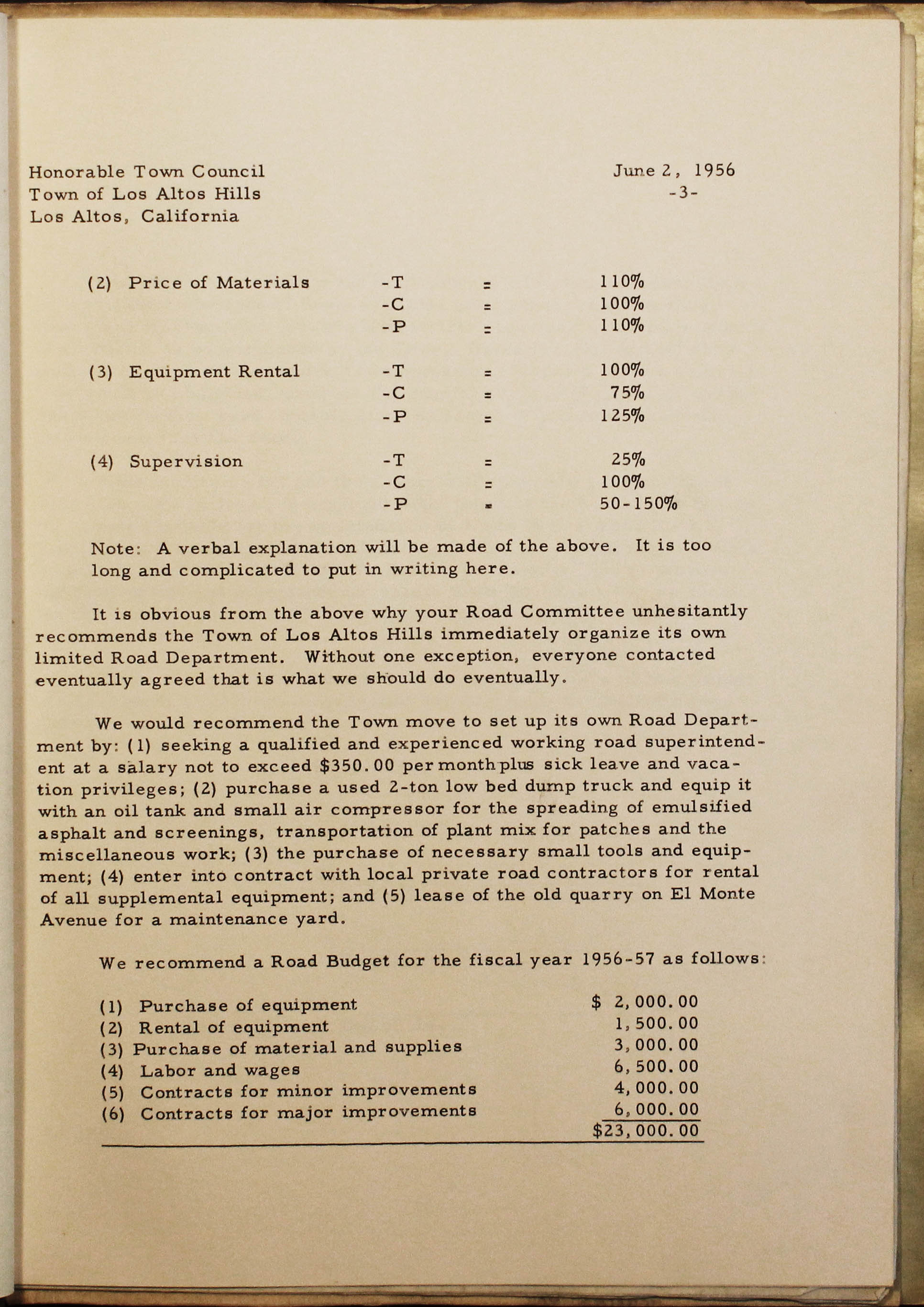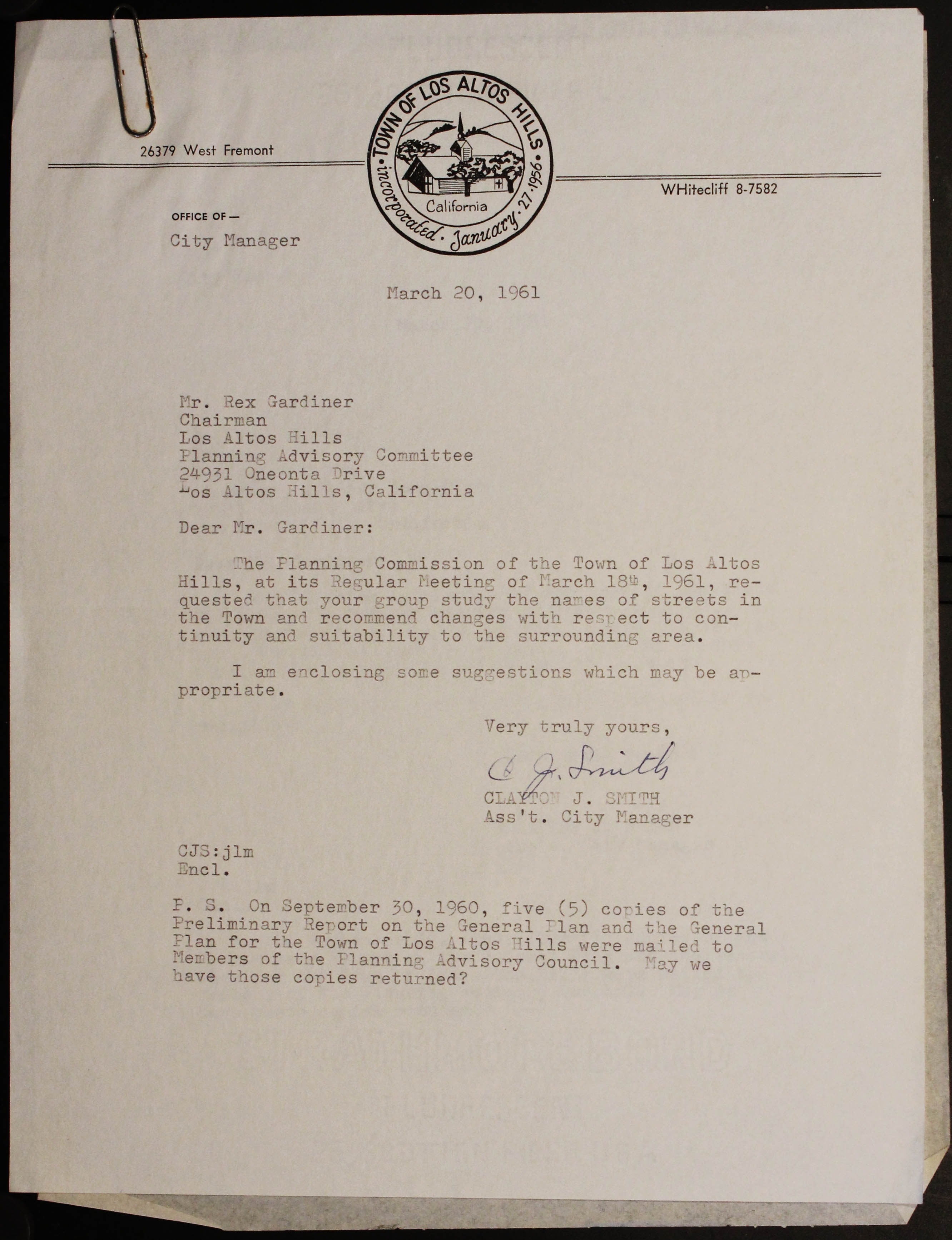 Town of Los Altos Hills authorizing transfer of historic papers to Los Altos