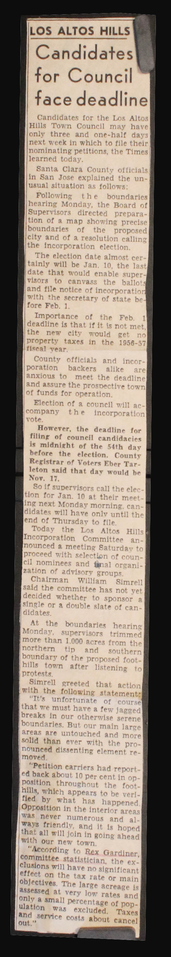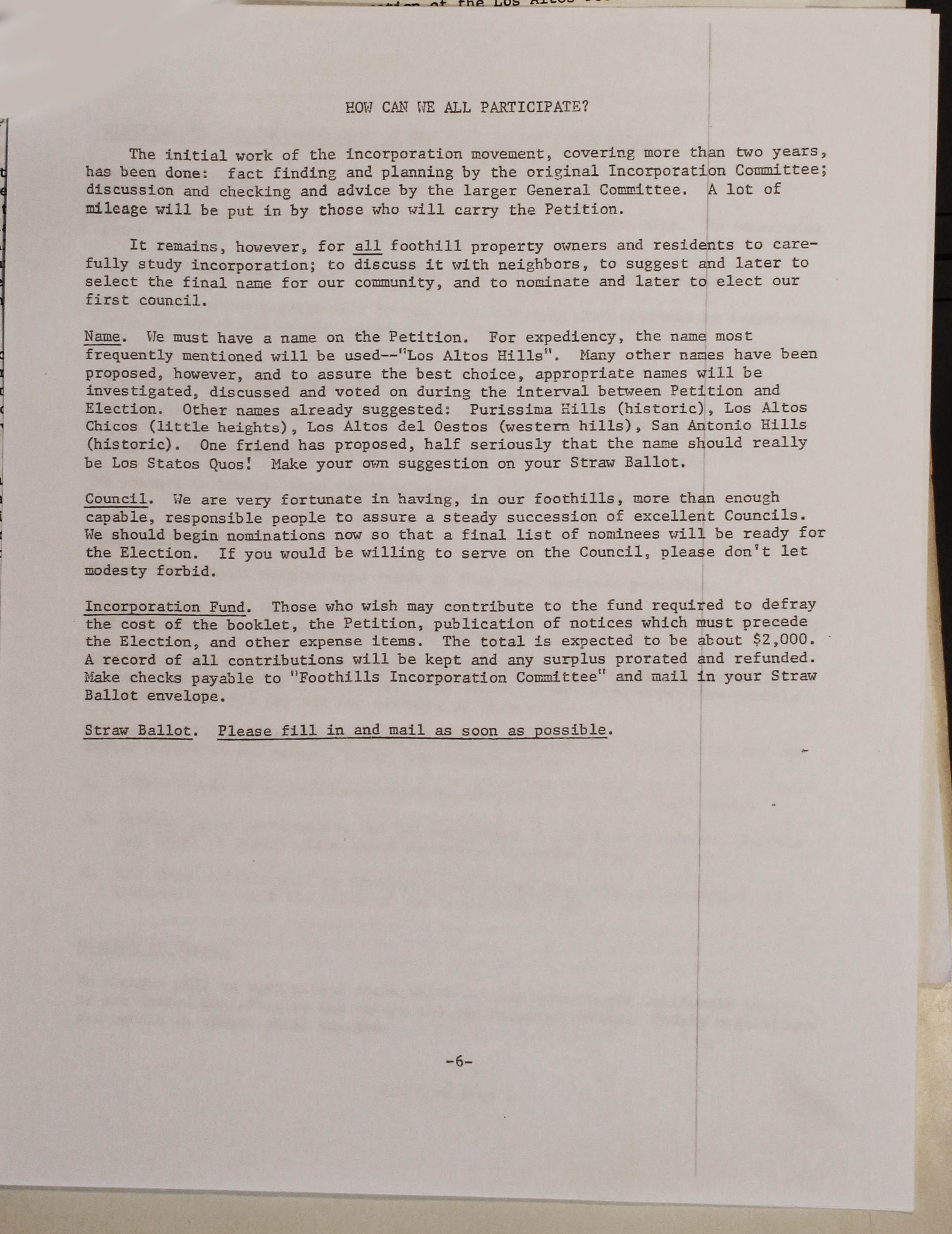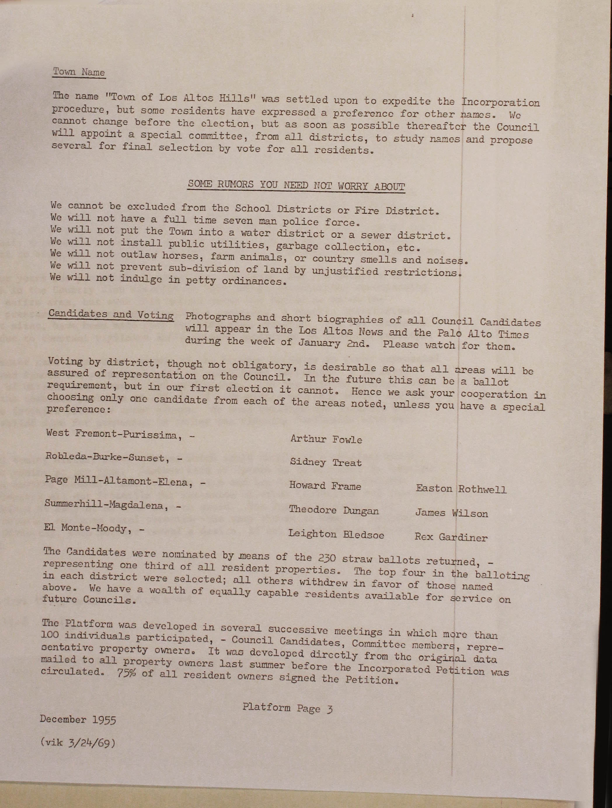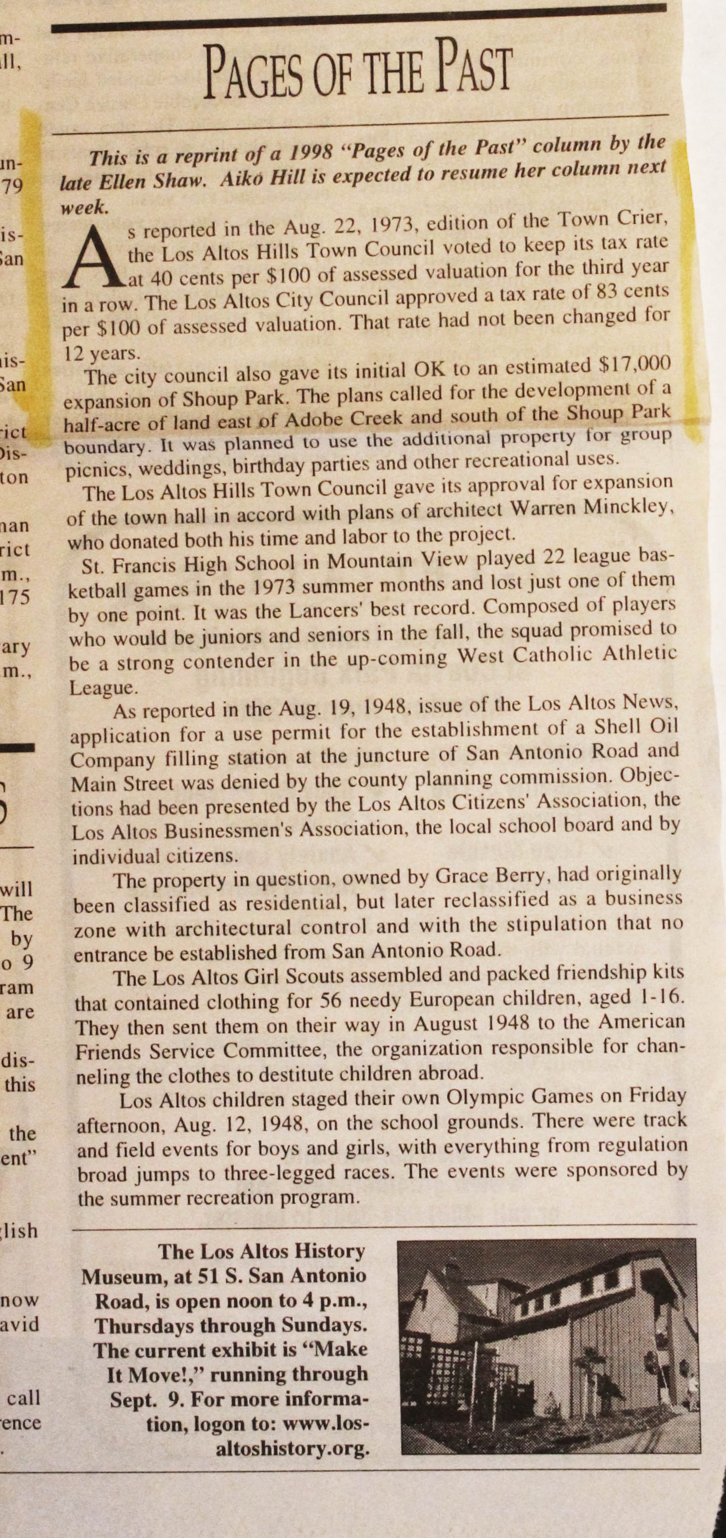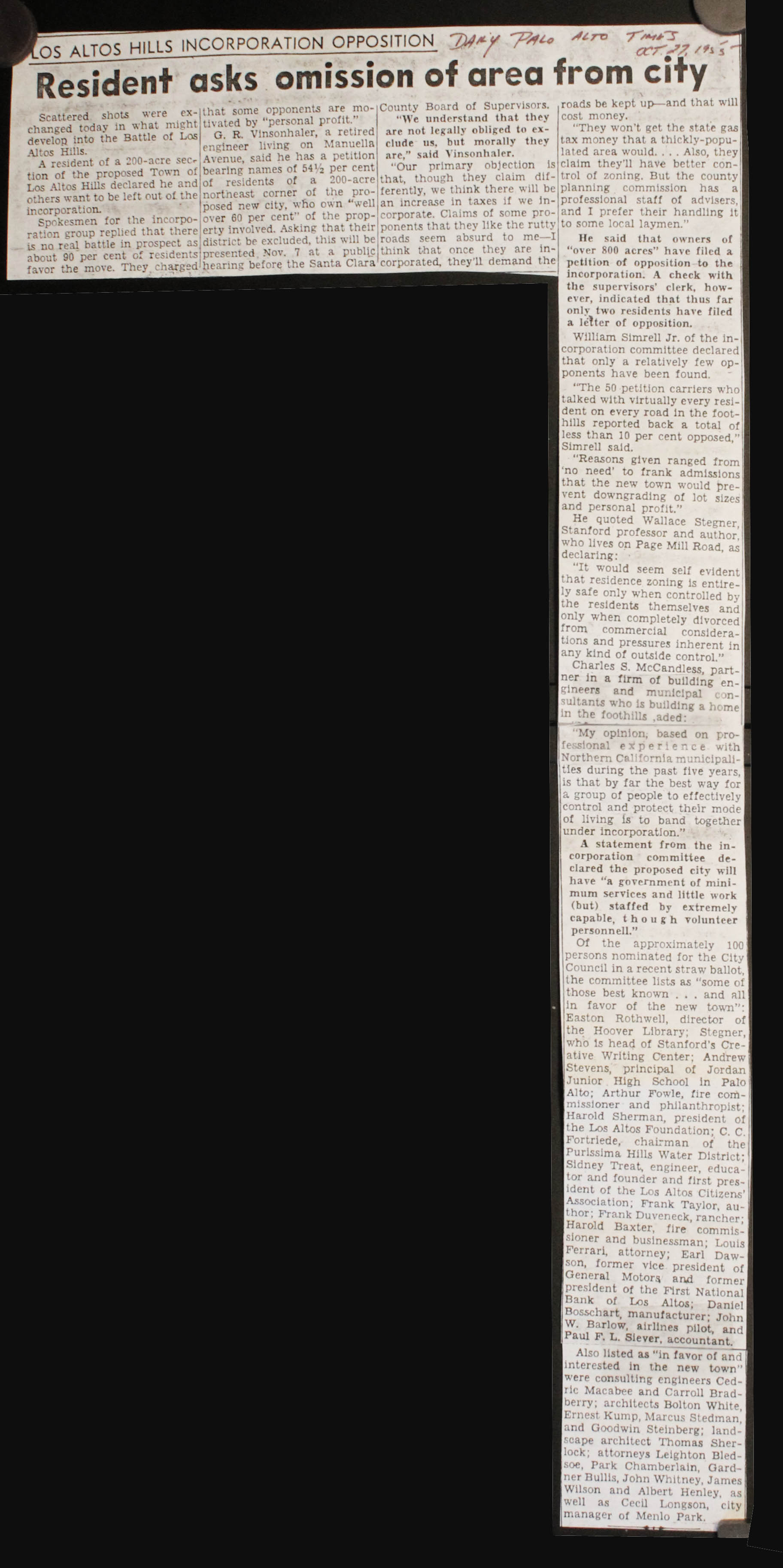 Town Crier about Co-founder of Town of Los Altos Hills |