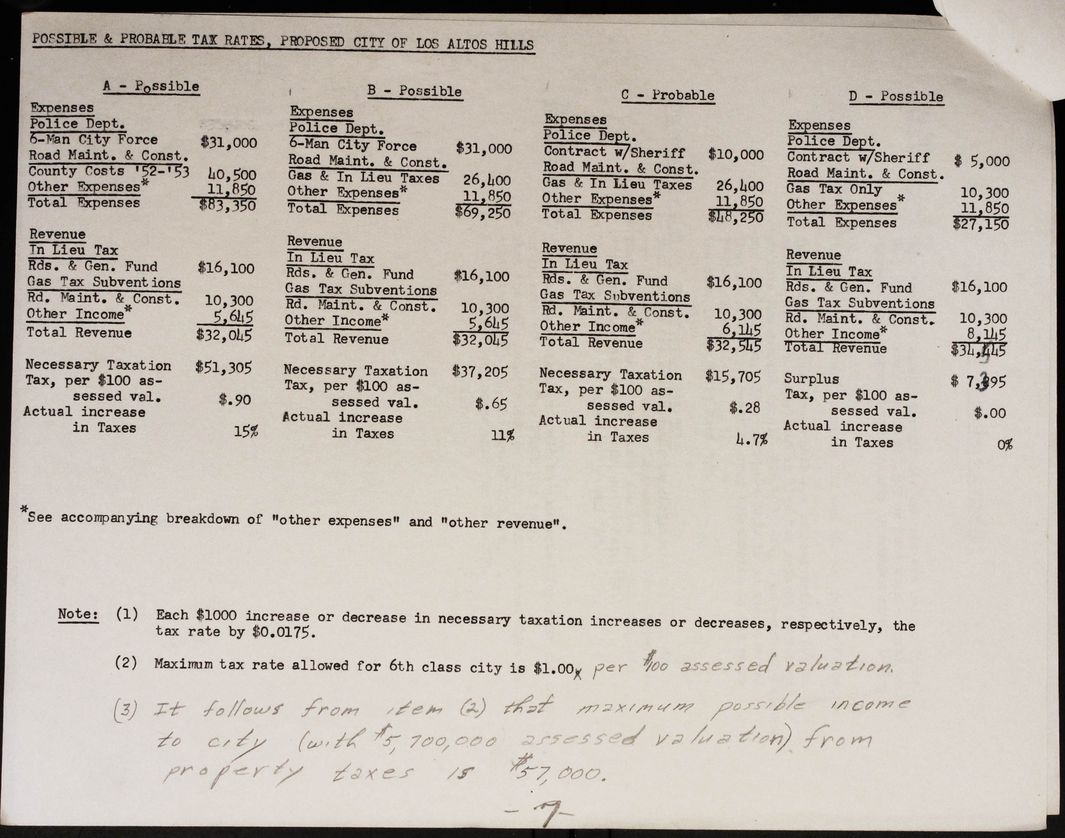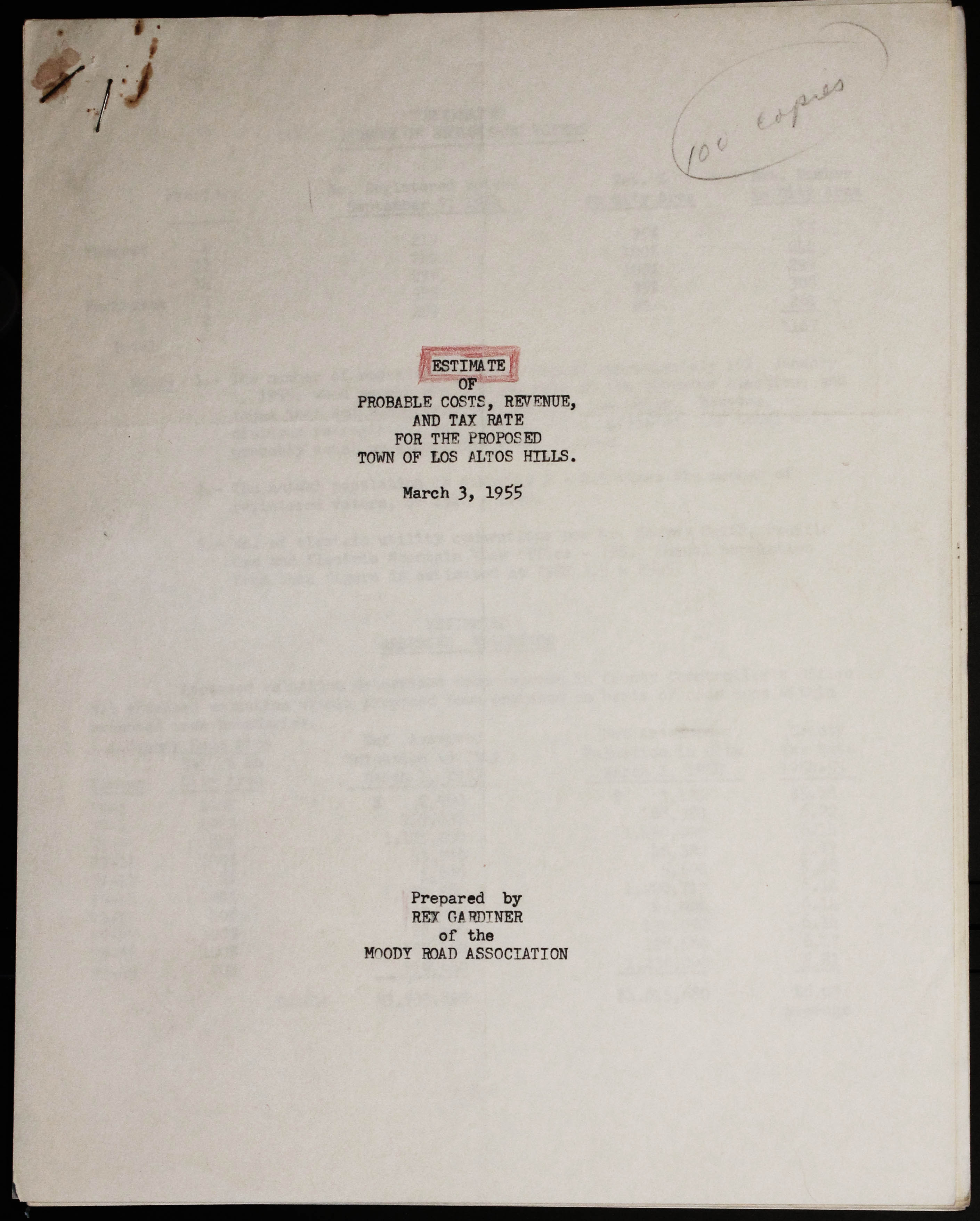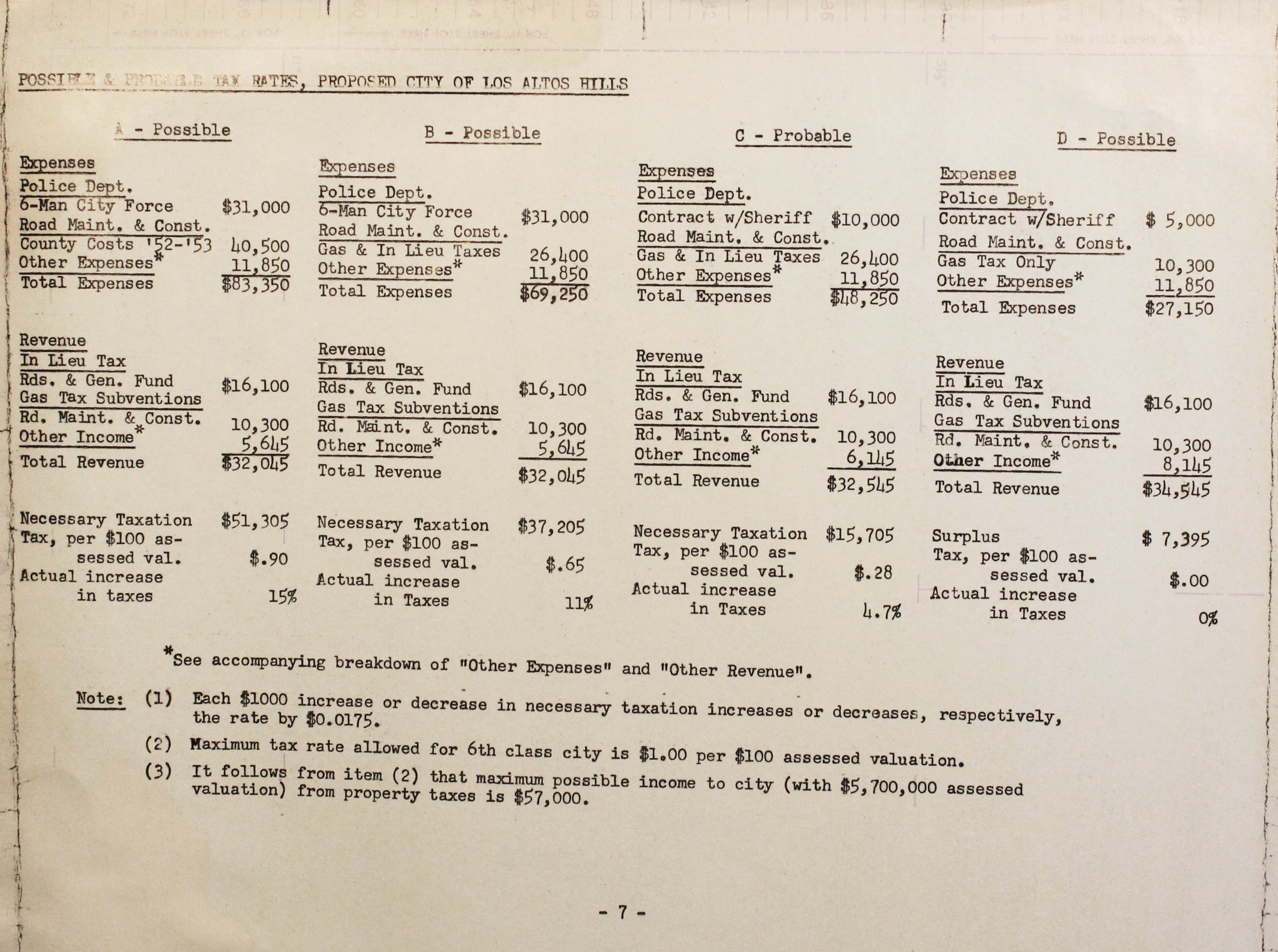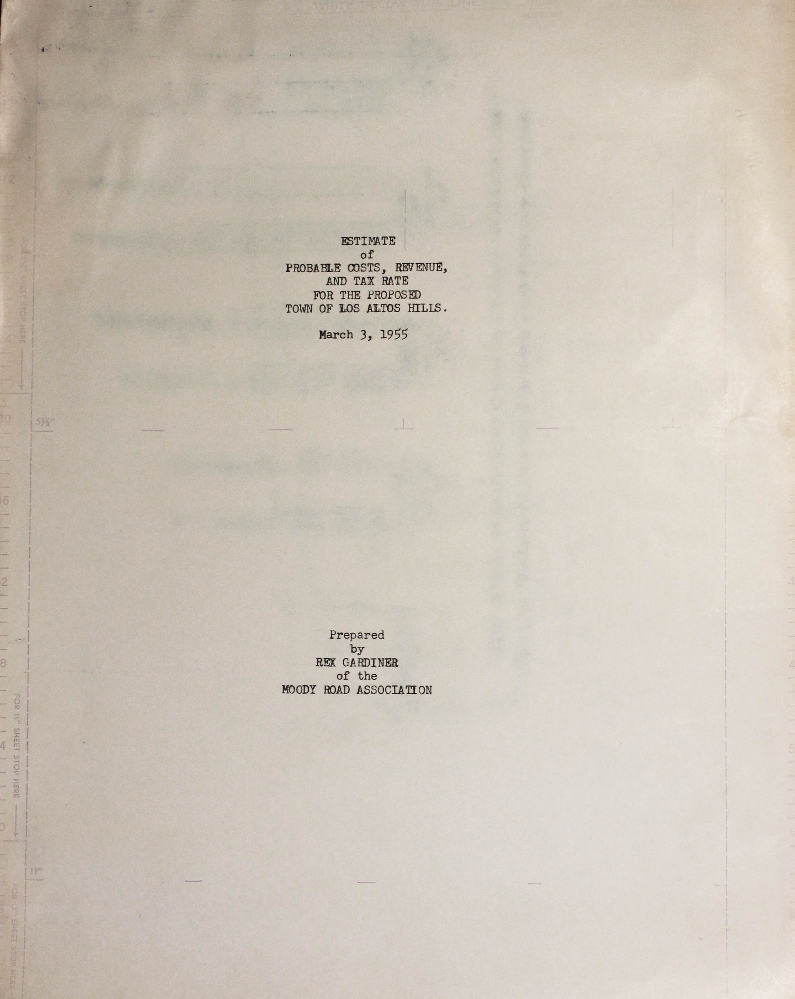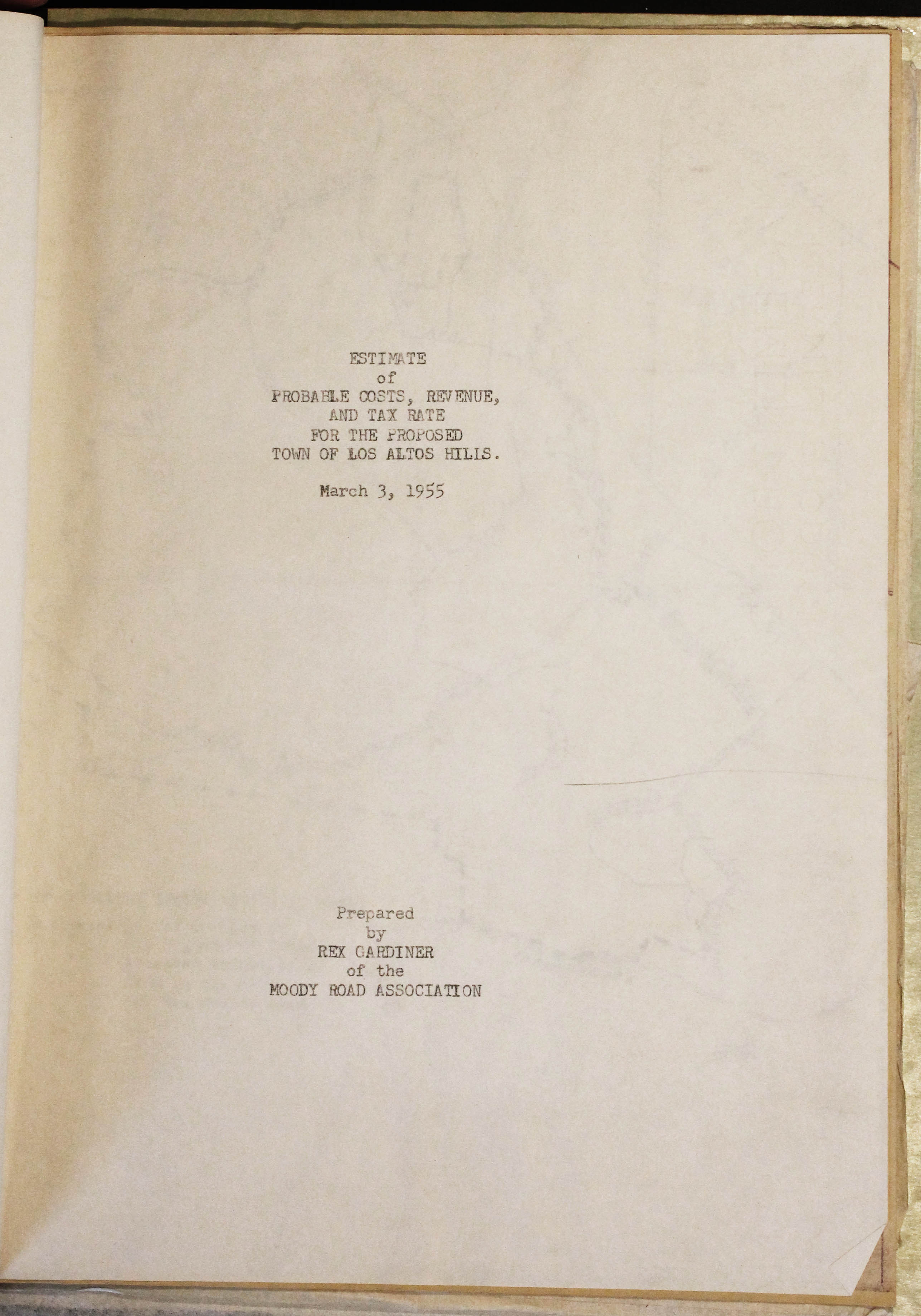 Revenue, and Tax Rate for the Proposed Town of Los Altos Hills - Cover Sheet |