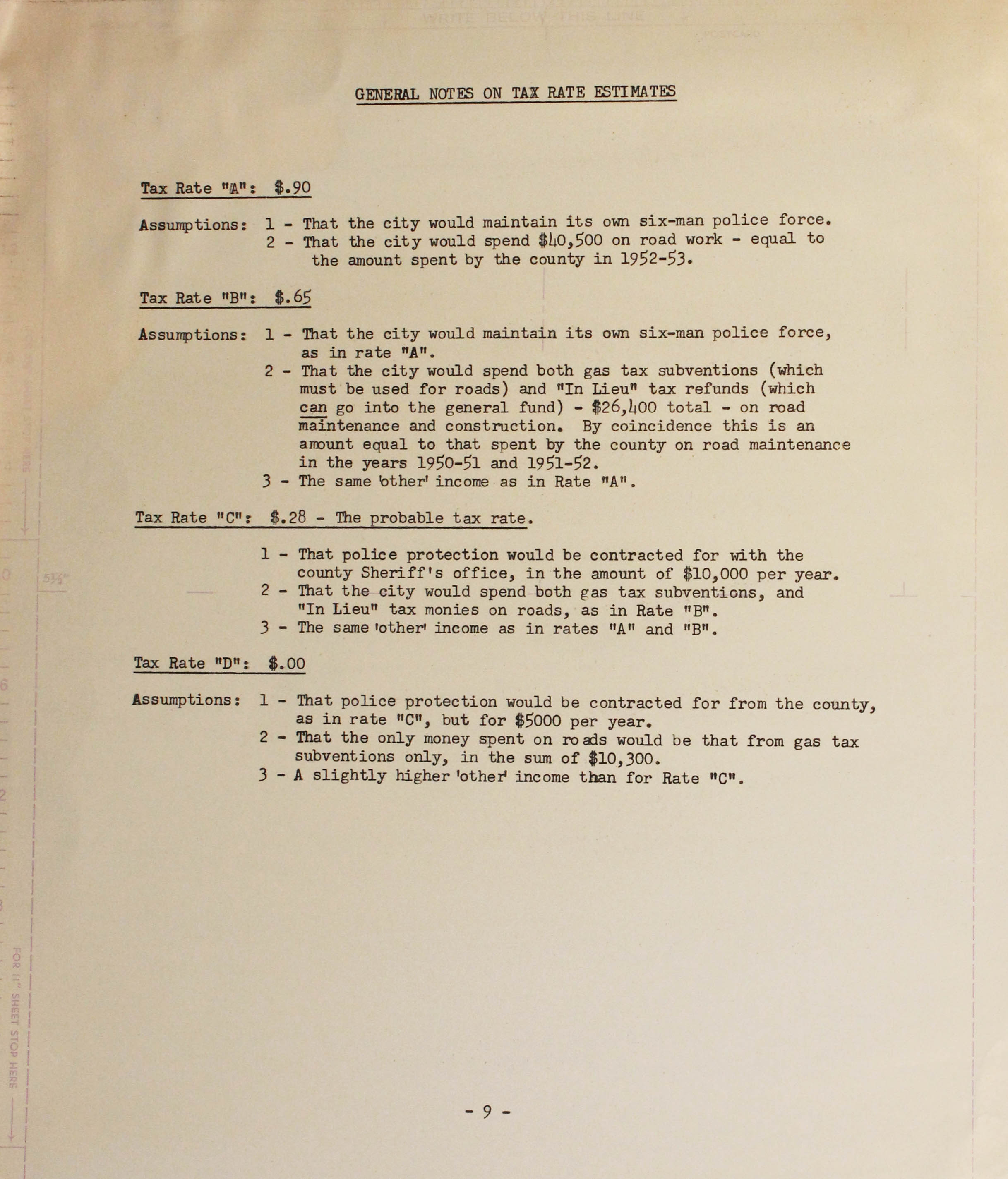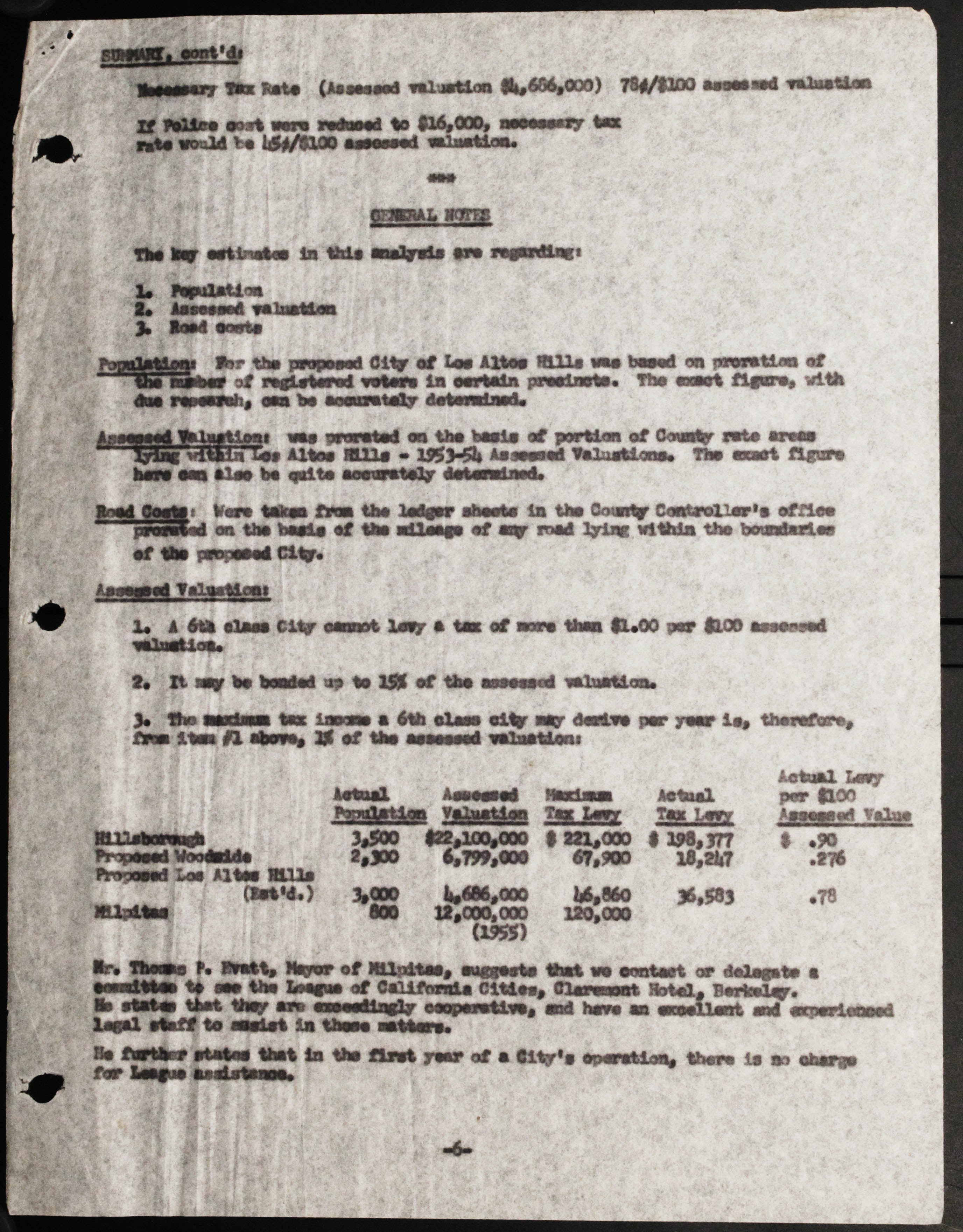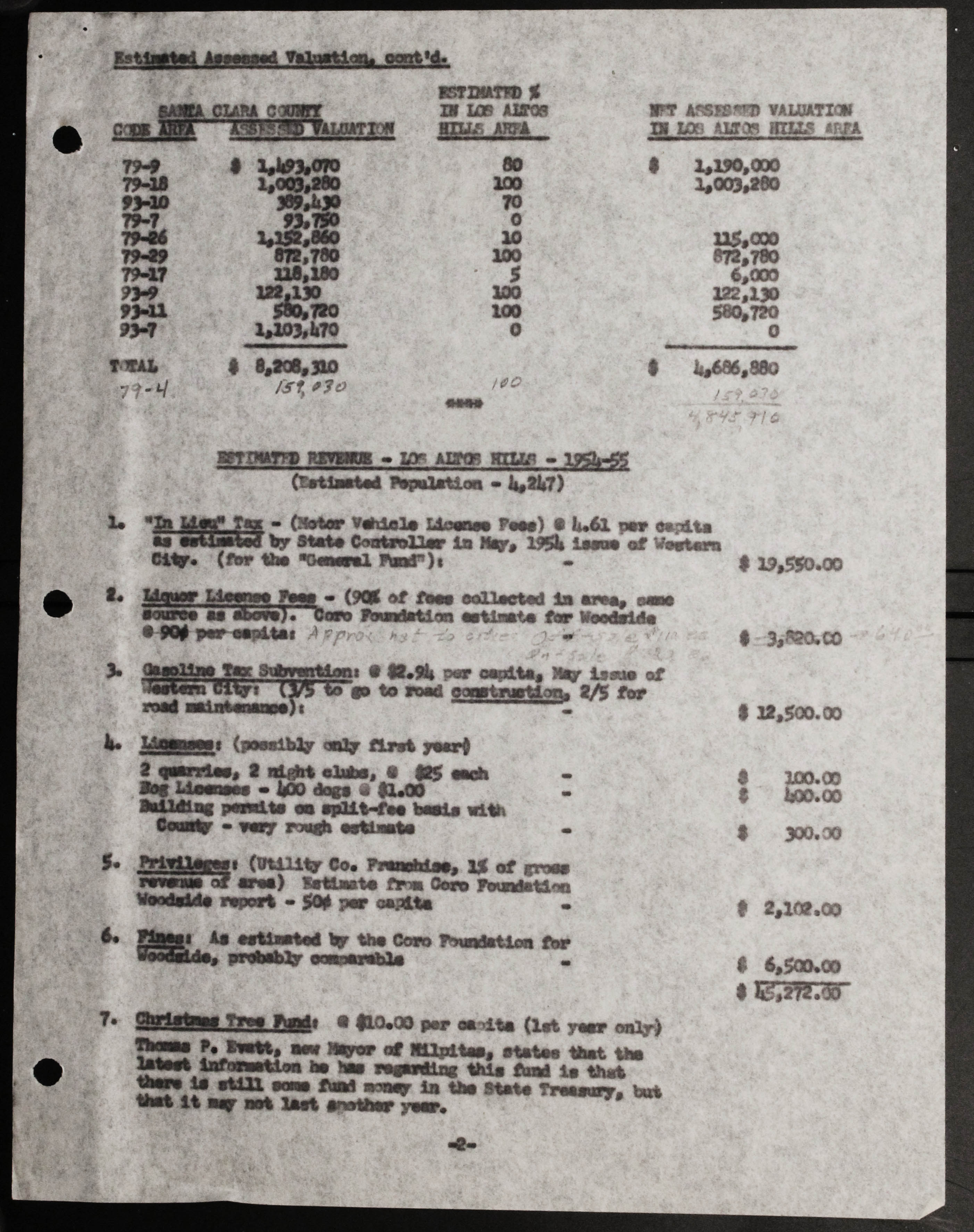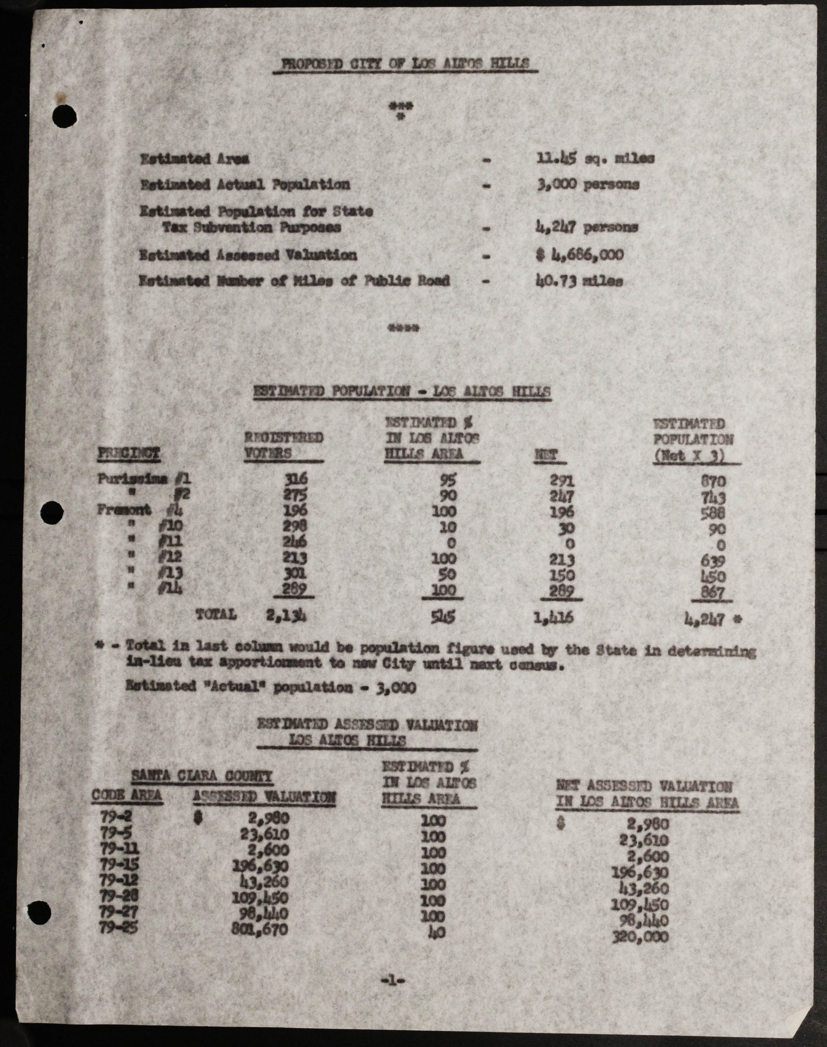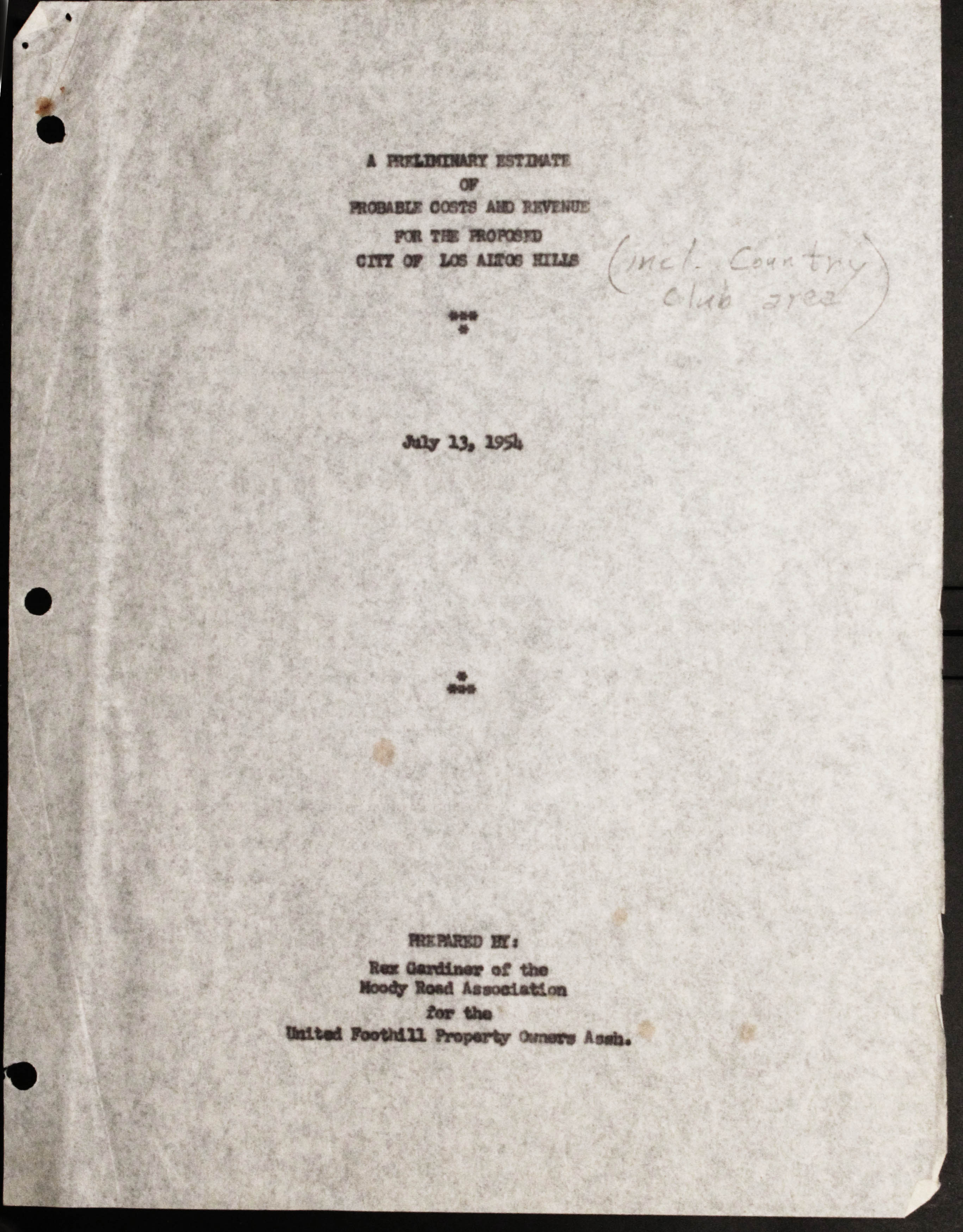 Revenue, and Tax Rate for the Proposed Town of Los Altos Hills - Cover Sheet |