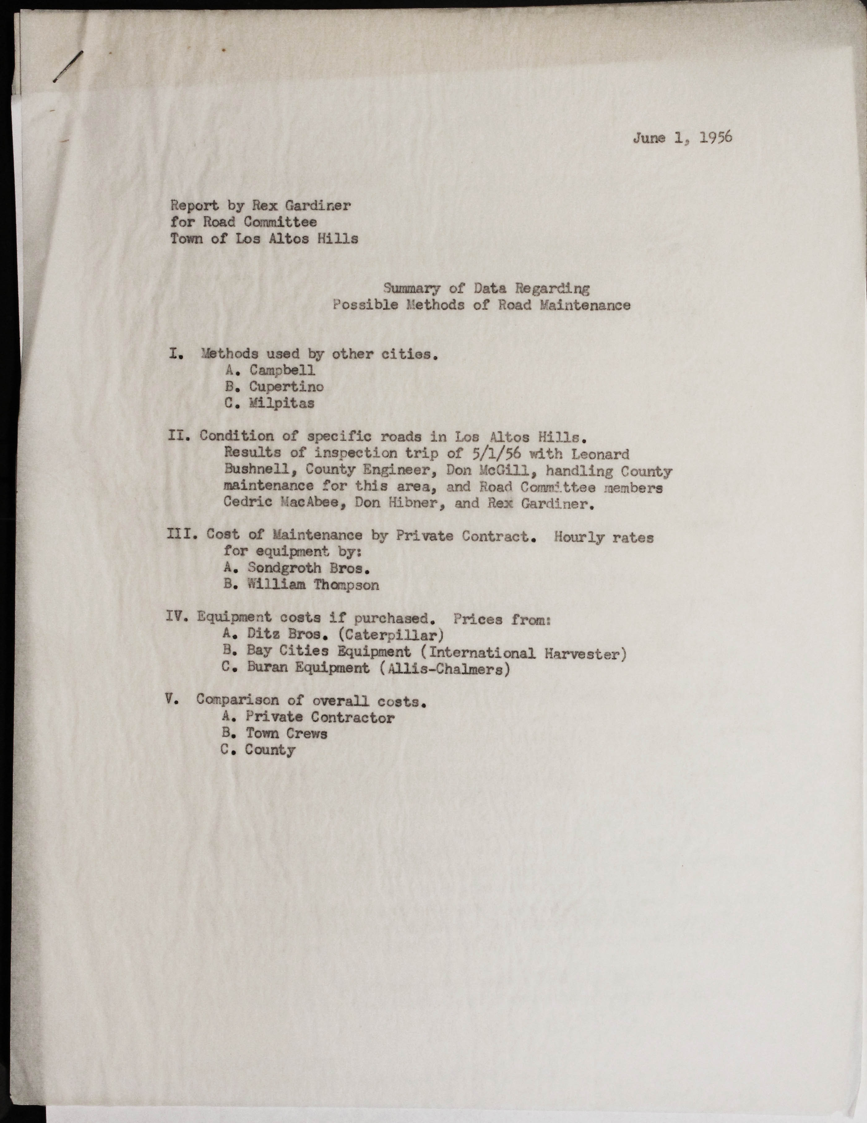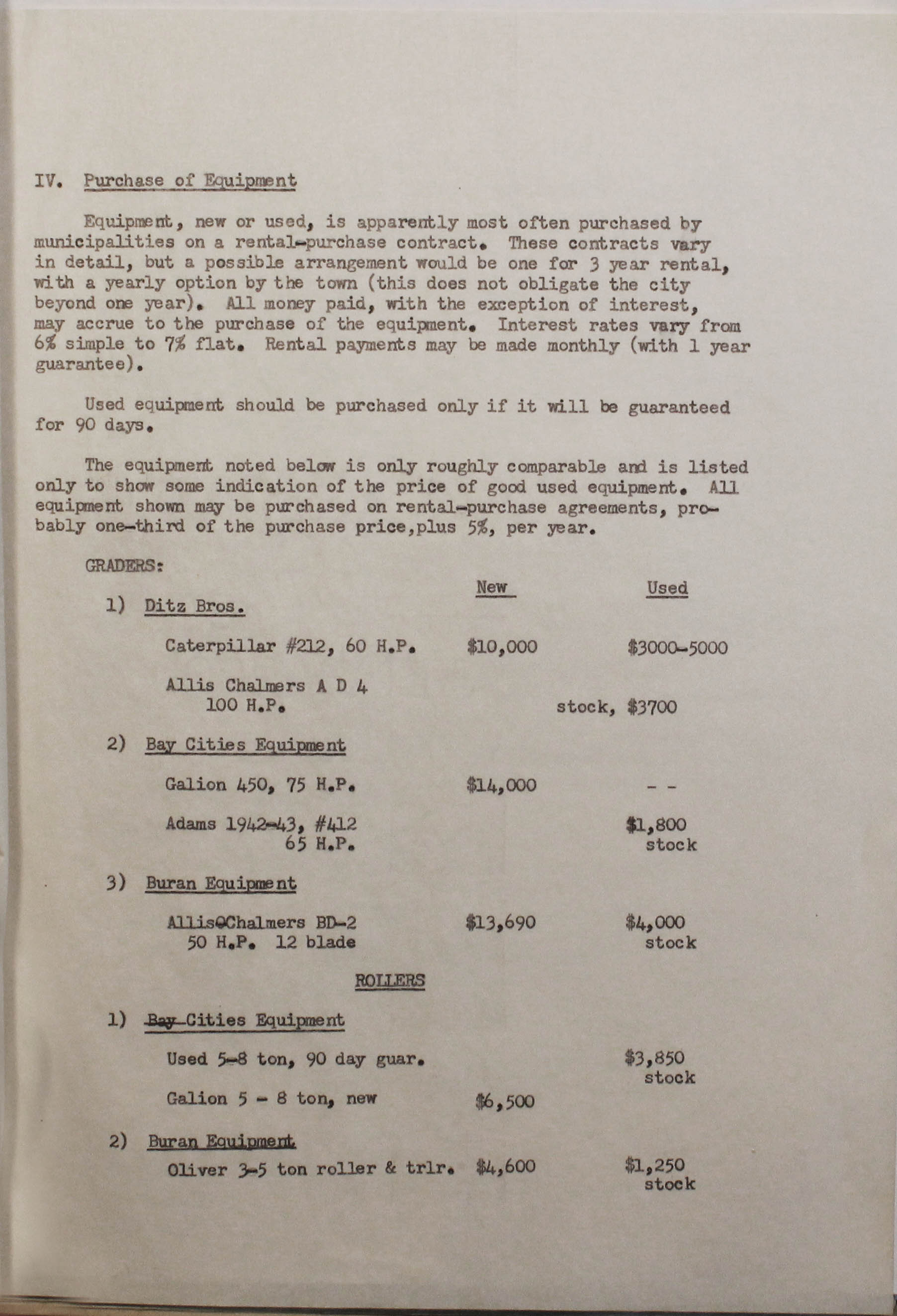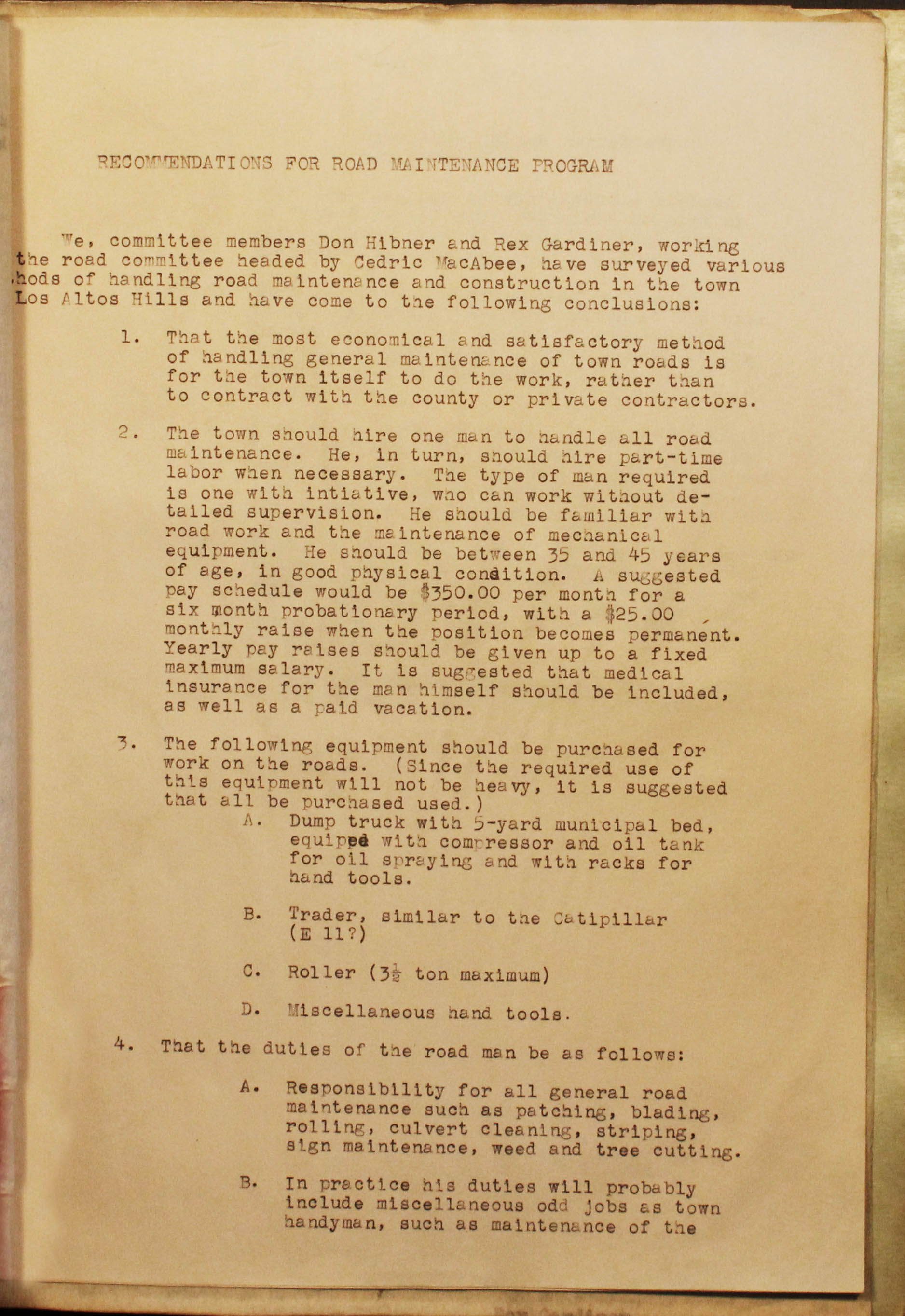 Gardiner on Recommendations for Road Maintenance Program Page 1 - Equipment