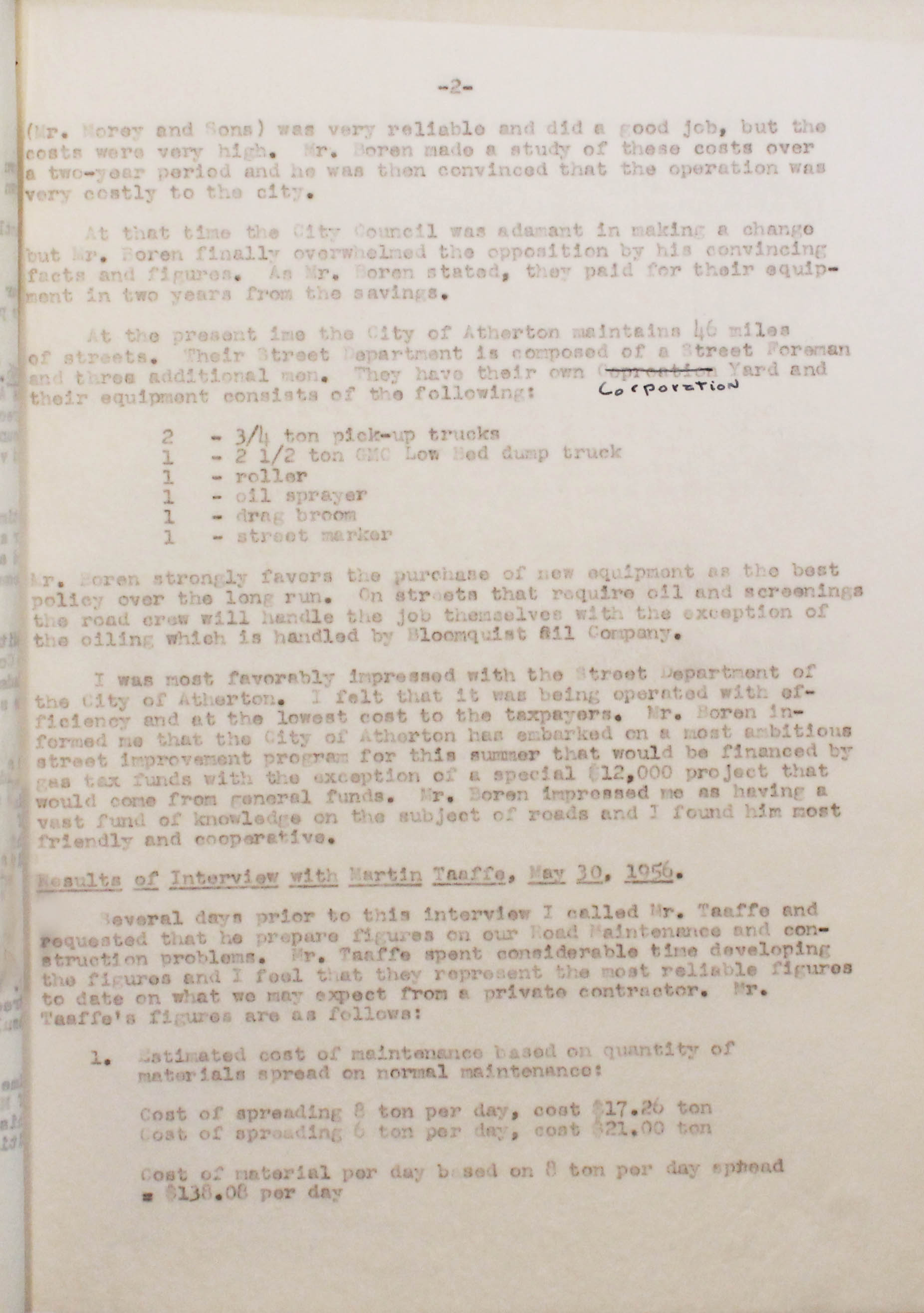 interviews with other towns about Road Maintenance matters - Page 1 |