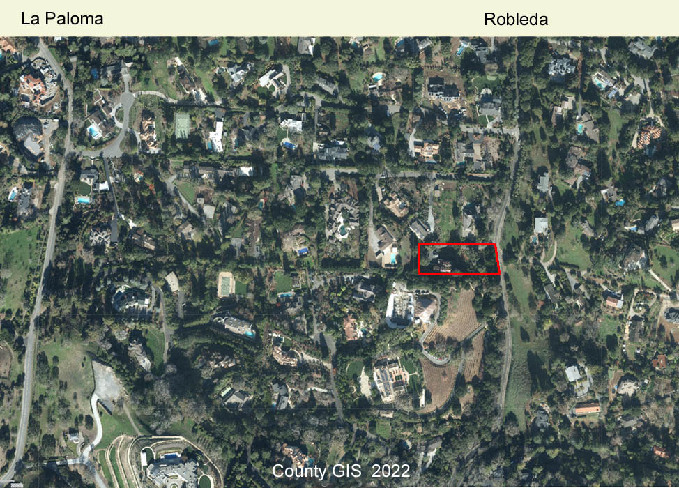 (This image is a detail that was cropped out of a larger aerial photograph. To see see this area within the wider context of the Town of Los Altos Hills,
