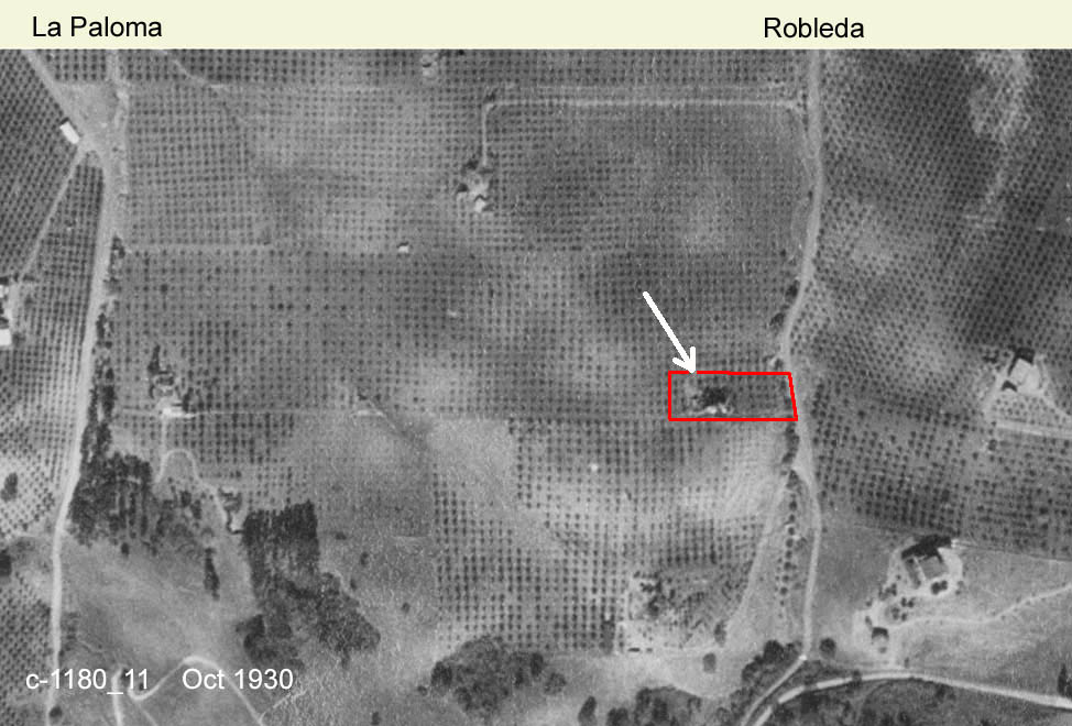 Flight C-1180, Frame 9. (Aerial photo taken from red dot near San Antonio Rd and Almond Ave/Merritt Rd) To reach this page, use