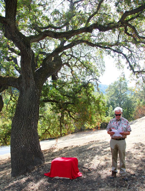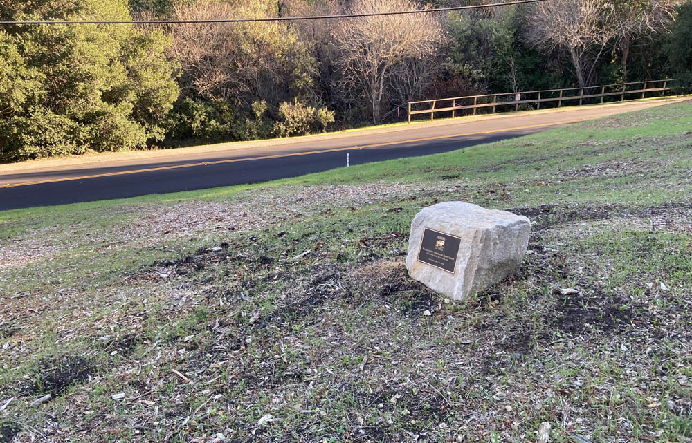 But this dedication of open space, signified by this plaque, is not here as a memorial. Rather it is here to remember his significance to the history and founding of Los Altos Hills.