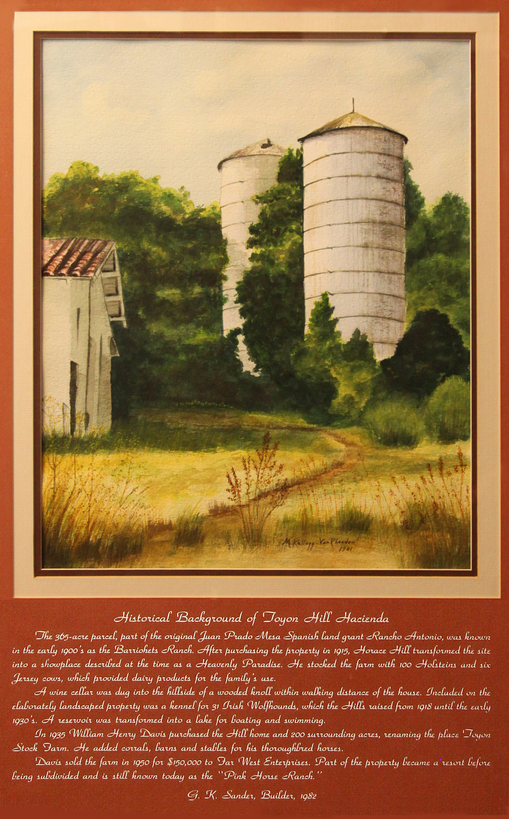 Horace Hill - Toyon FarmPainting of Silo and photo of door to hillside Wine Cellar Painting of the Silos by Marjorie Kellogg Photo of the Barn and Silos Photo of the doors into the hillside wine cellar, off La Loma Rd,1915