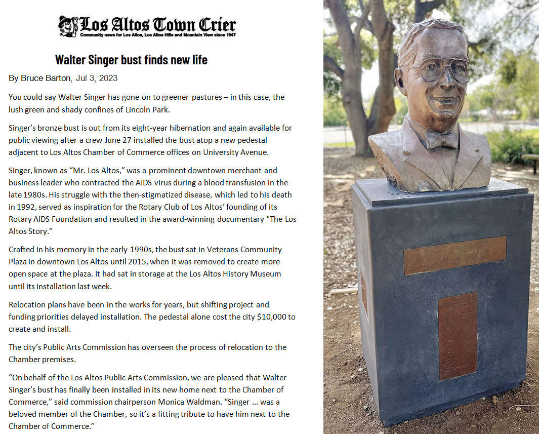 Bust to be set up at Los Altos Chamber of Commerce (was on Veteran’s Plaza)