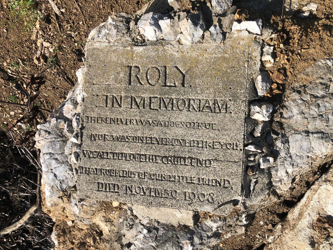 As the land where "Little Gables" once stood was being prepared for new construction in 2021, a stele was unearthed that commemorated a much loved dog named Roly.