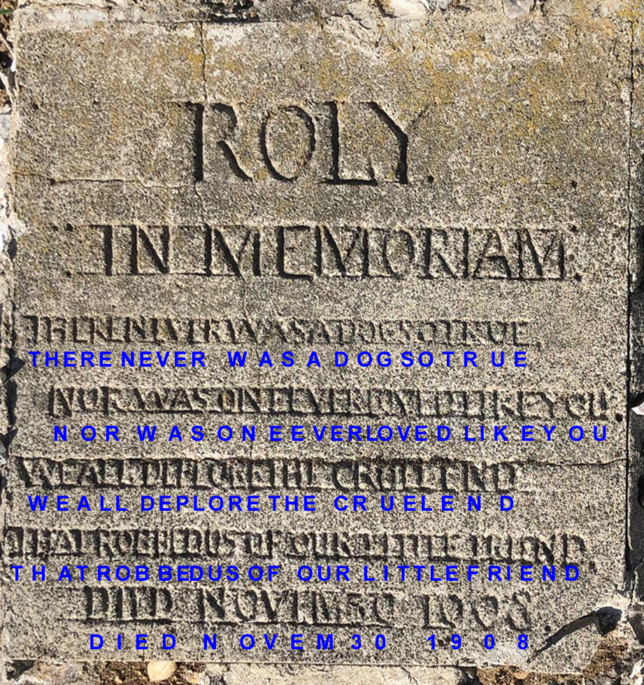 So this stele comemorates Roly, a much loved dog - whose memory and eulogy live on some 130 years later.