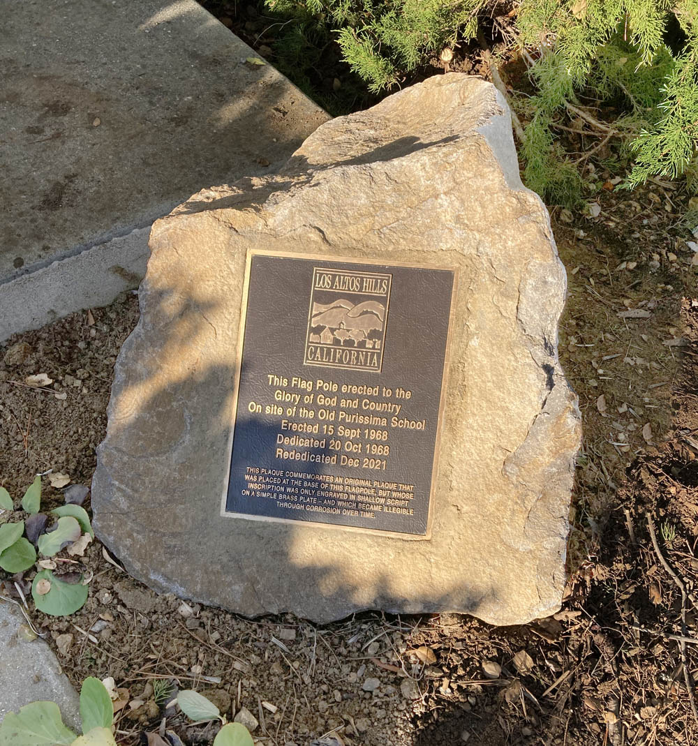 My name is George Tyson, and I am (as of very recently) Mayor of Los Altos Hills, and as such it is my honor to be invited to the re-dedication of a plaque on this spot, a plaque that commemorates the role this place had in the founding of our town For it was right here, that a few local residents met to discuss the idea of forming a town back in the early 1950’s – so nearly 75 years ago or so. At that time, a water tower stood where this flagpole stands today, and on that same platform, was mounted one of those agricultural windmills used for pumping water. As far as we can tell from an old photo, the small wooden building right next to this flagpole was the school’s cloakroom and the one room schoolhouse became what is now the Chapel. According to Florence Fava’s book "Los Altos Hills – A Colorful Story", the building’s history dates back to April 29, 1901, when the Purissima School District voted to establish a school in the Hills. While a permanent location was sought, the first classes commenced on September 10, 1901, and were held in Captain Mex’s Fruit Shed until February of 1902, when it moved to its present site. The schoolhouse served not only as school but as a Church and Sunday School as well as a Public Library and a social center in the summers. After a half century of service, it was abandoned in 1953 and sold to Rita Duval for $11,445 who rented the former schoolhouse out for social events and meetings. As the local schoolhouse, it was the first focal point of what was to become our community. Not only because it was the school where local residents brought their kids to school, but because this room also functioned as an informal meeting place for local community members to get together. It was in this room – the default focal point of the community – that half-a-dozen local residents met to consider forming their own town, so that they could have more of a say in how the town developed and would evolve over time. It took a year or two of hard work, but in early 1956 there was a vote on the ballot to incorporate the Town of Los Altos Hills. That vote passed by a handsome margin and the former schoolhouse was rented to the Town for its first Town Hall. In the last half of 1966. The Episcopal Layman’s group purchased the two acres and buildings, for $24,000, and and the school house became the “Chapel in the Hills”. In the fall 1968, the flagpole was erected, and a brass plaque was placed at the foot of it. The plaque, while it still exists, became unreadable over time. The simple engraved brass plate became corroded, and the shallow inscription faded from sight. So it is fitting, and with great pleasure, – on behalf of the Town of Los Altos Hills - that we offer this newer plaque to the church - and to rededicate the spot where this flagpole stands – on a symbolic rock marking the spot of the original haven where the heart of our community was formed, - and which over the last many years – and to this day - houses, represents, and stands for - the values that we aspire to in our community. Thus, it is with great pleasure that we re-dedicate this spot both metaphorically and physically at the heart of our community, that I unveil this plaque. December 17, 2021 |