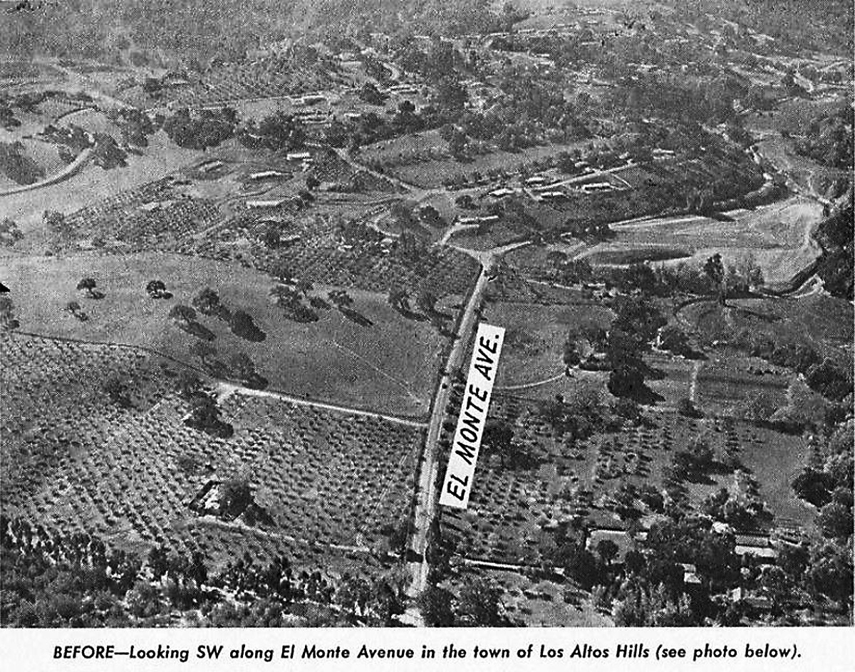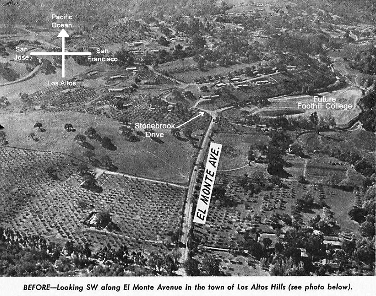Aerial photo of where El Monte turns into Moody Road - approx area where Foothill College is today |