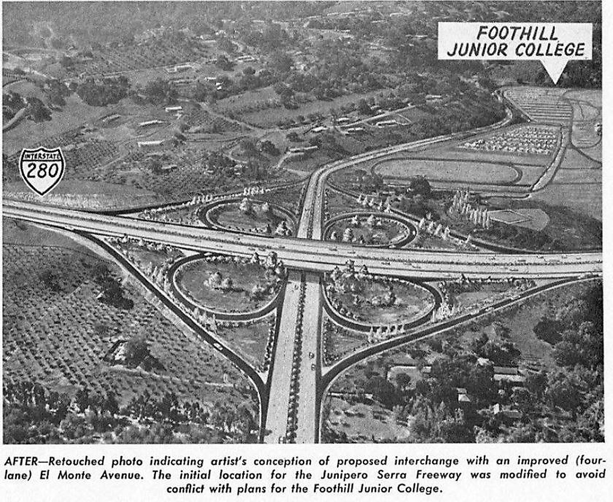 From Brochure about proposed new Hiway 280 - Artist's impression of proposed El Monte Intersection |