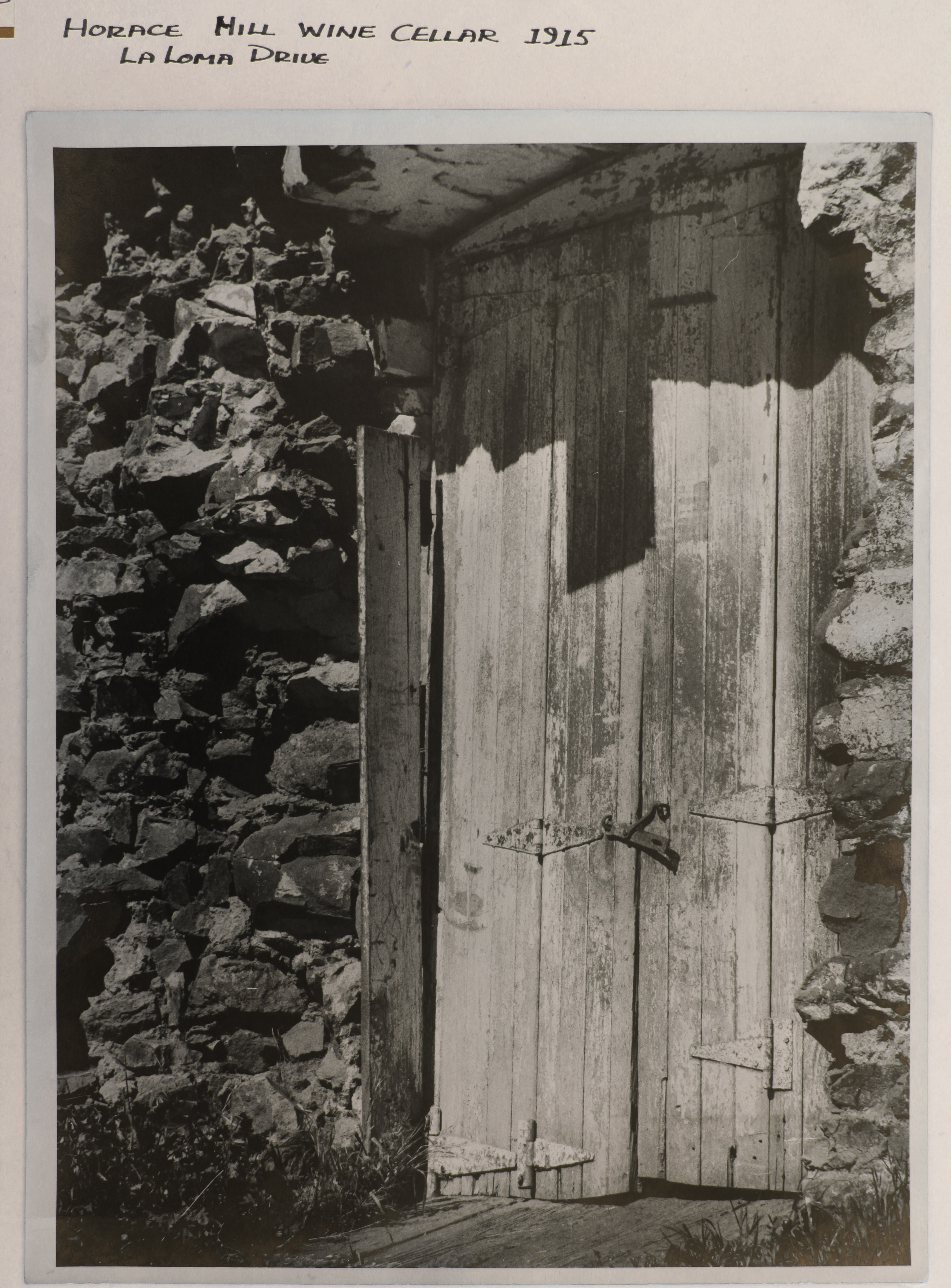 Photo of Doorway into Horace Hill Wine Cellar - dug into hillside, dated 1915 |