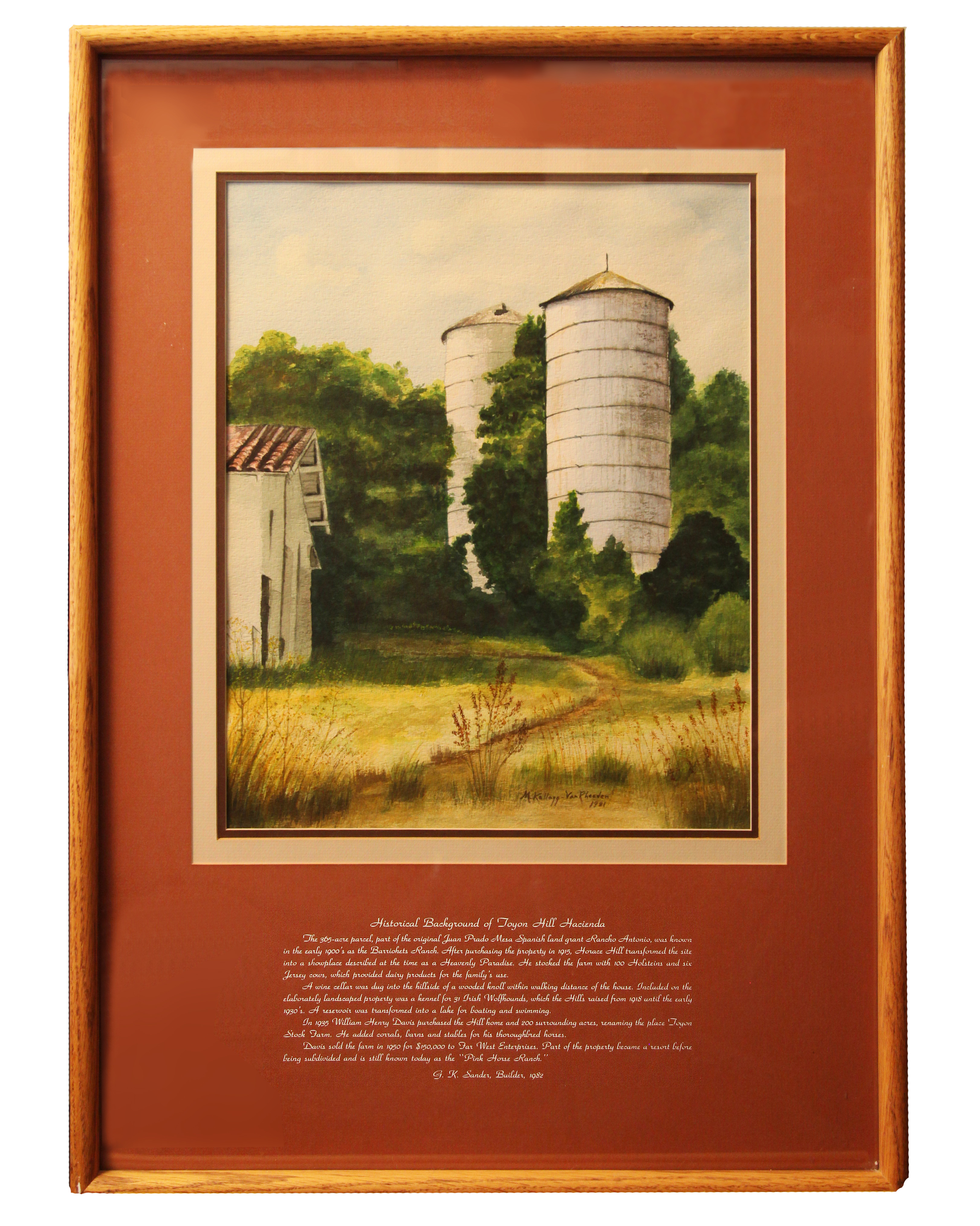 Detail of caption inscription of Horace Hill silos painting |