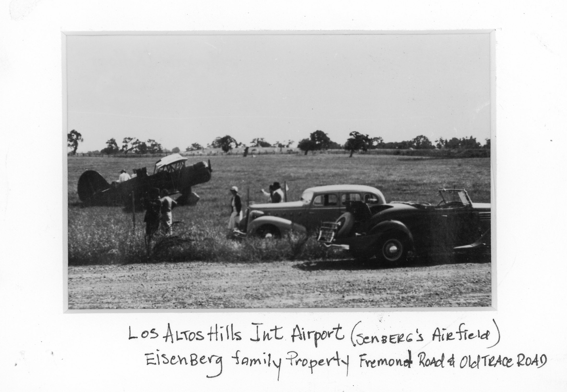 Photo of Biplane at "Senberg's Airfield, Eisenberg Property, corner of Fremont and Old Trace Road" |