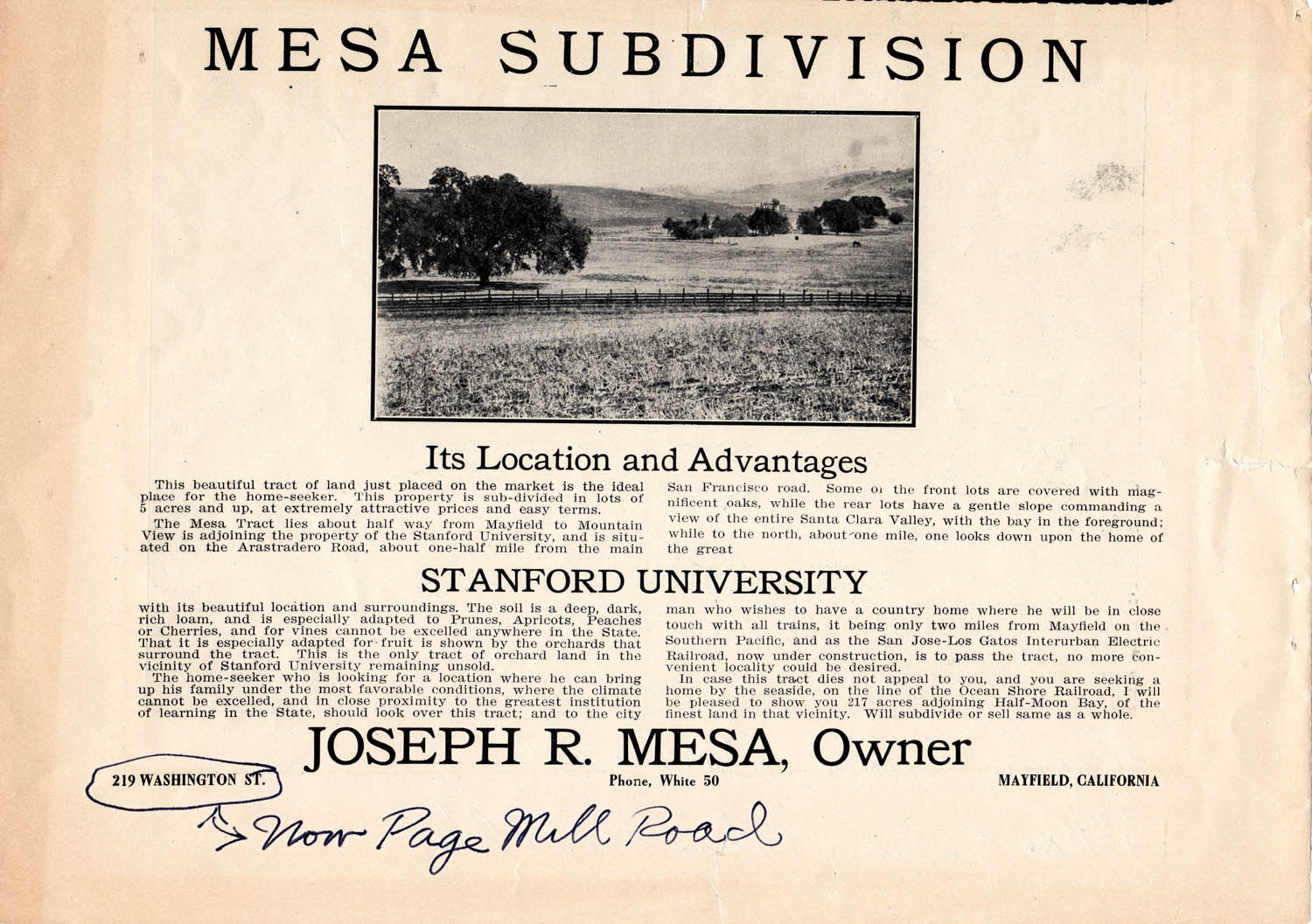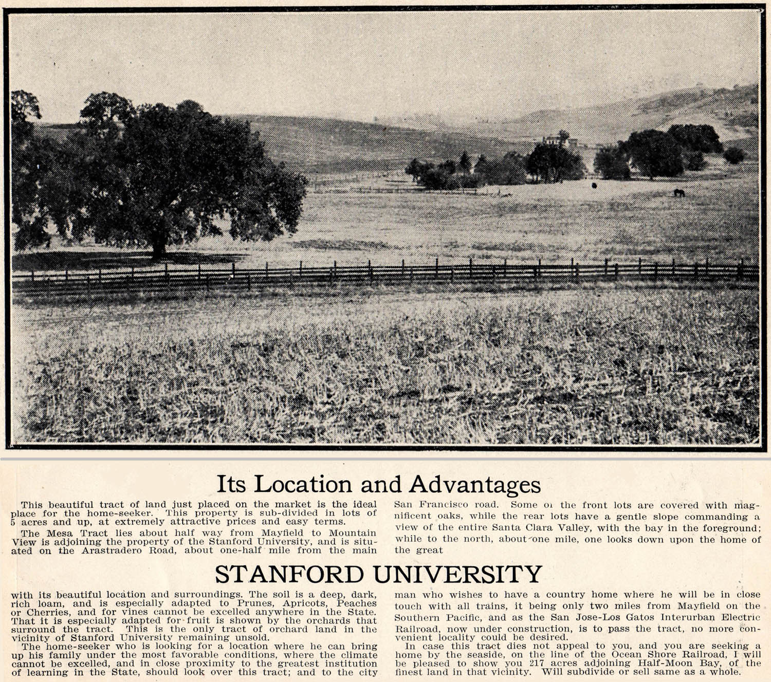 Avenue up to where it meets Arastradero. An advertisement offering lots in this tract for sale may be seen here. |