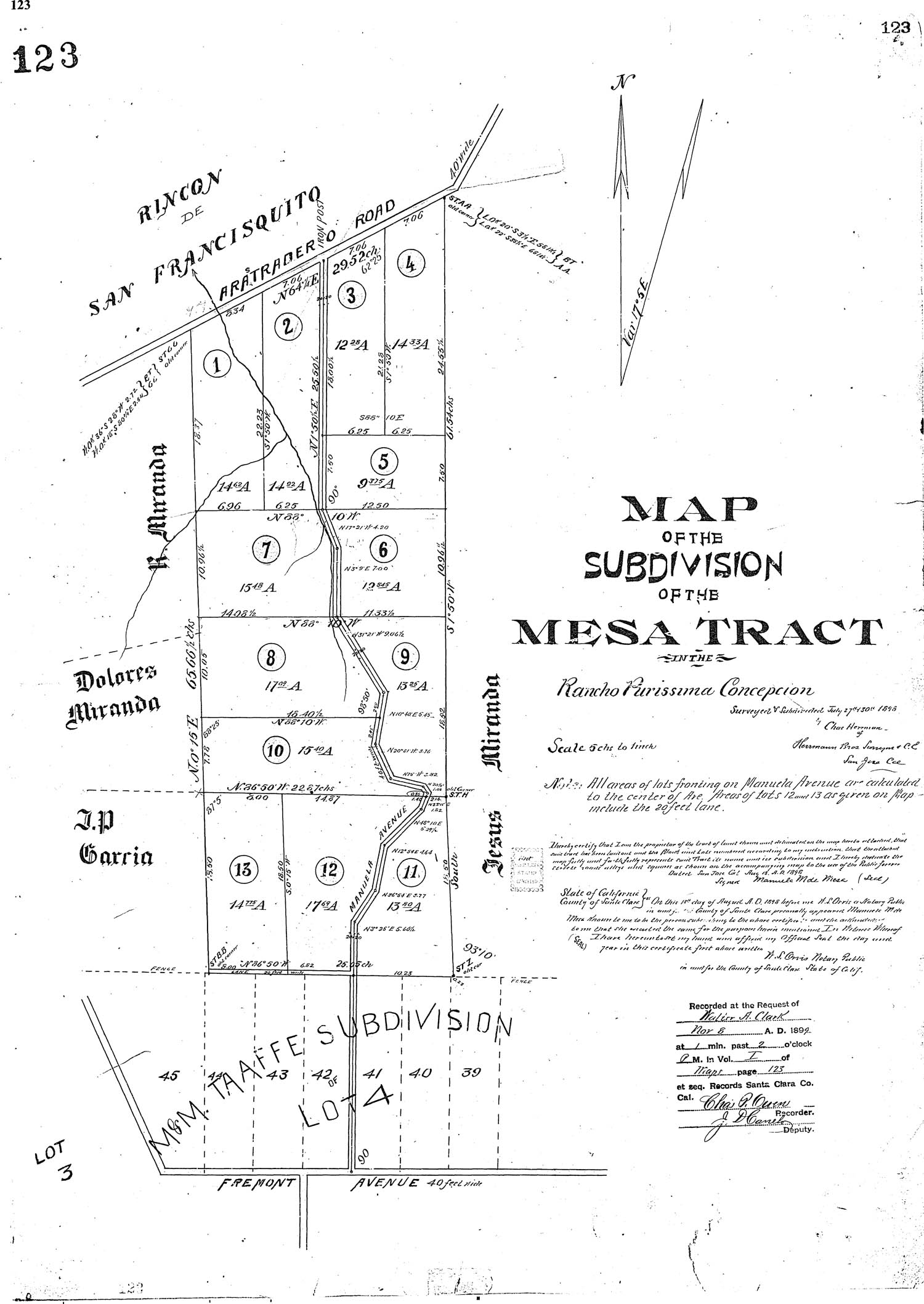 Subdivision Map of the Mesa Tract, recorded 11/8/1899 (Originaly part of the Rancho Purissima Concepcion) located along Manuela