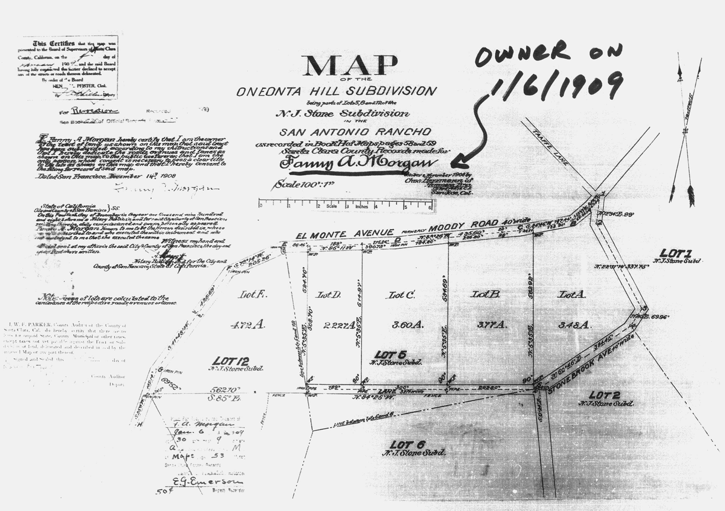 Percy and Fanny Morgan (of Morgan Manor) Map of the Oneonta sub-division - corner of Stonebrook and Magdalena |