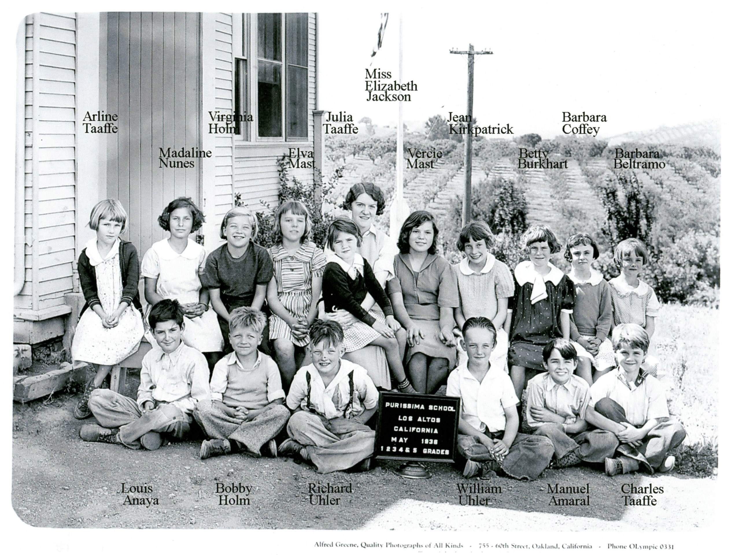 Class photo of Grades 1-5 Purissima School - 1936 |