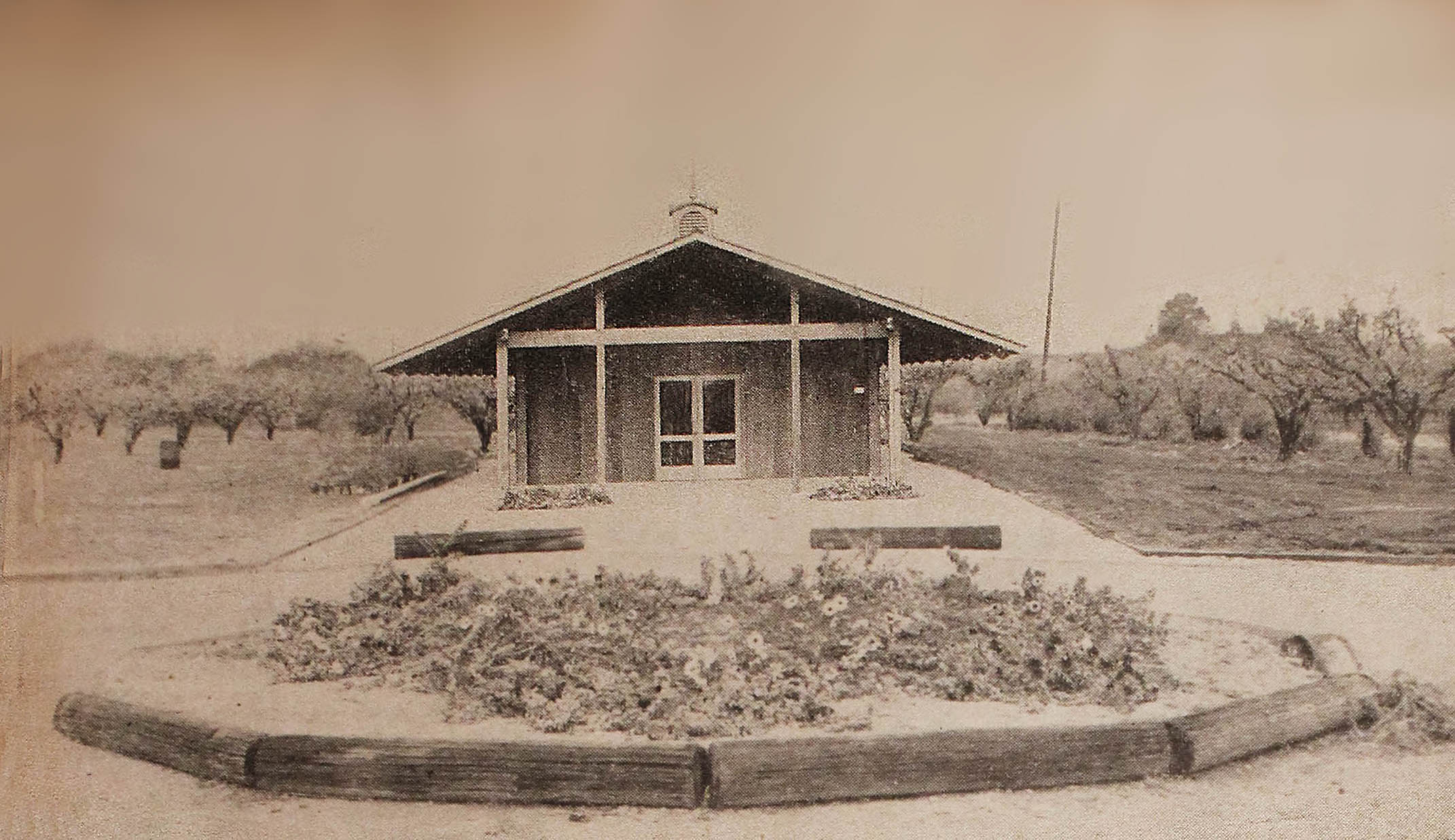 Photo of original one-room schoolhouse - Purissima School - Where first Town Meetings were held - extended and modified to become St Luke's Chapel in The Hills |