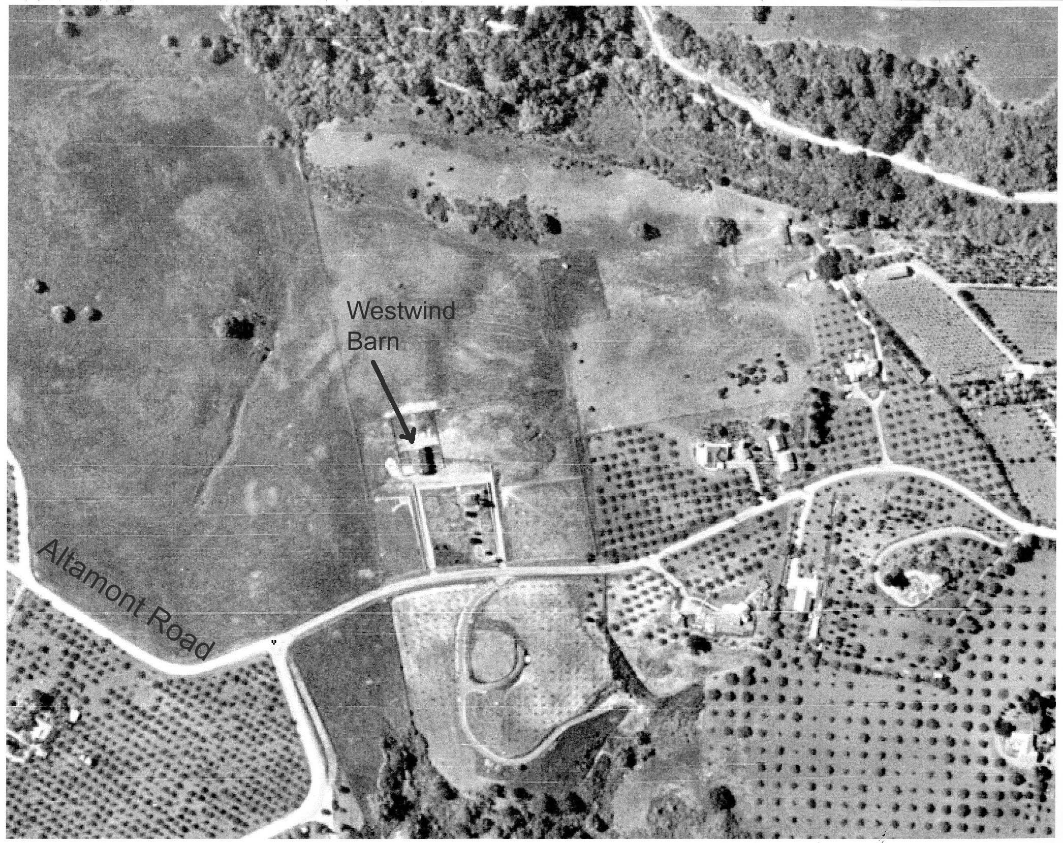 Aerial photo of Westwind Barn neighborhood believed to have been taken around 1947 (from California Aerial Survey) |