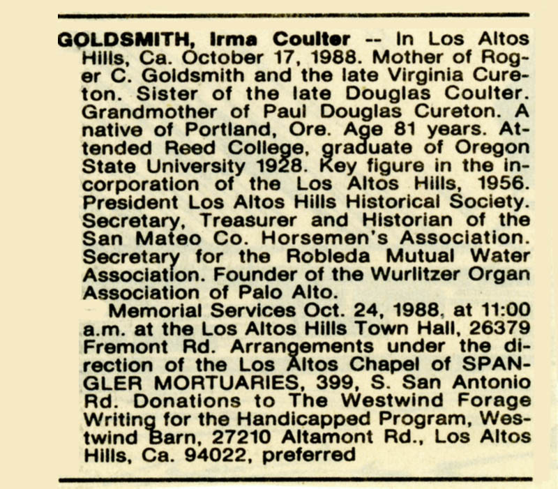 The title of this week's article could have been "... and they've been arguing about it ever since" or "that darned Irma Goldsmith" or "nobody asked me, but ..." Whatever your choice, it makes for a good story. What's the topic? The Los Altos Hills town pathways.