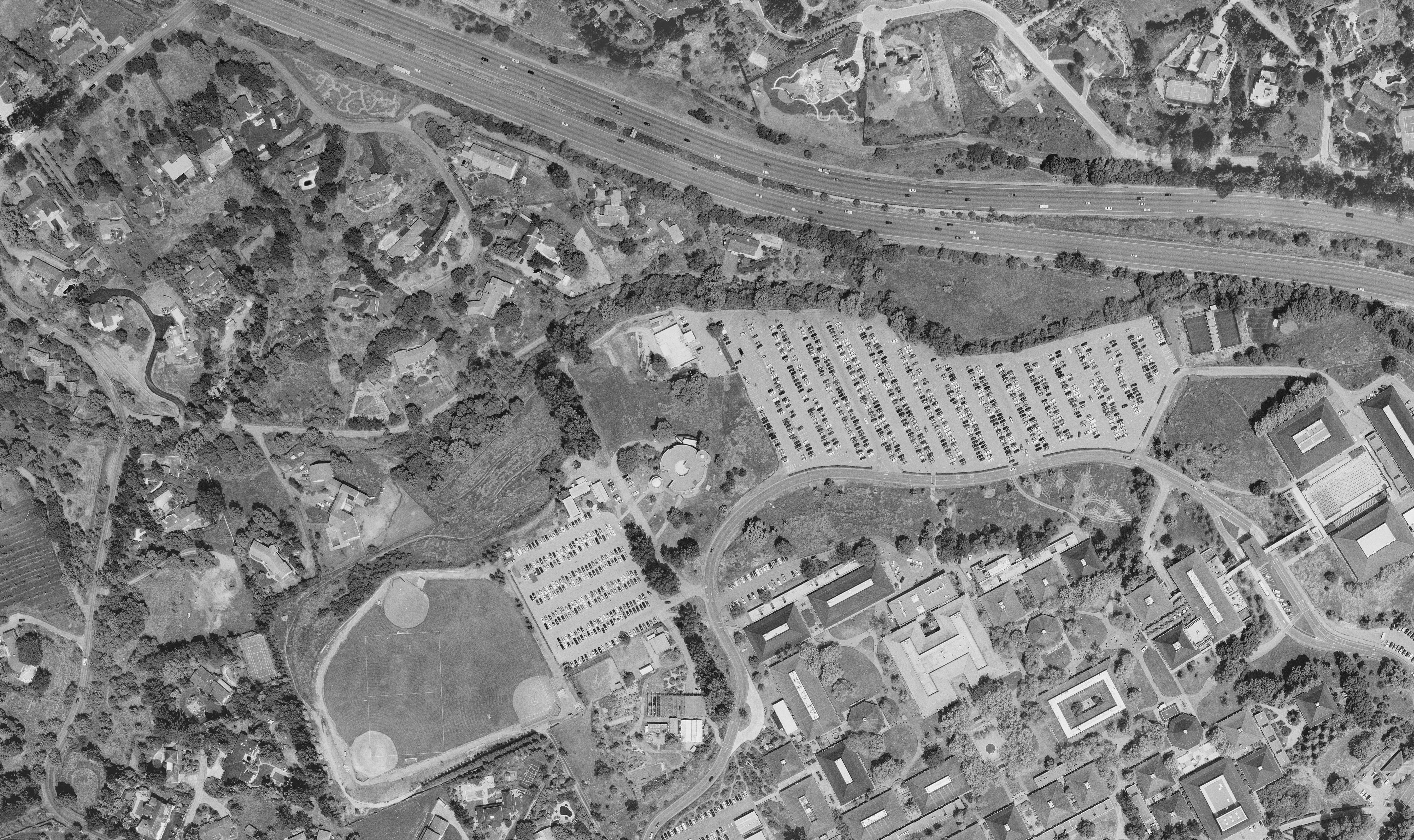 The exact date that this aerial image was captured is unknown - however, examination for the presence (or absence) of some known landmarks allows us to date it to around the middle of 2001,