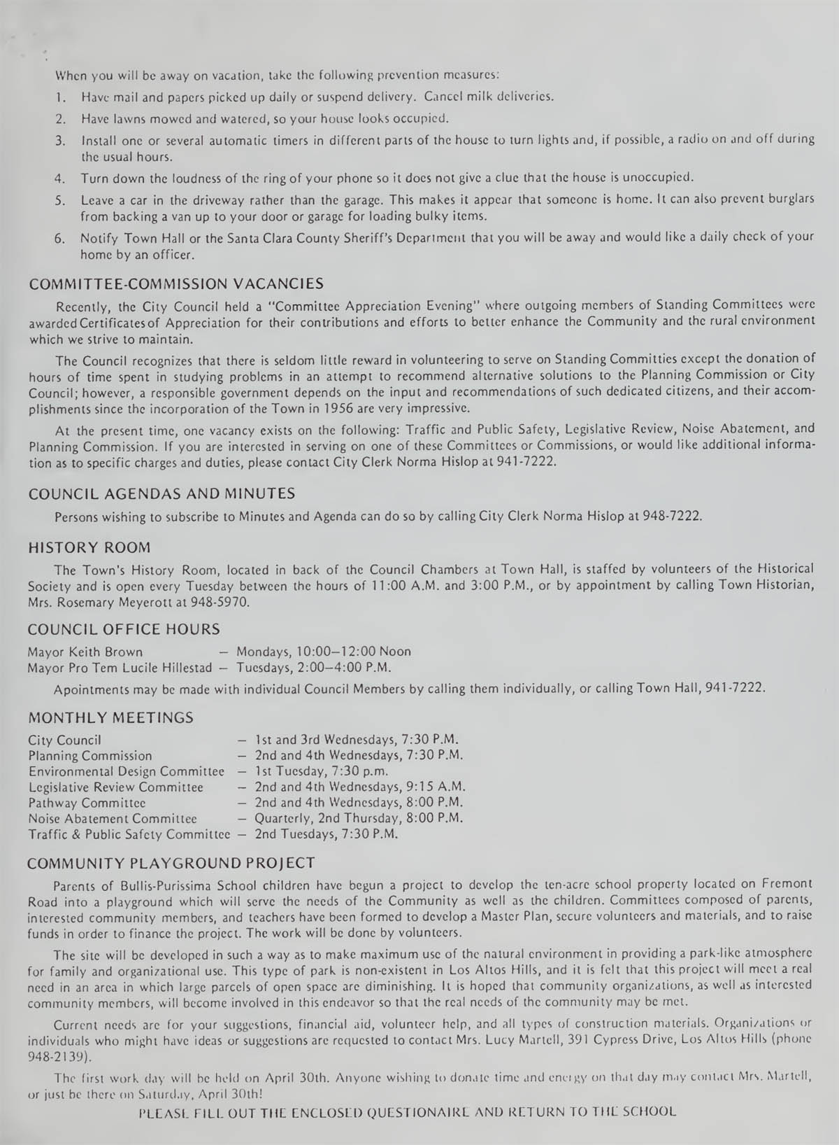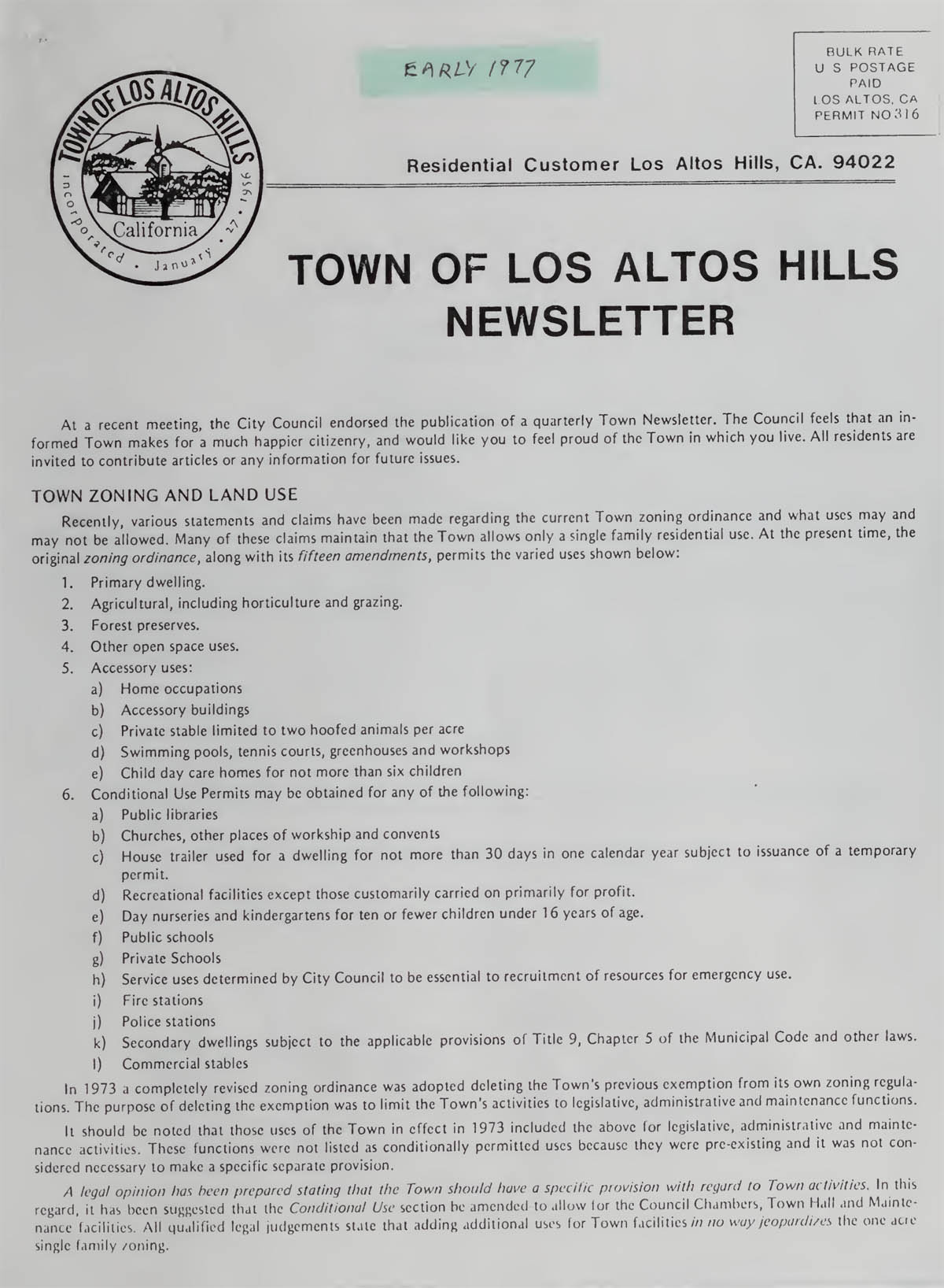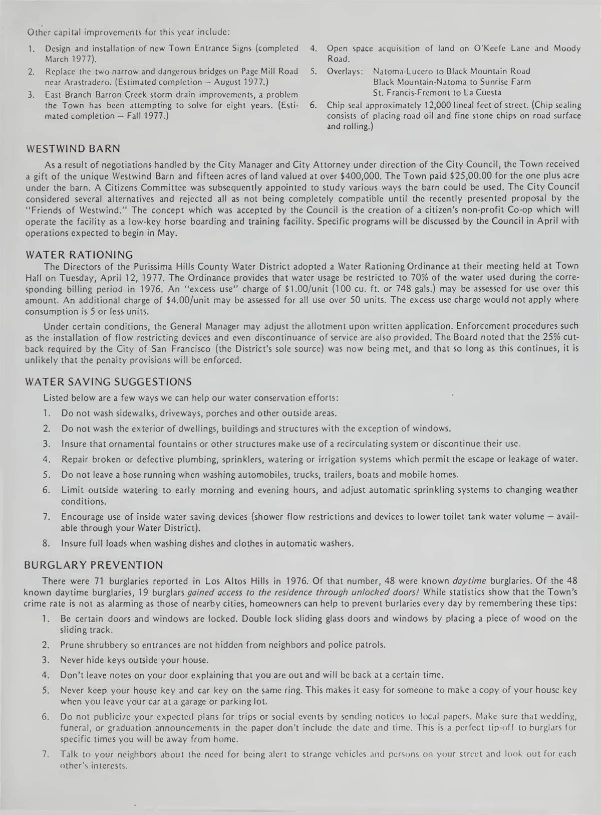 Los Altos Hills Town Newsletter - Early 1977 |