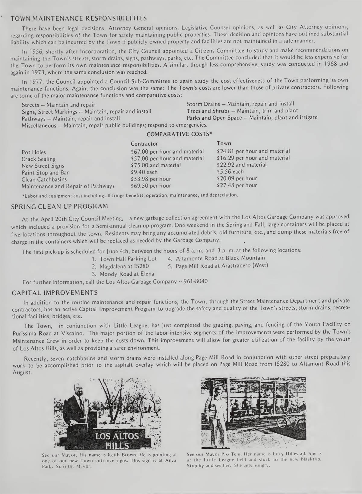 Town maintenance responsibilities, Spring clean-up program, Capital Improvements |