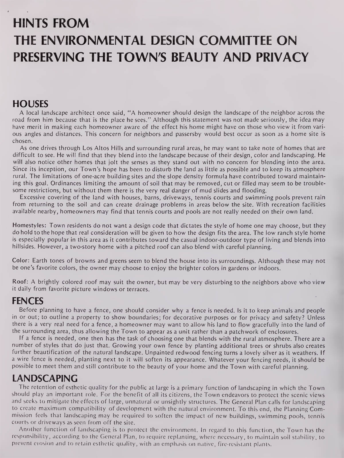 Hints from Environmental Design Committee on preserving beauty and privacy |