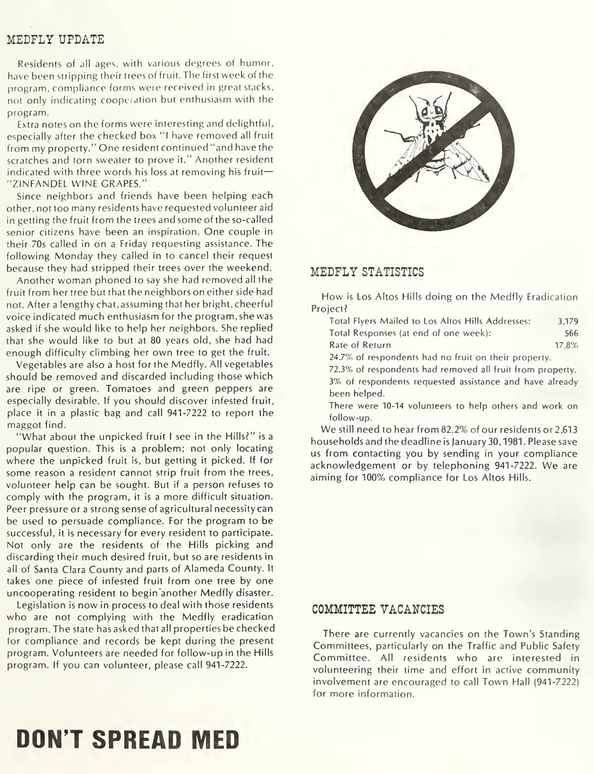 Medfly update ♦ Medfly statistics ♦ Committee vacancies |