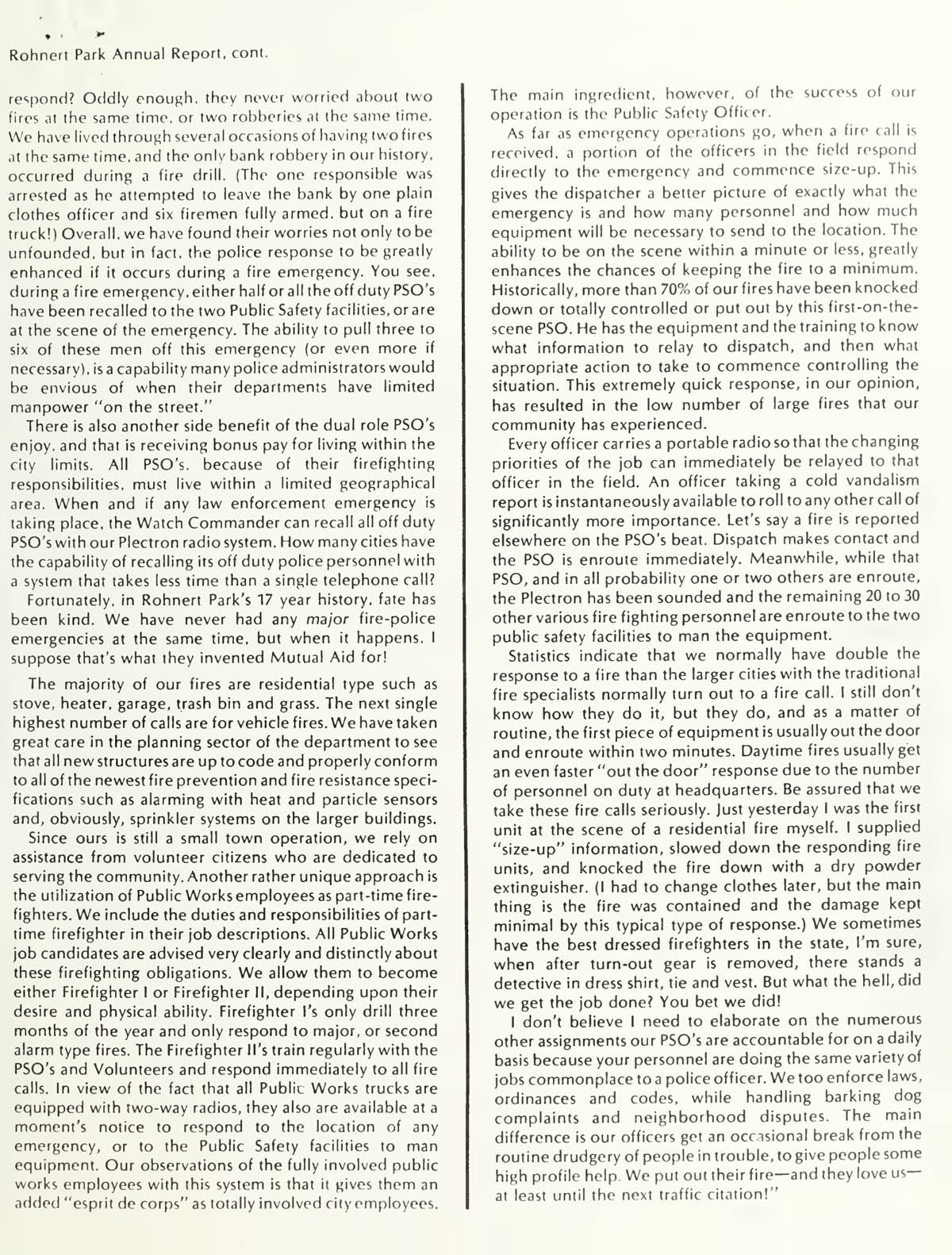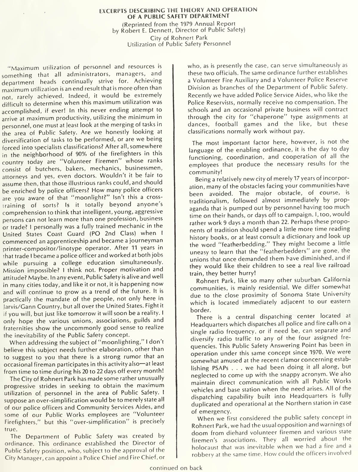 Excerpts describing theory & operation of a Public Safety Department - City of Rohnert Park (continued). |