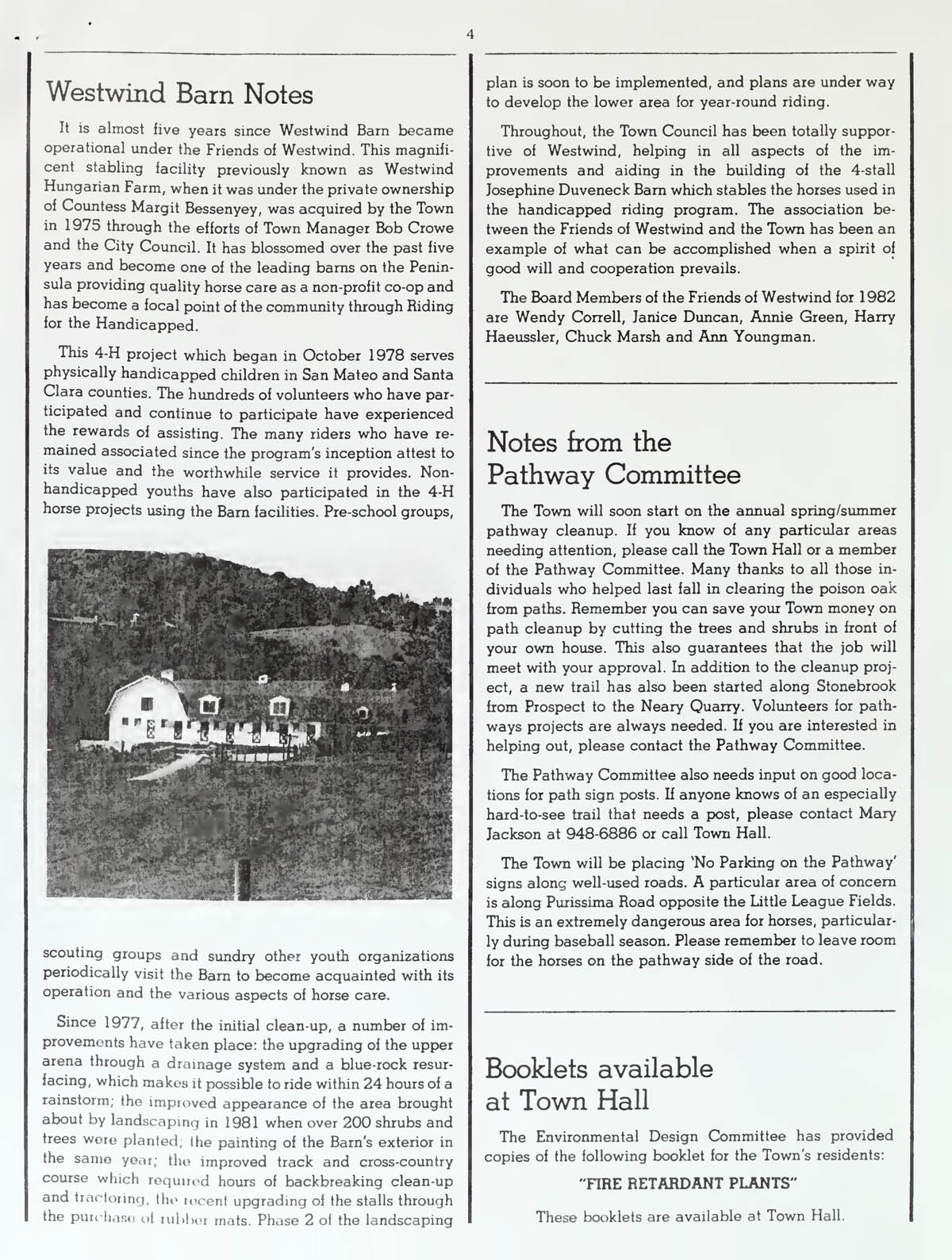 Westwind Barn Notes, Notes from Pathway Committee, Booklets available at Town Hall |